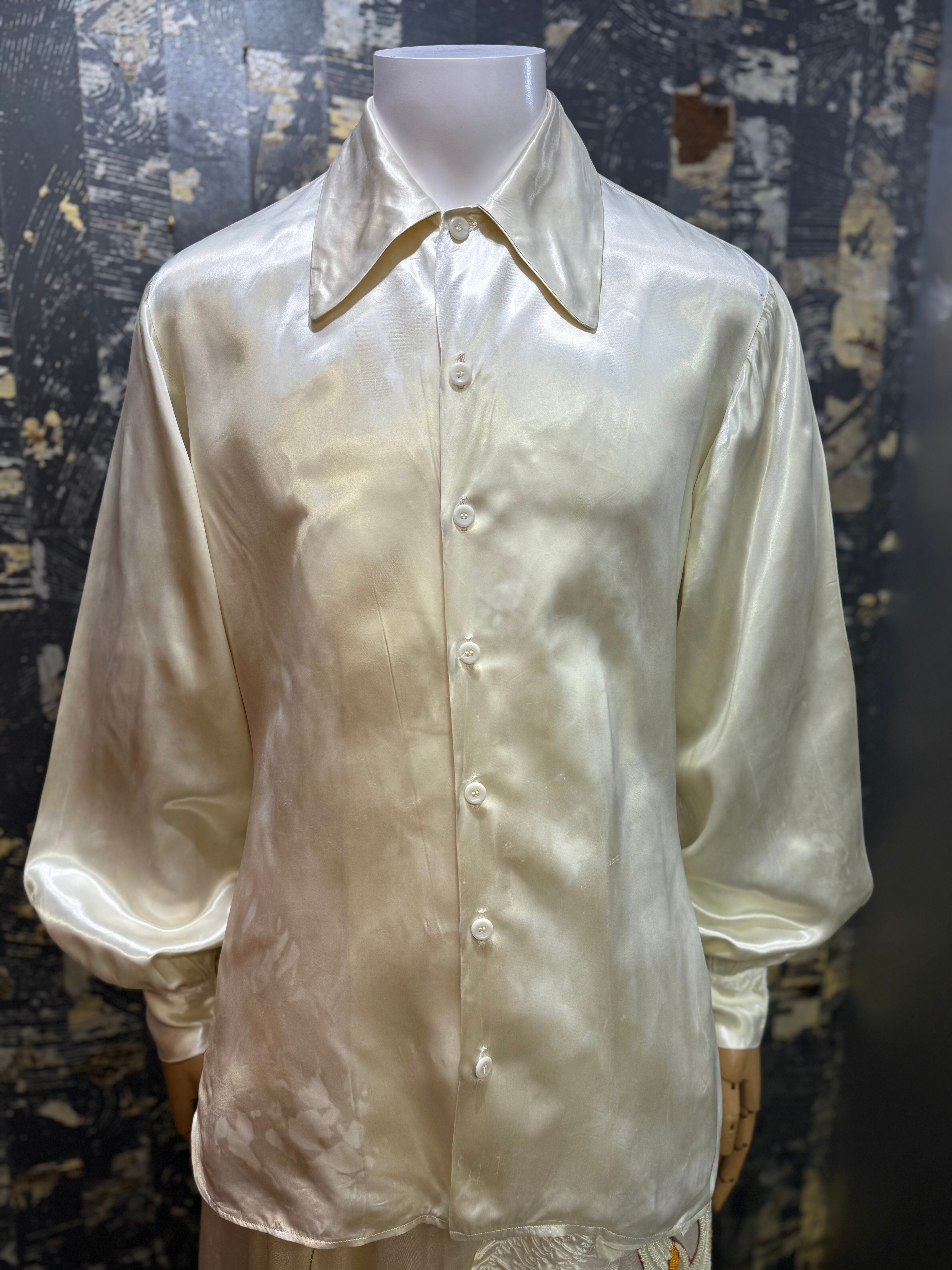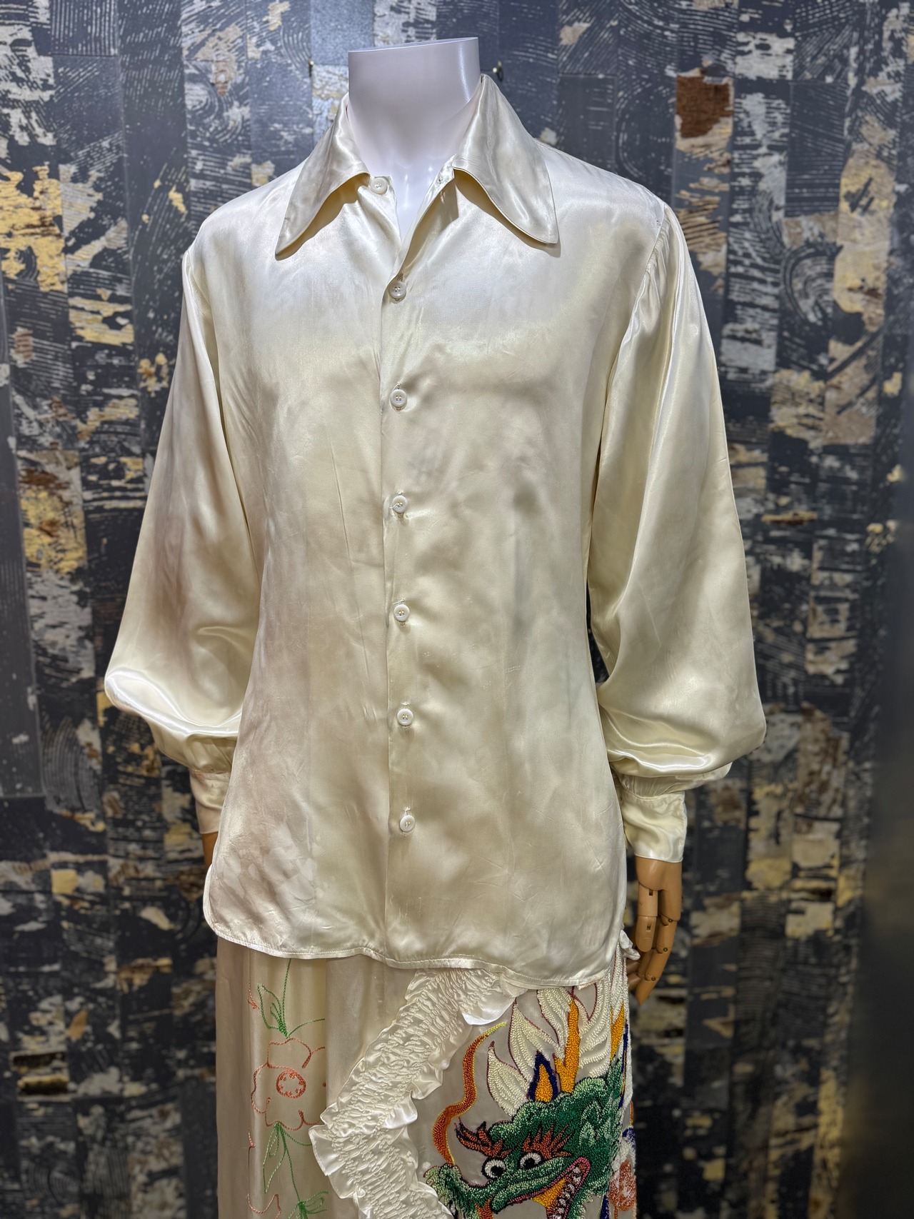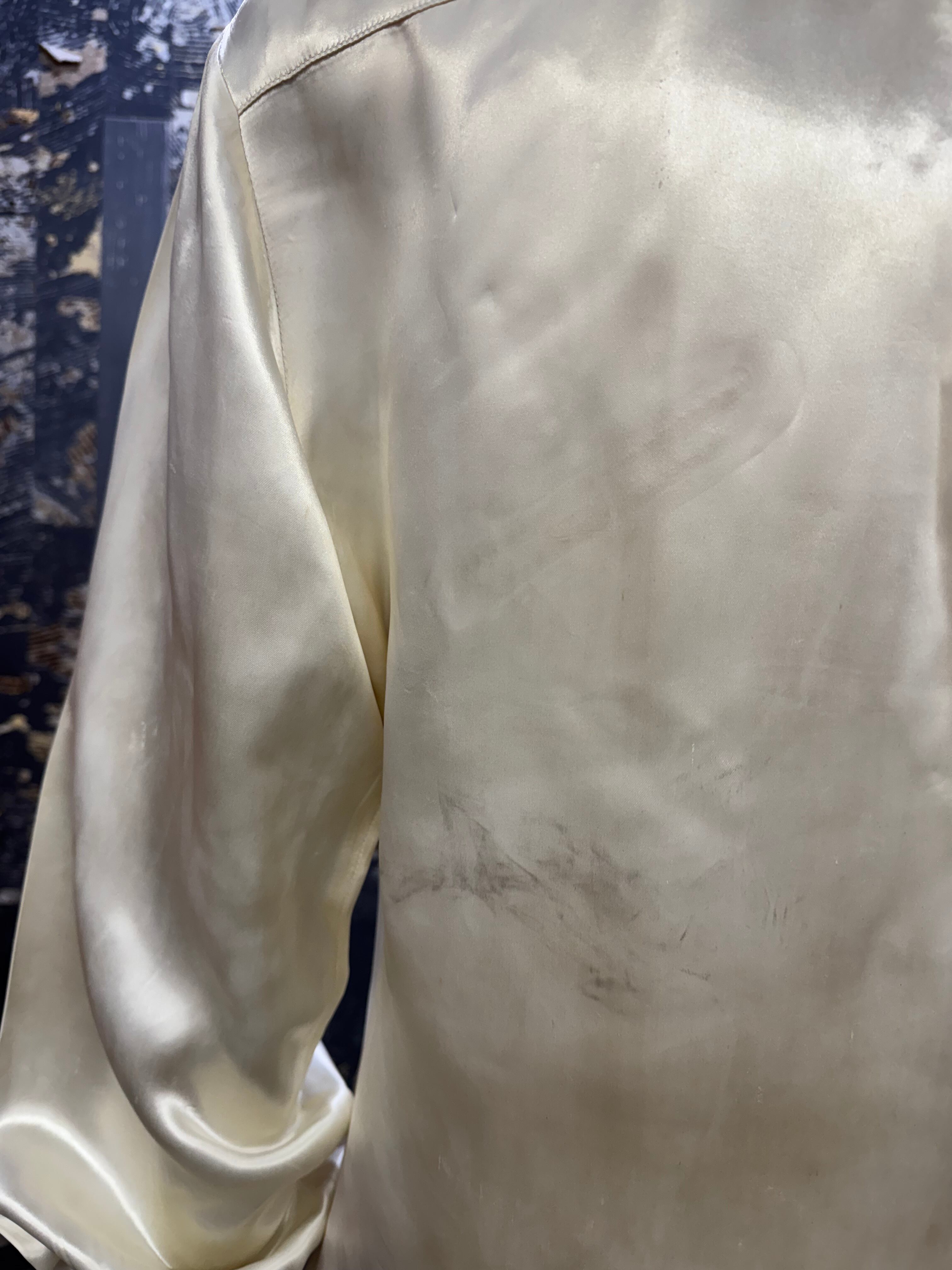 日焼け、変色がまたカッコよくプラスになっております。むっちゃ味あるデザインシャツやと思いました。デザイン効いてるけどボロいアンバランスさがやっぱ面白いです。