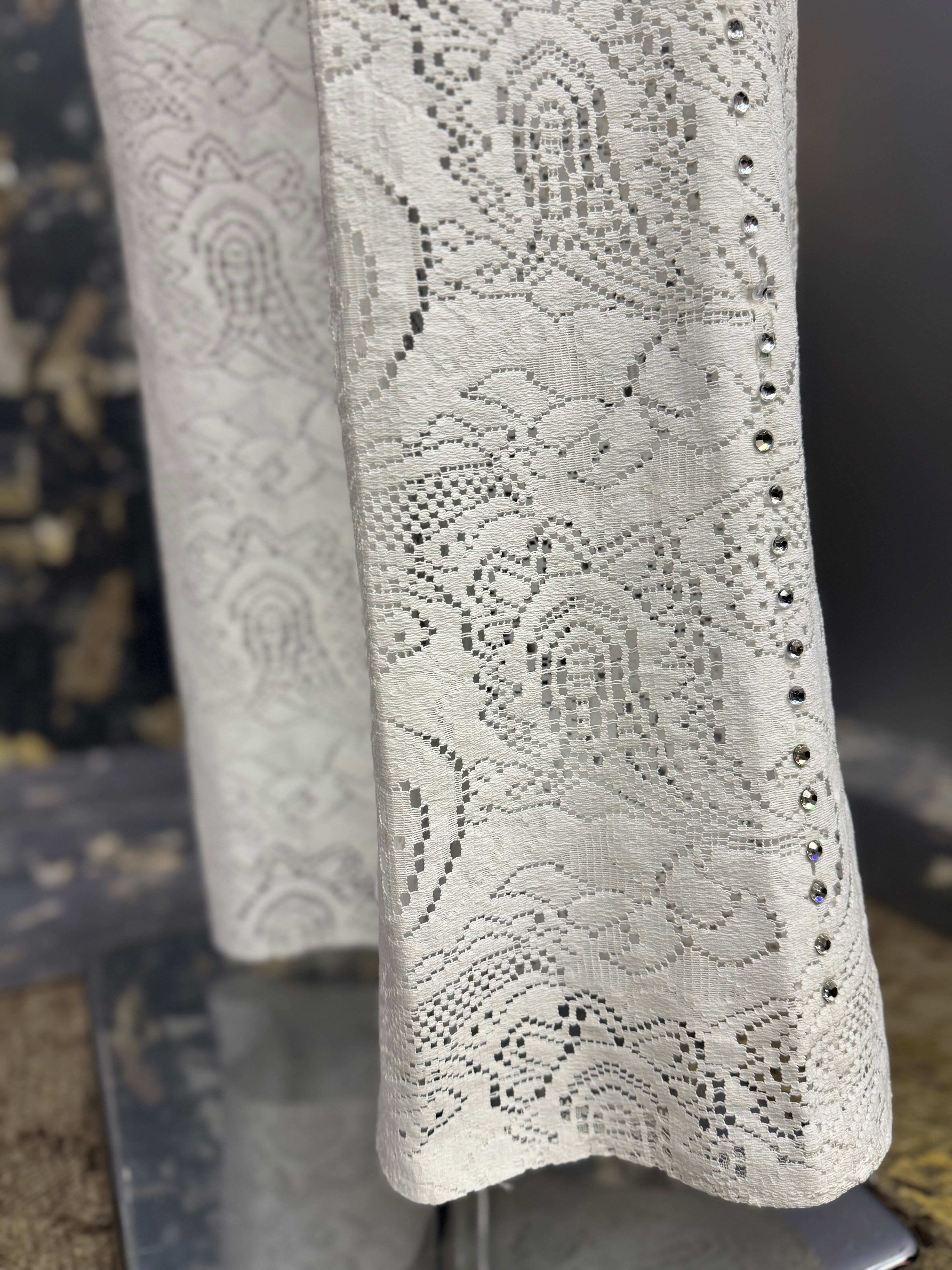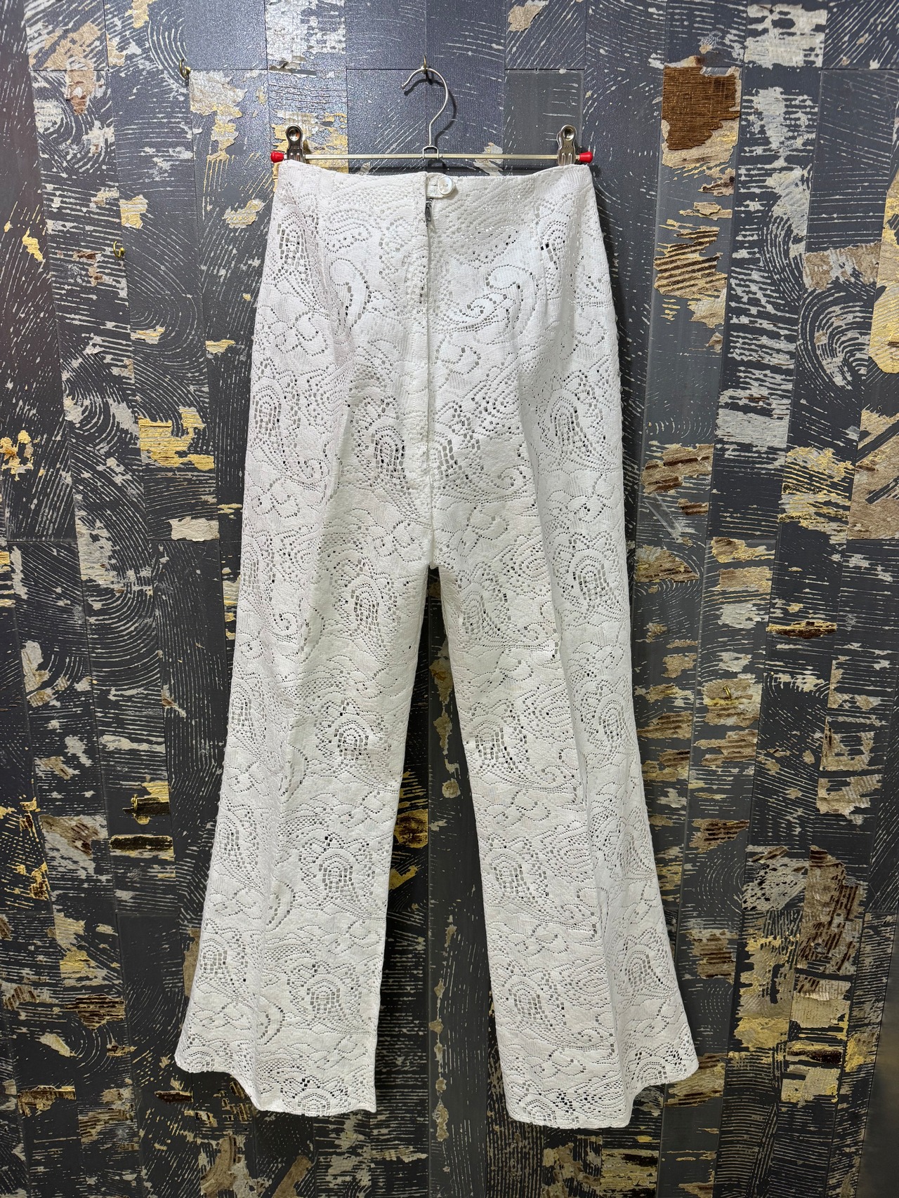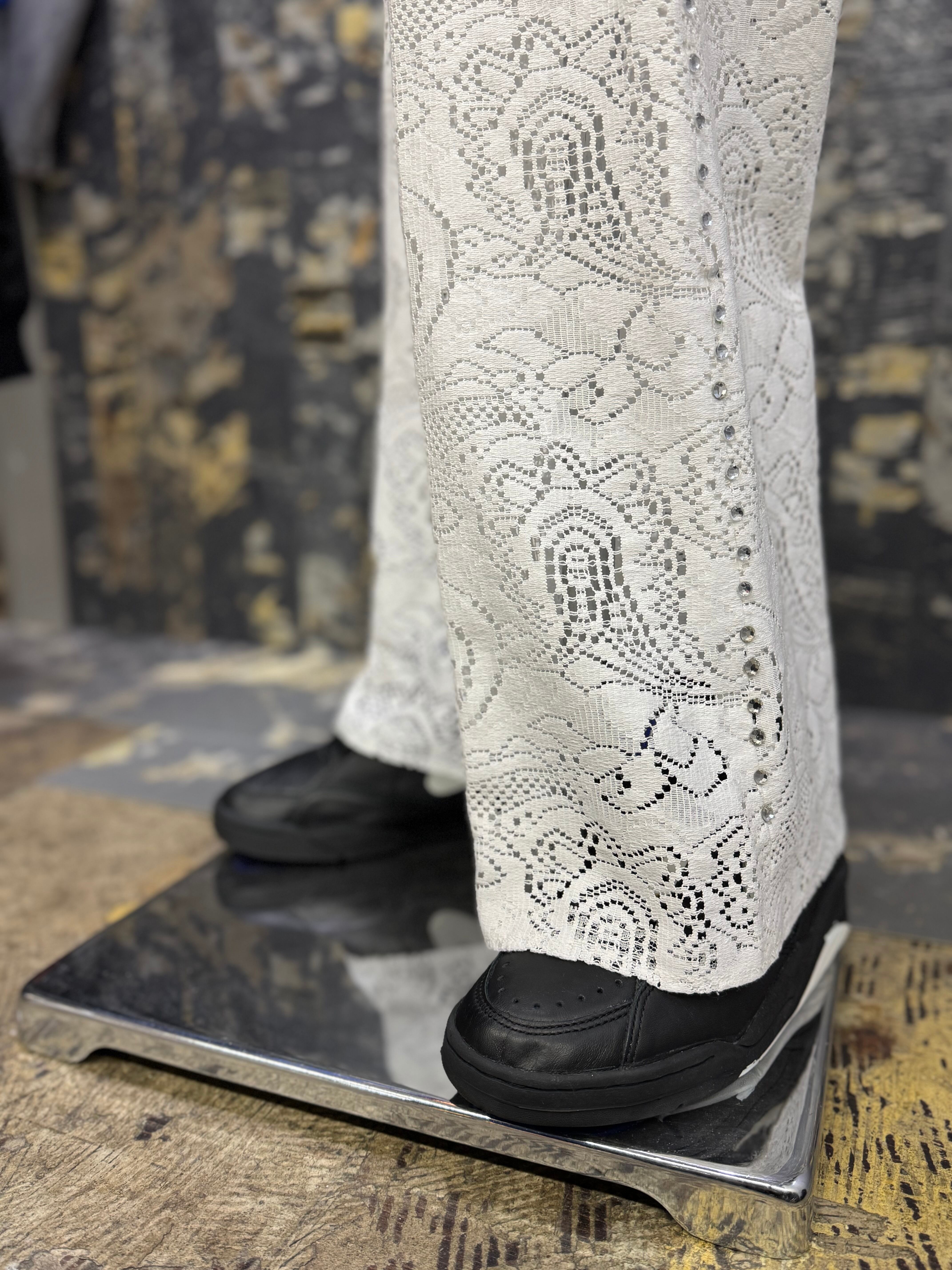 OLD ハンドメイド レースフレアパンツ ラインストーンサイドライン