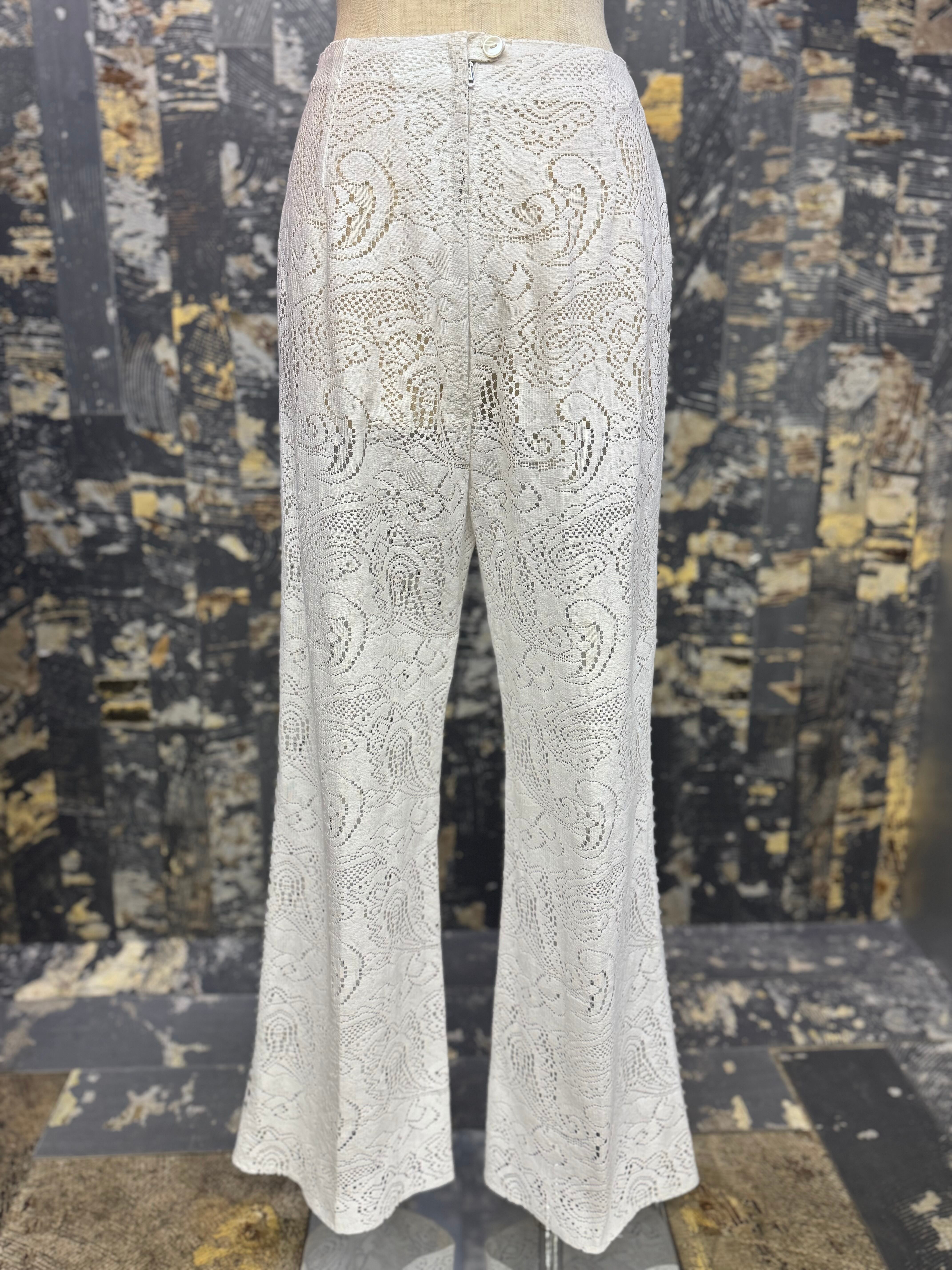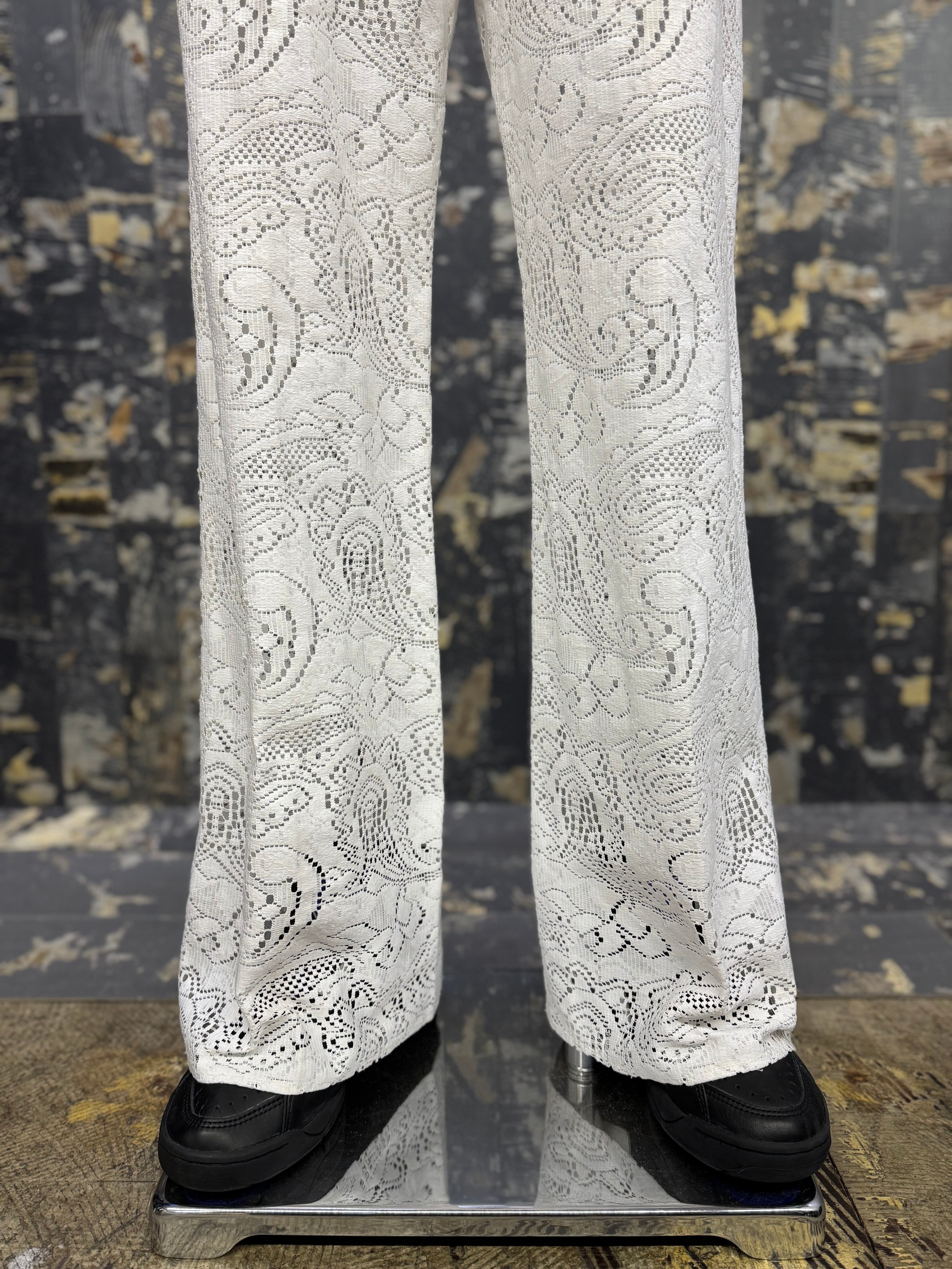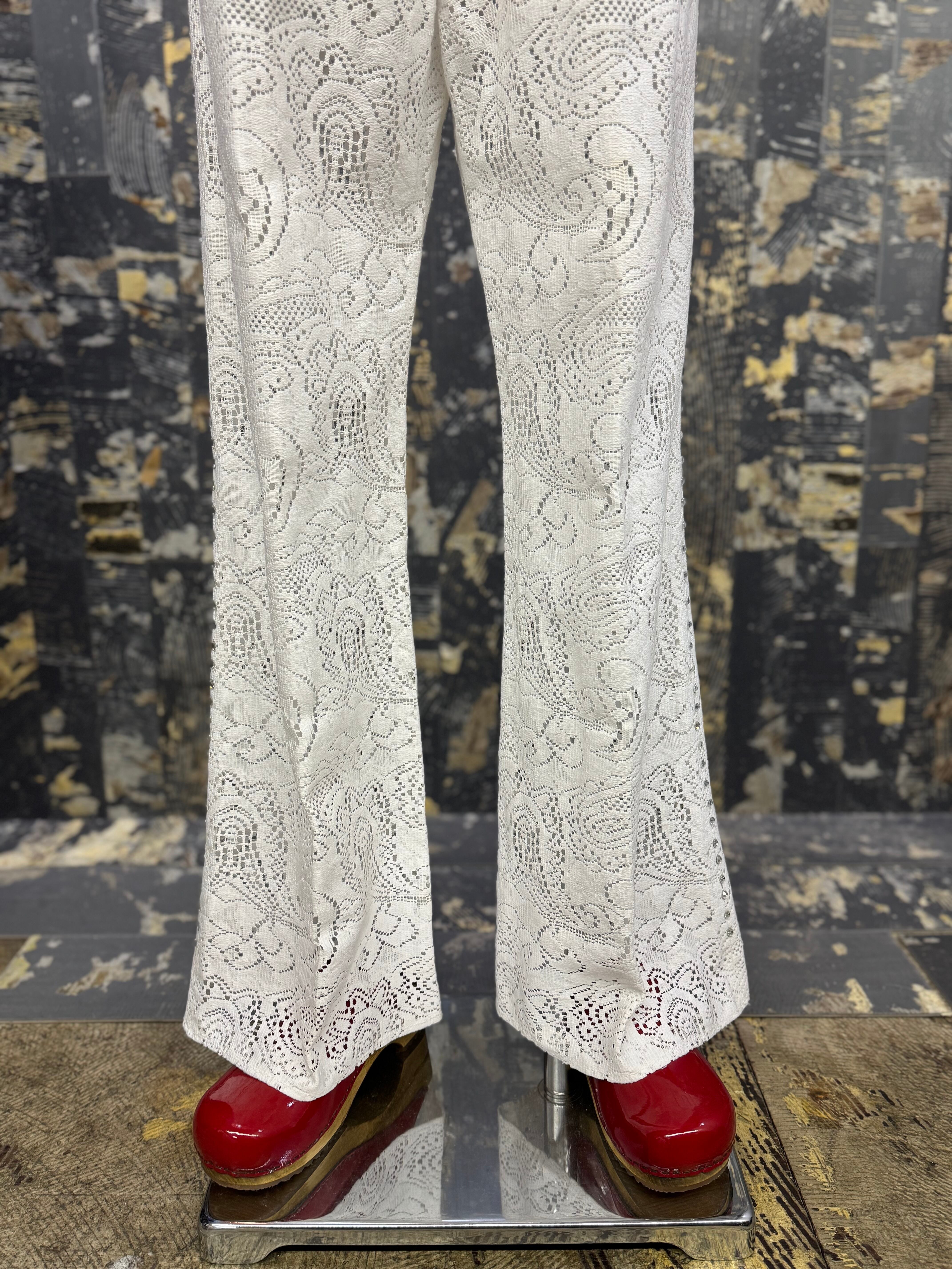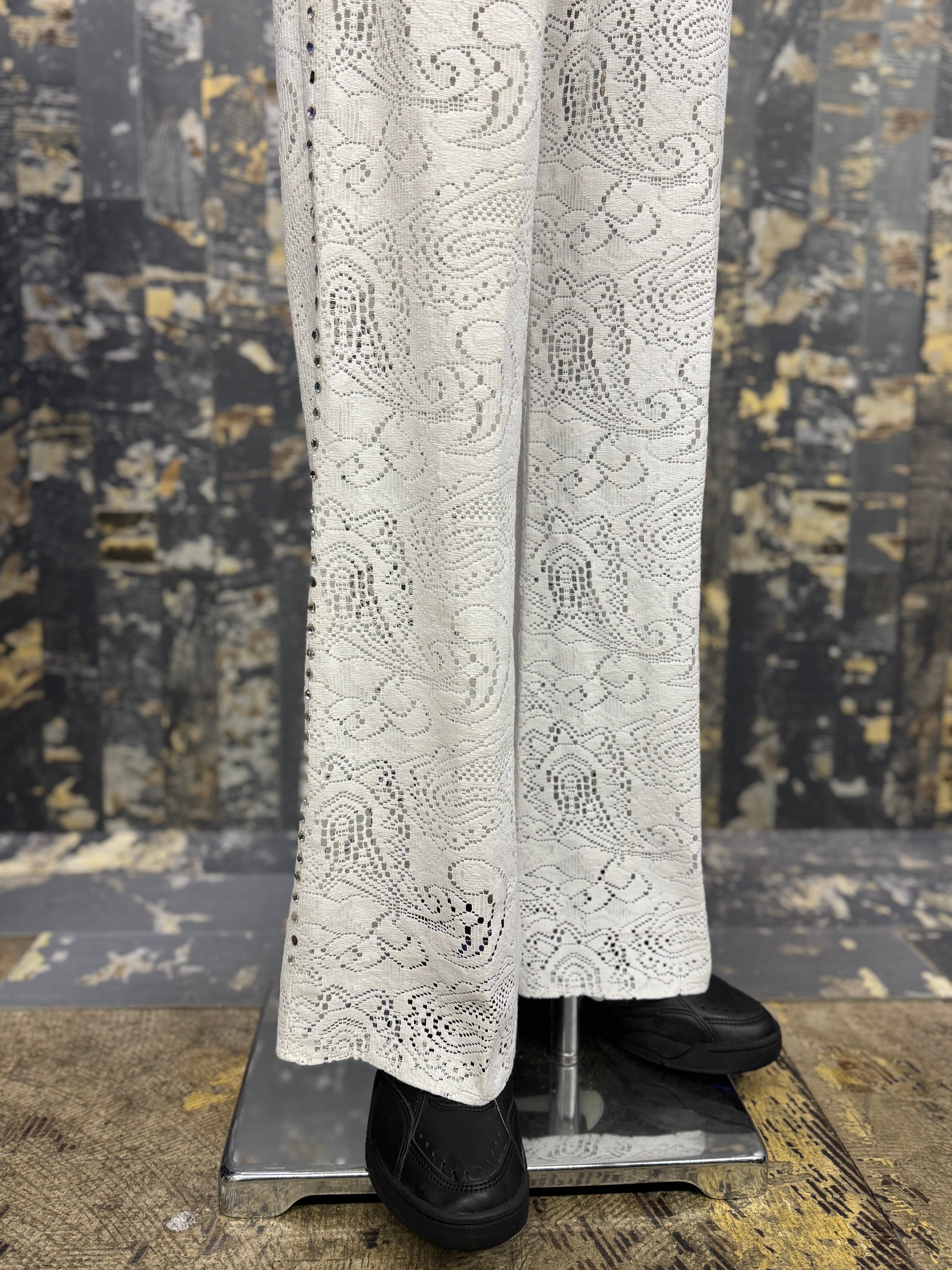 OLD ハンドメイド レースフレアパンツ ラインストーンサイドライン