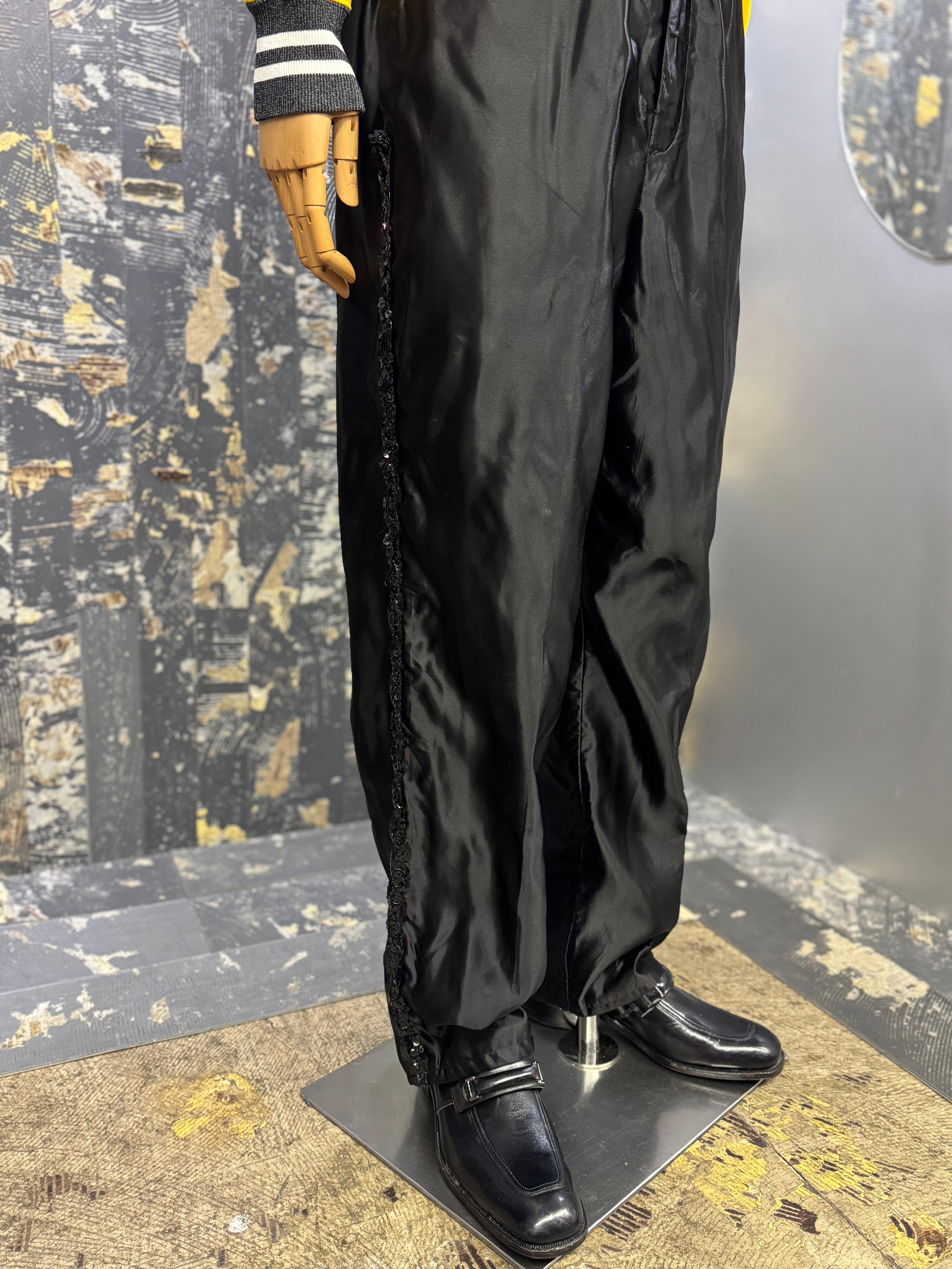 OLD ハンドメイドサテンコスチュームパンツ スパンコールサイドライン