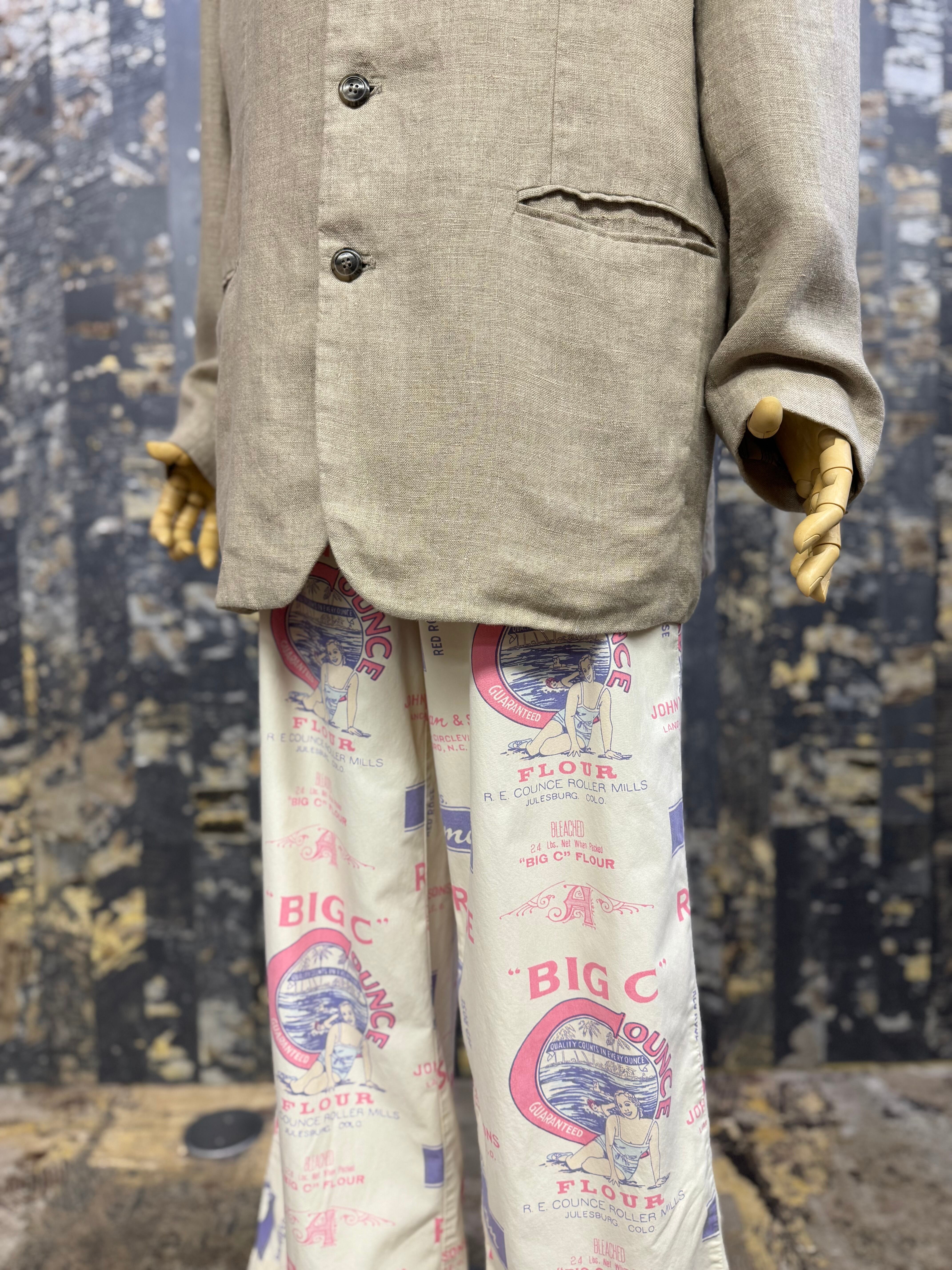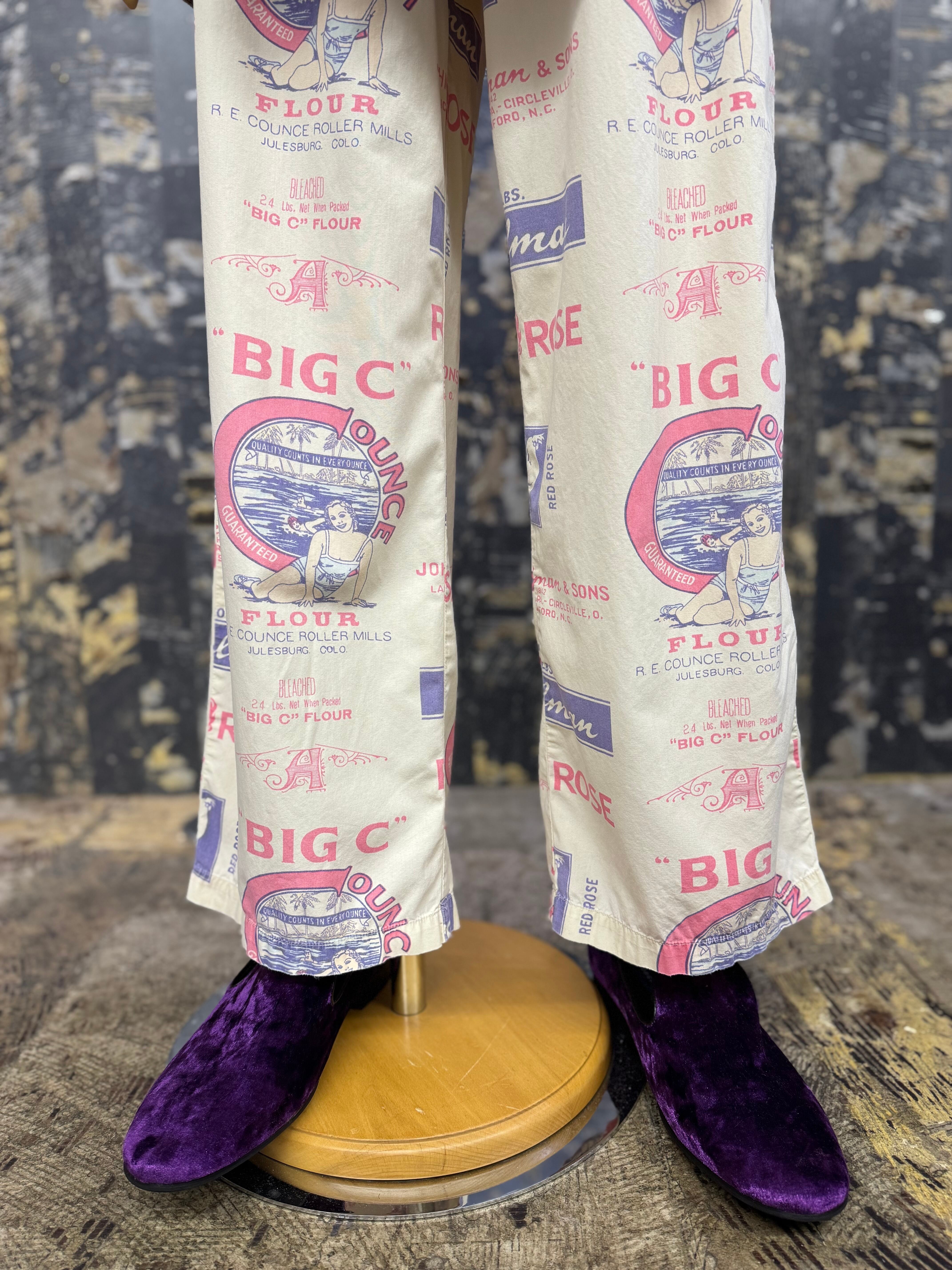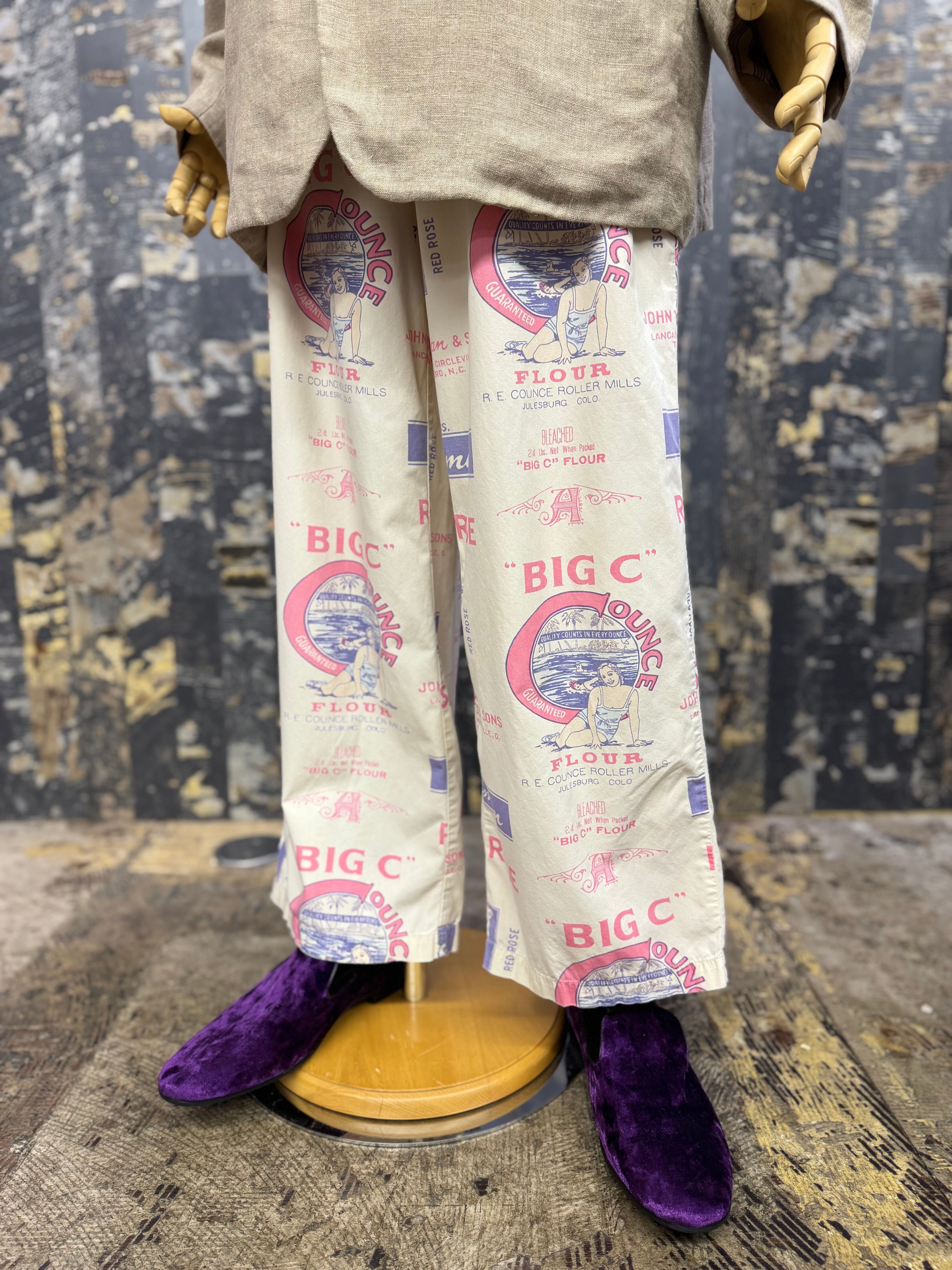 OLD ハンドメイド 染込プリントファブリック イージーパンツ