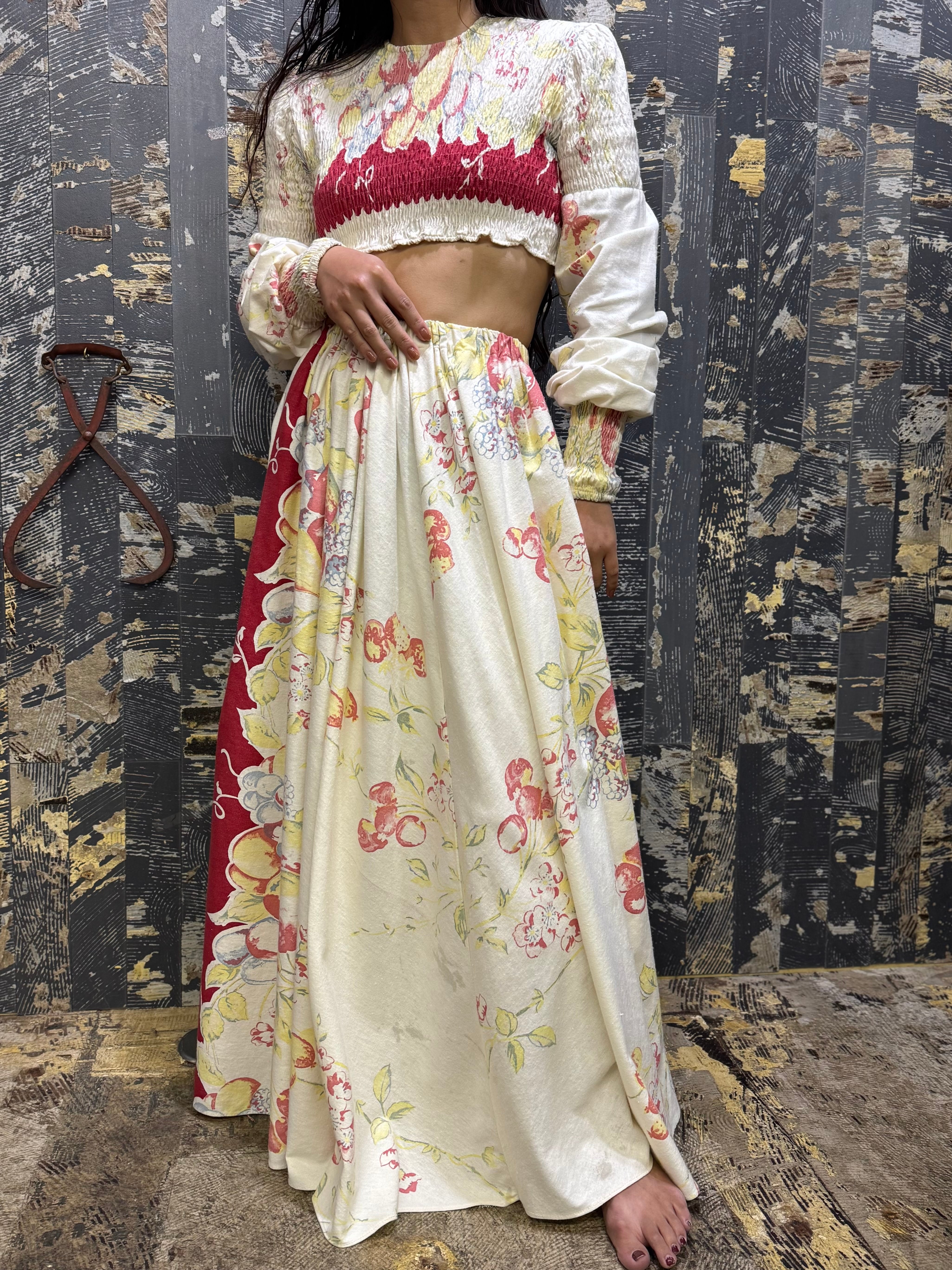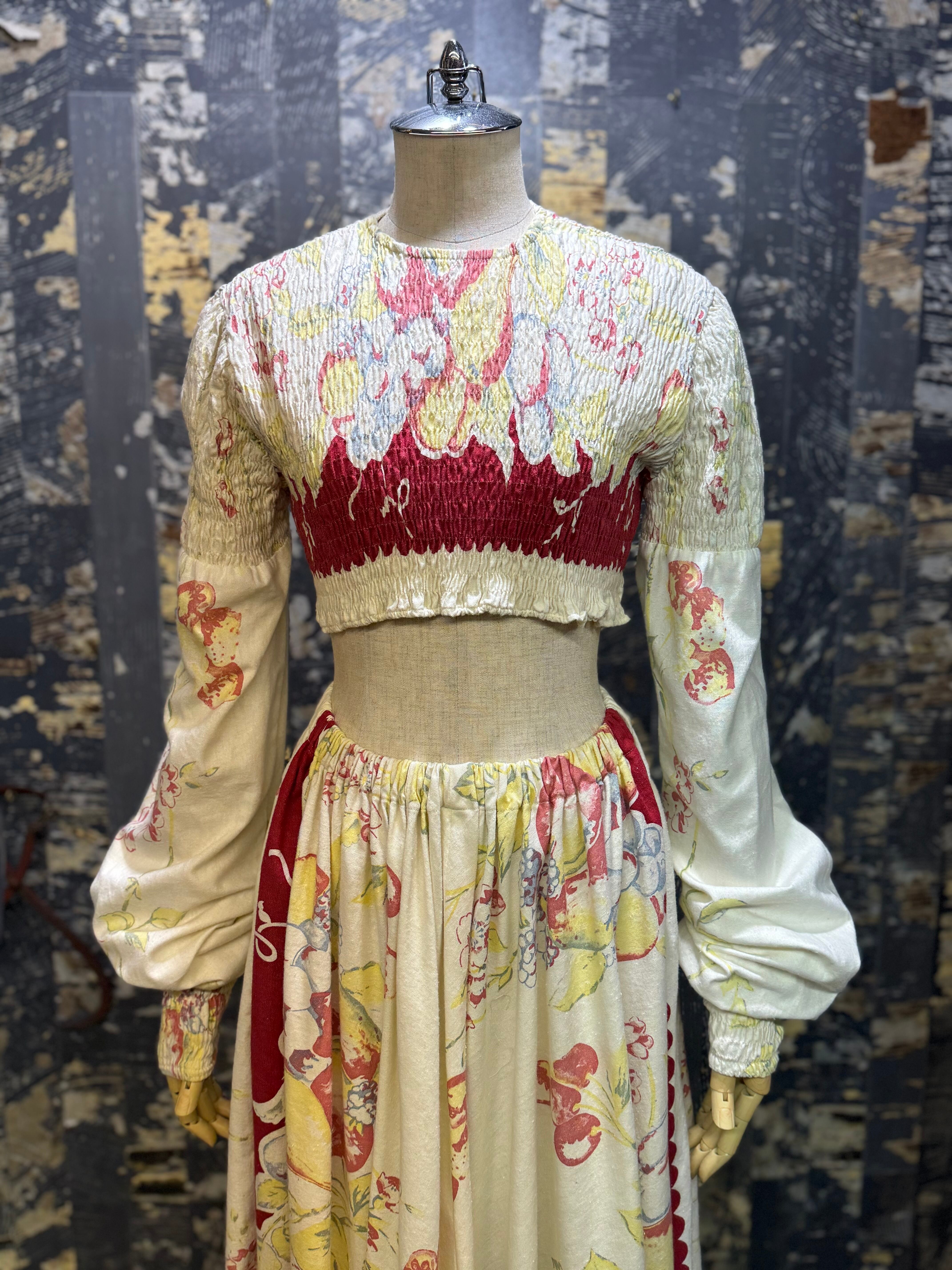 70s ハンドメイド セパレート セットアップ プリントドレス