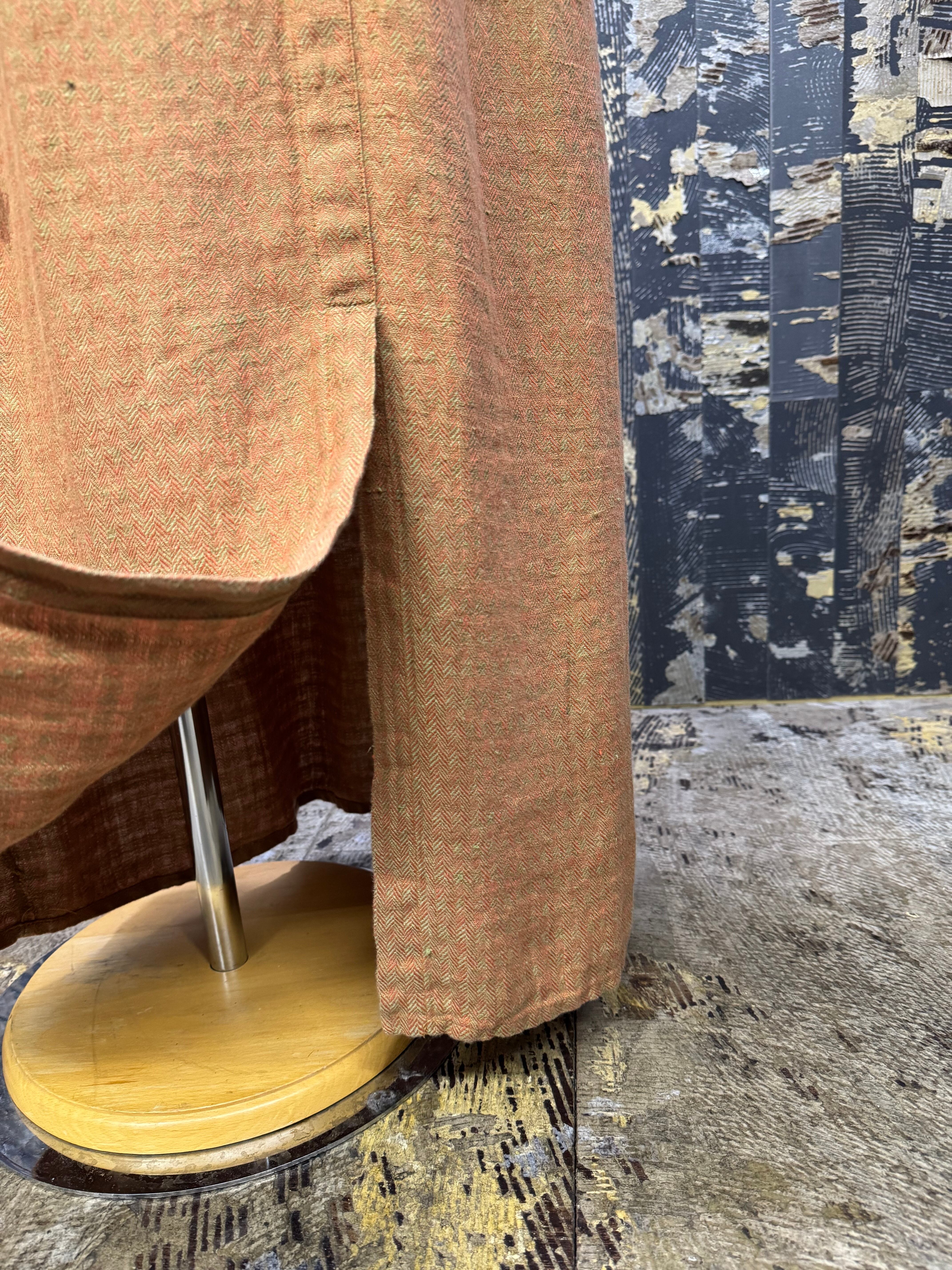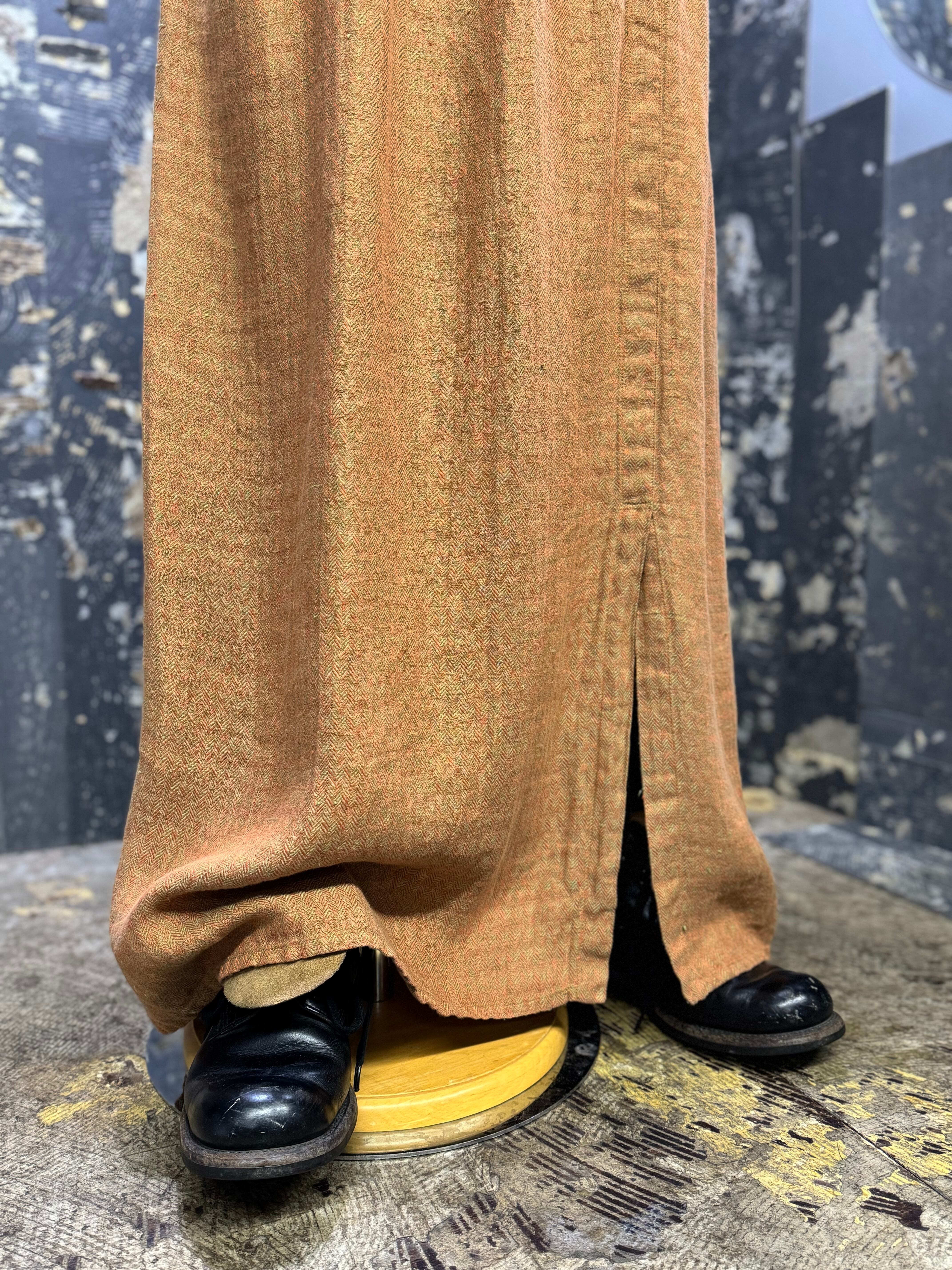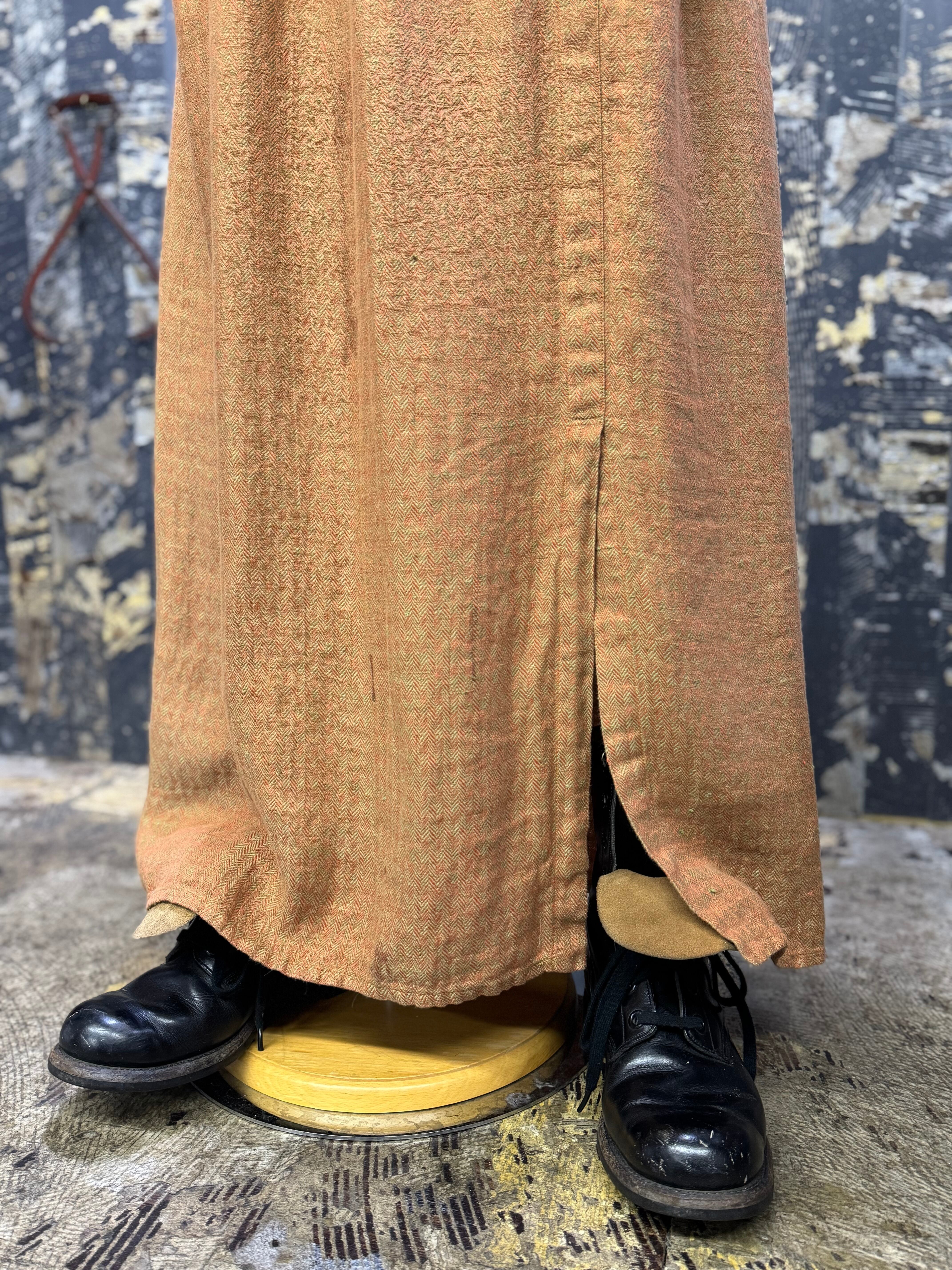リネンのマキシ丈は個人的に100点なディティールです。これやとメンズは取り入れやすい。