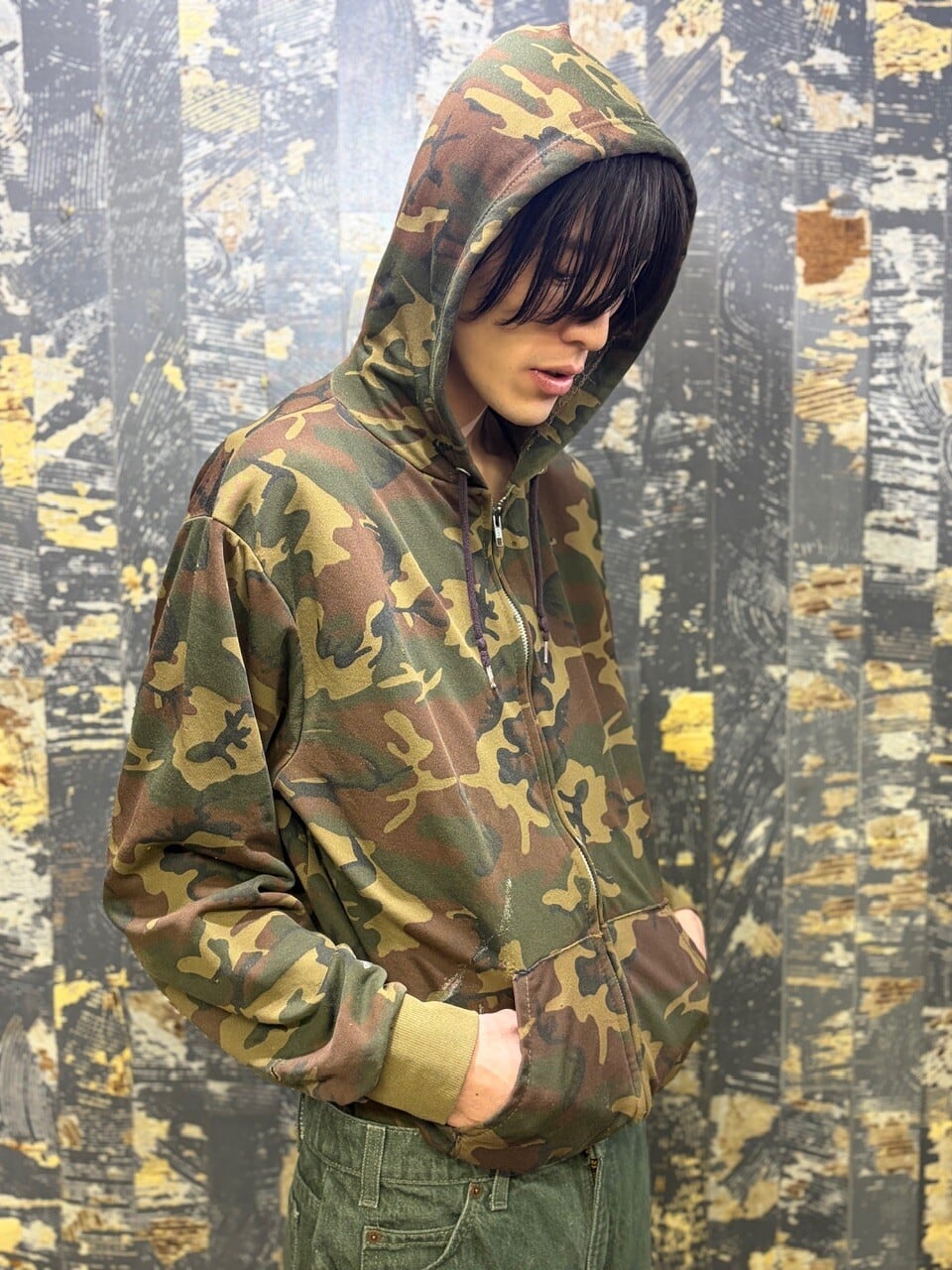 OLD ボロヨゴレ迷彩フーディー アルミフルジップ USA製 XL