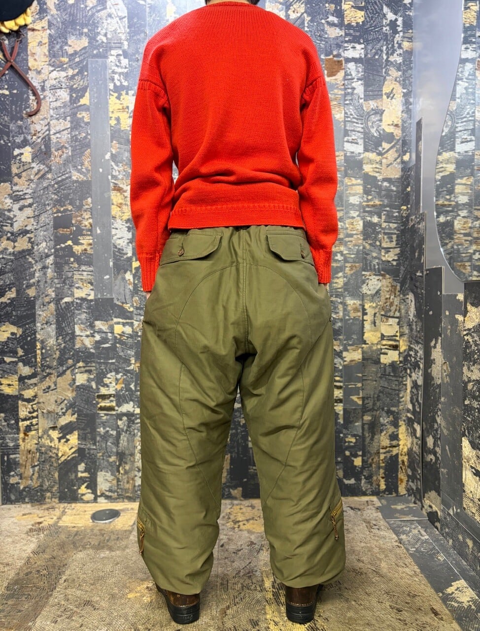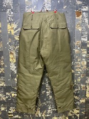 あんま現実味ないイメージな古いミリタリーパンツ。こういうの実際履いたらやっぱばりかっこいいですよね。裏キルティングダウン心強い。ヘビーゾーン仕様ですね。