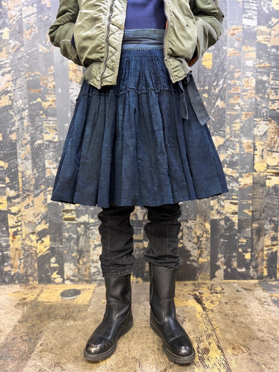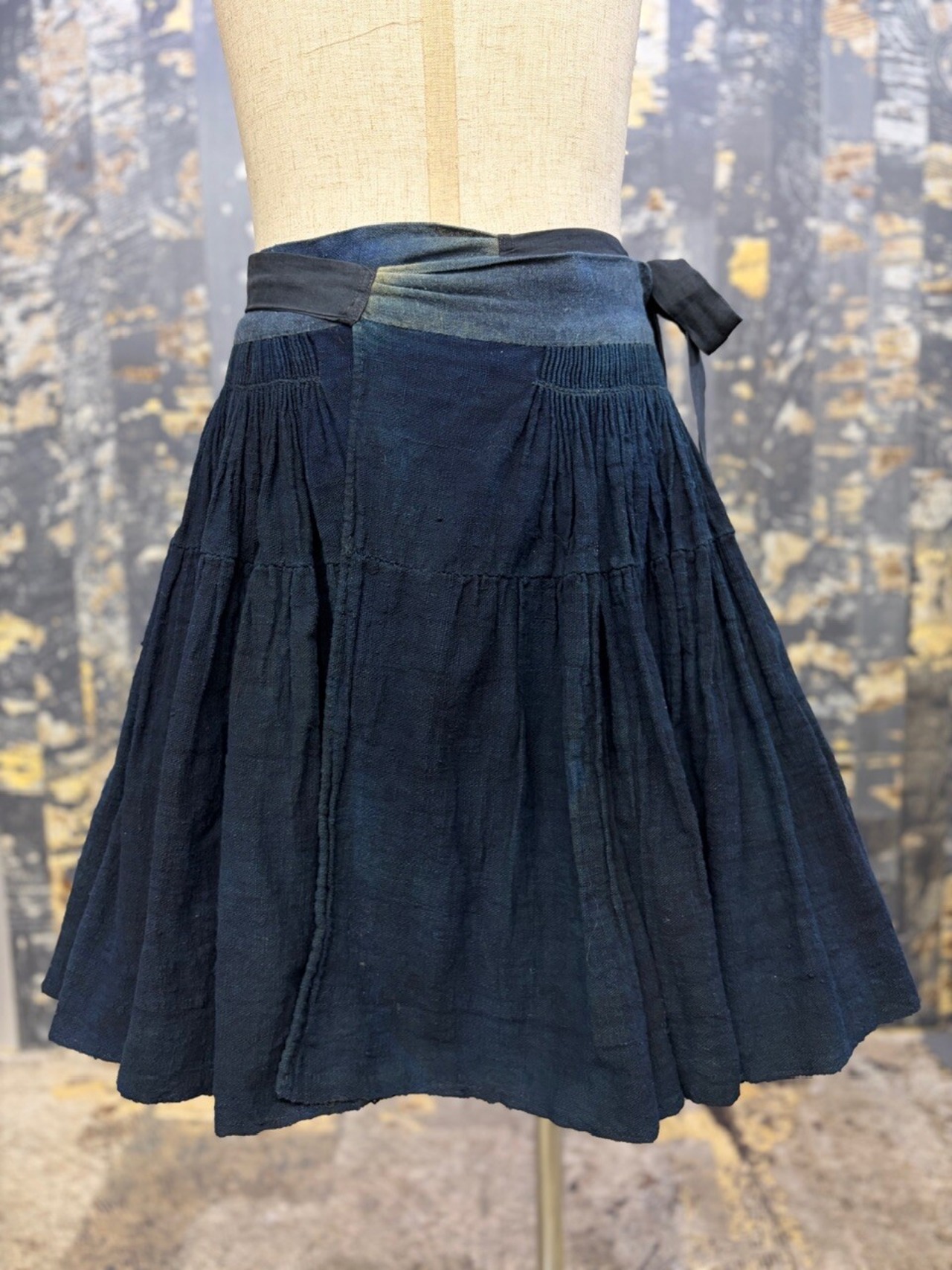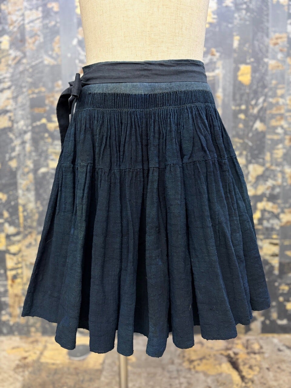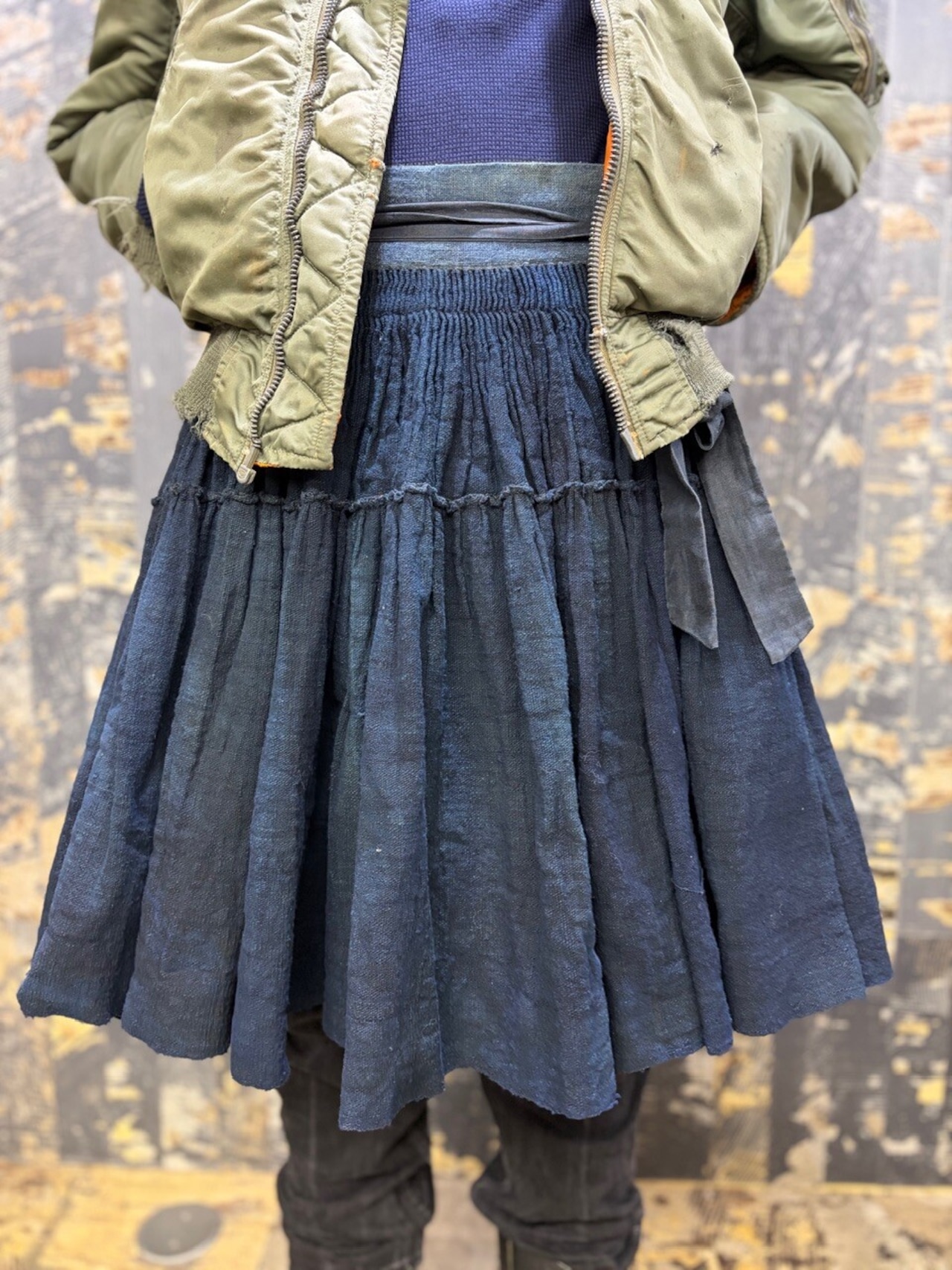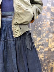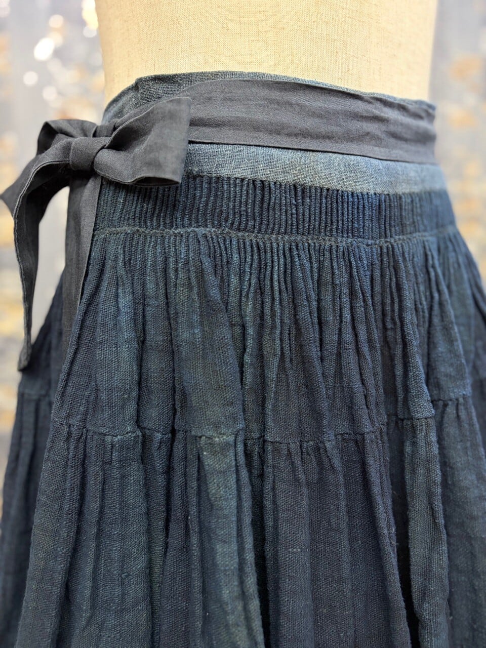古い ハンドメイド 藍染 インディゴリネン ボリューム ラップスカート