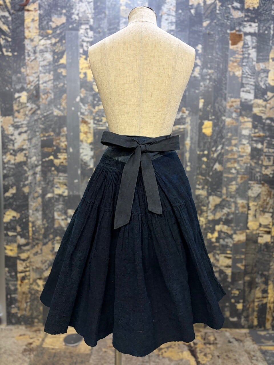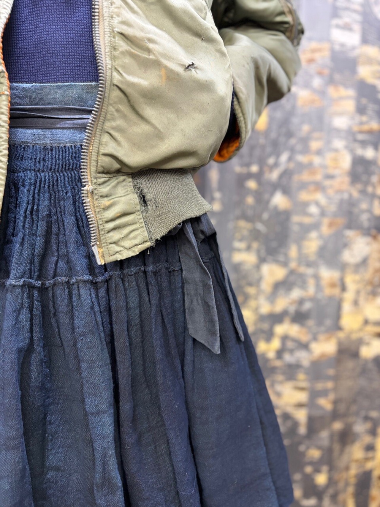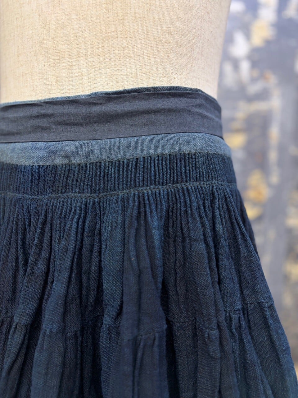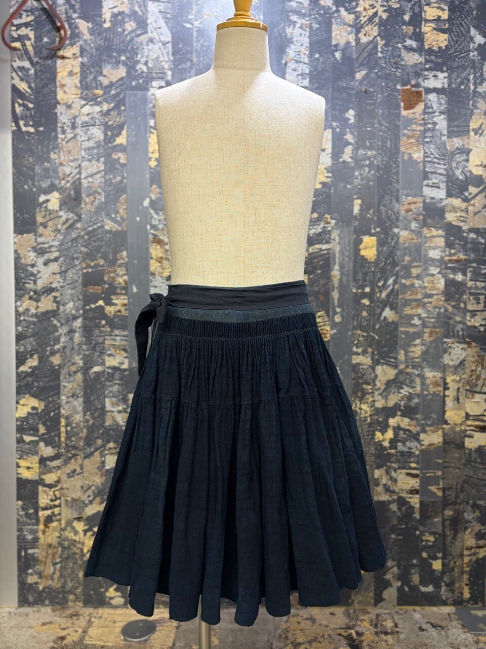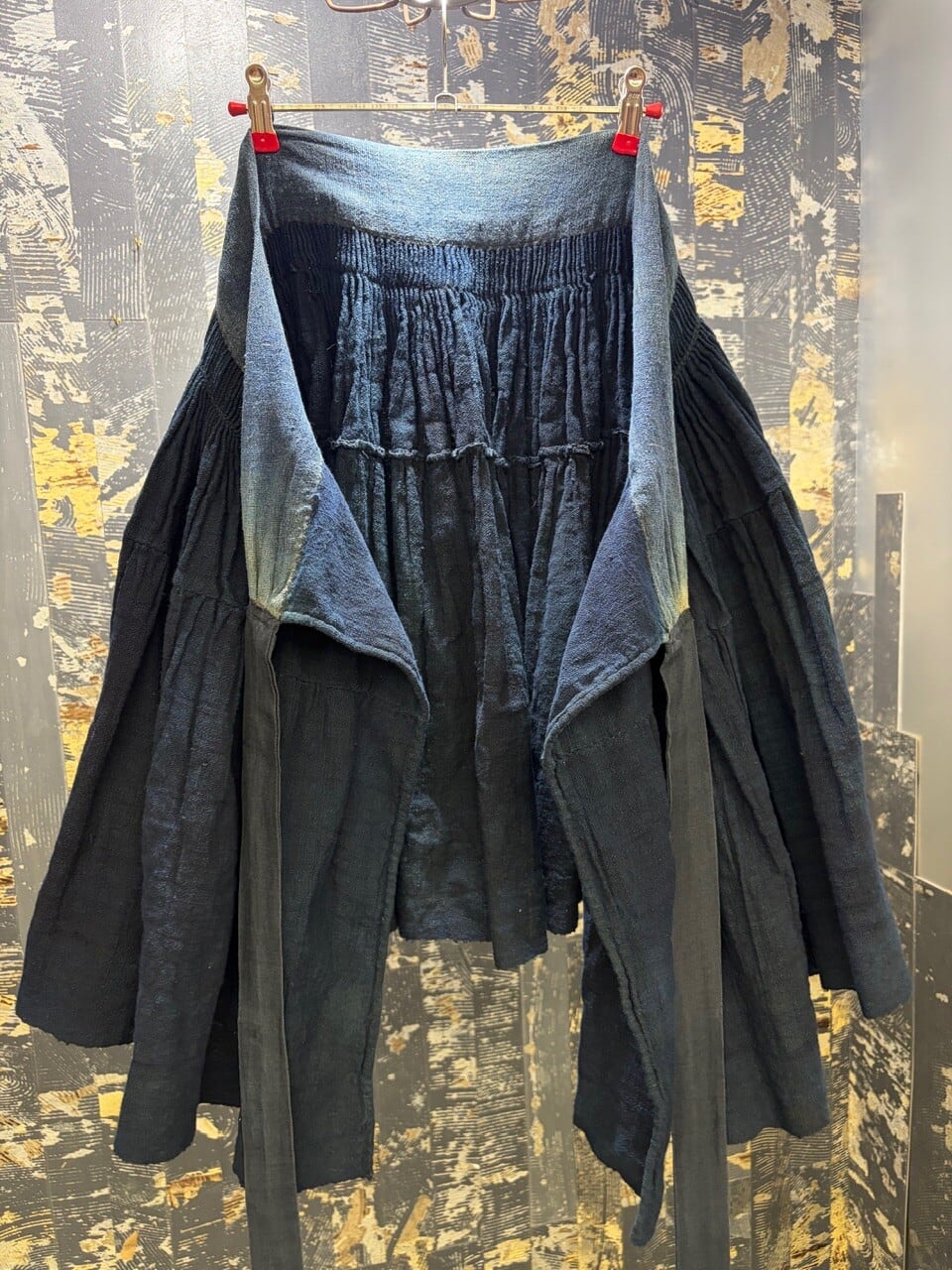 古い ハンドメイド 藍染 インディゴリネン ボリューム ラップスカート