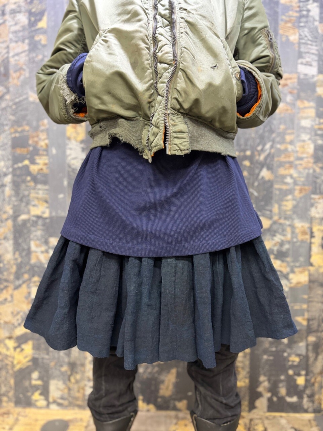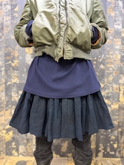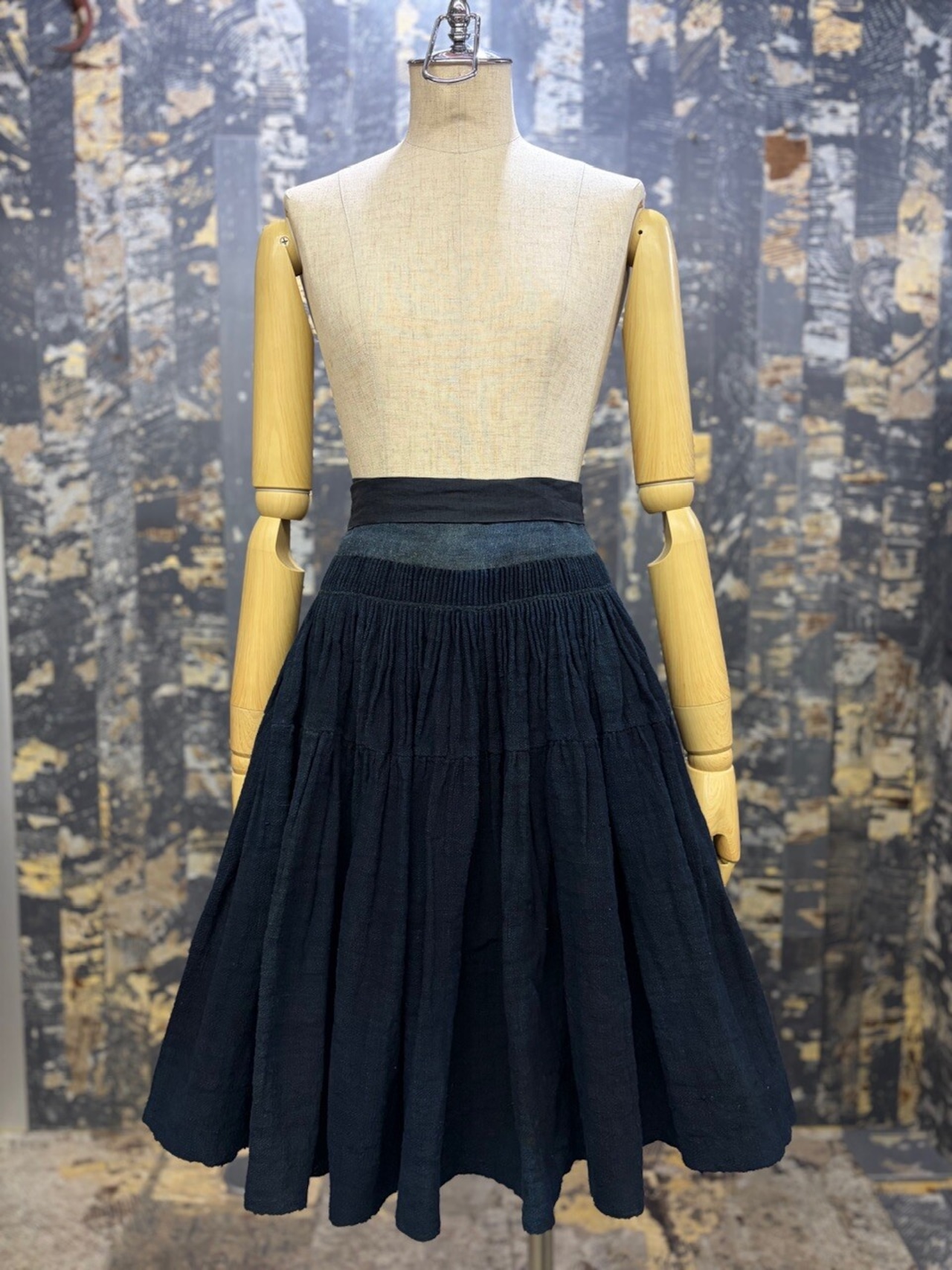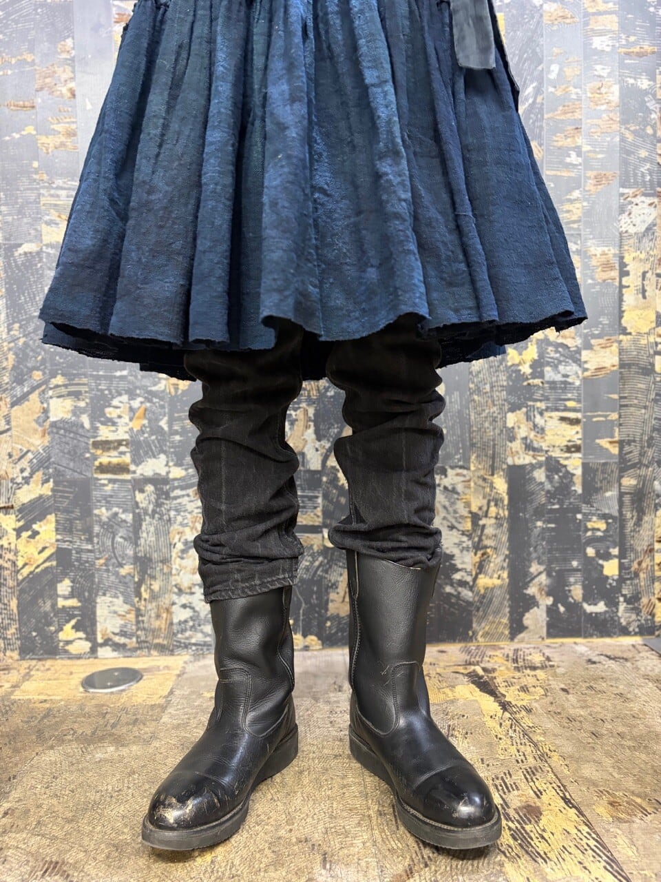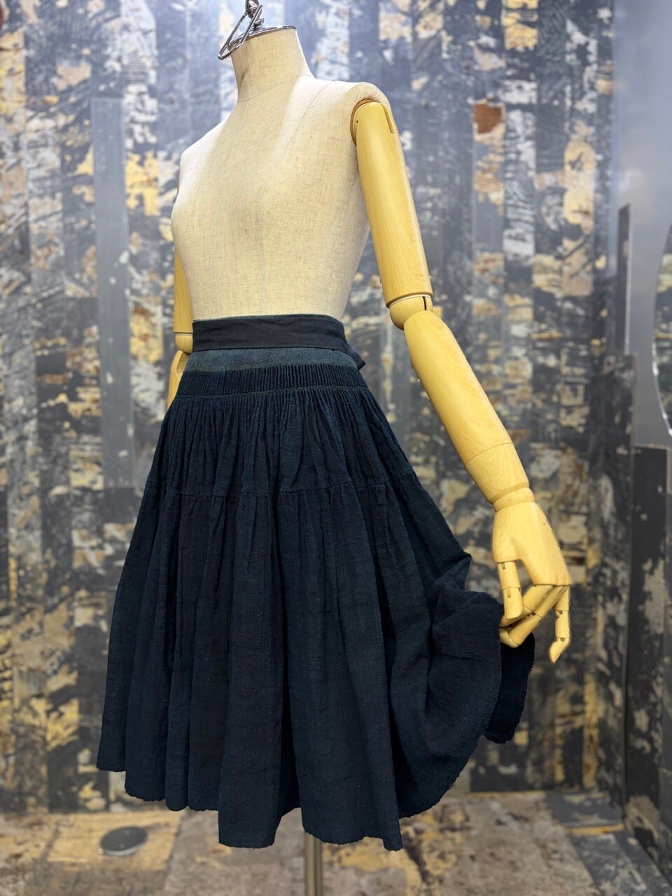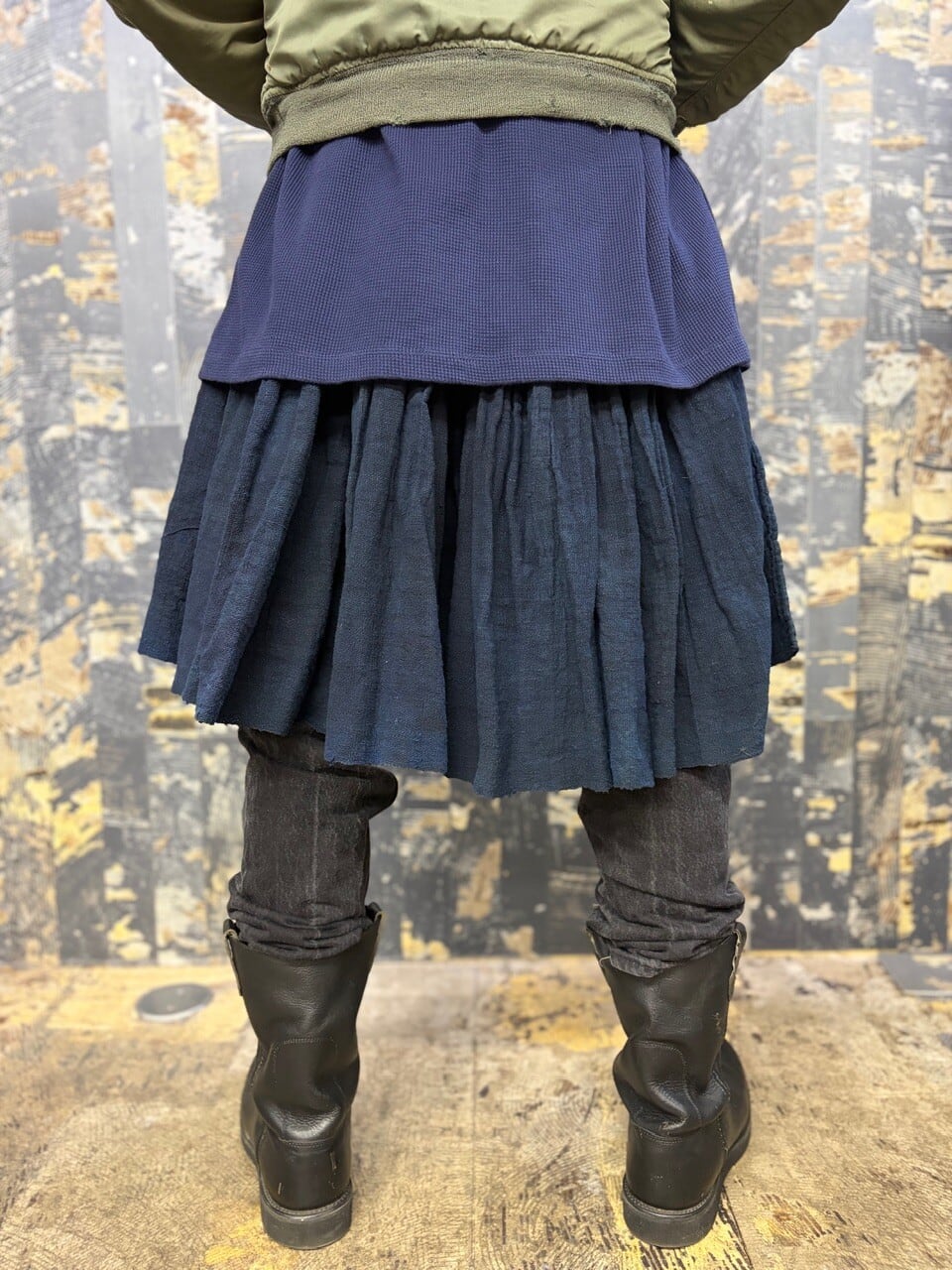 古い ハンドメイド 藍染 インディゴリネン ボリューム ラップスカート