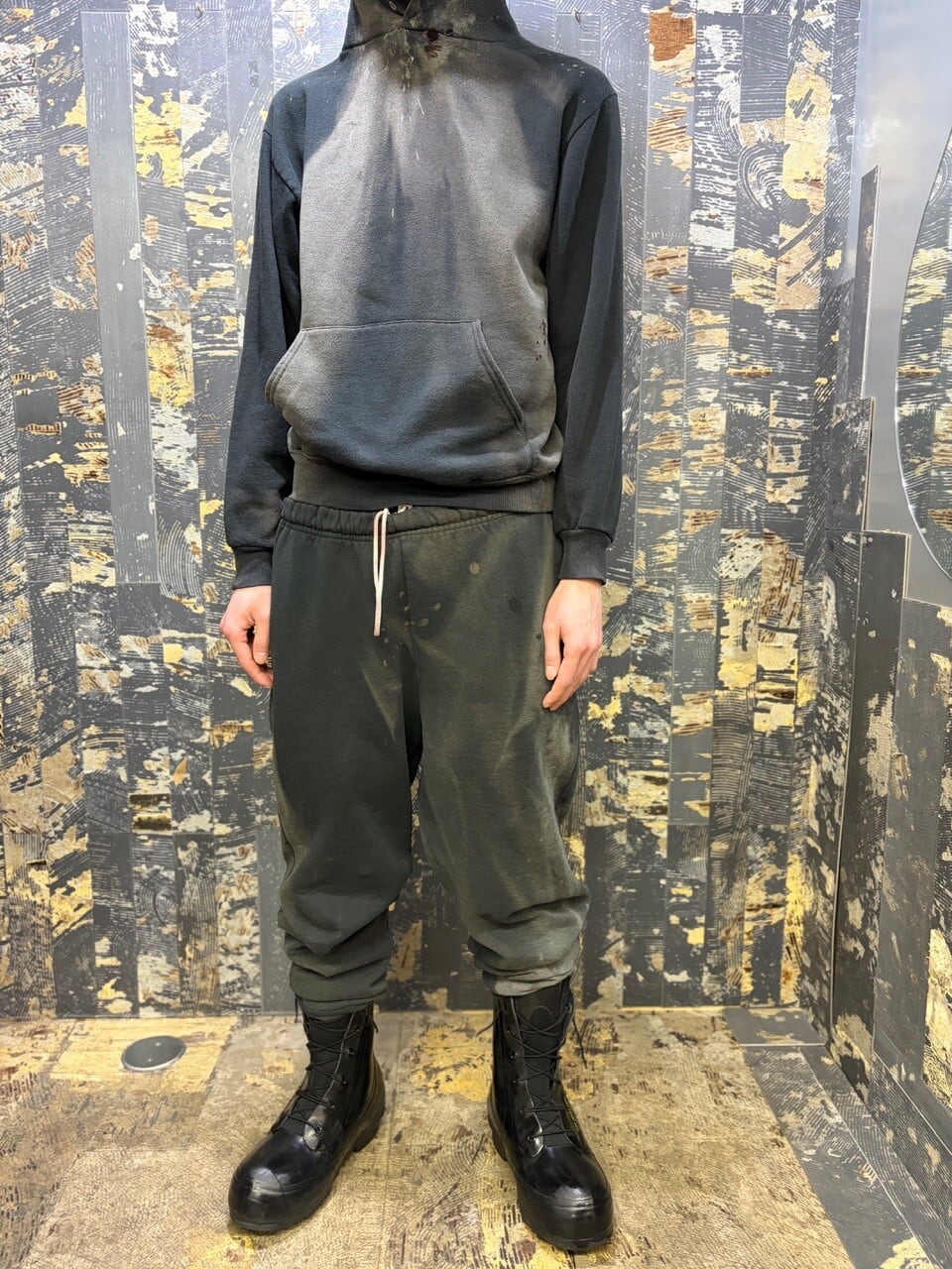 OLD JERZEES デストロイフーディー ブラックフェード M USA製