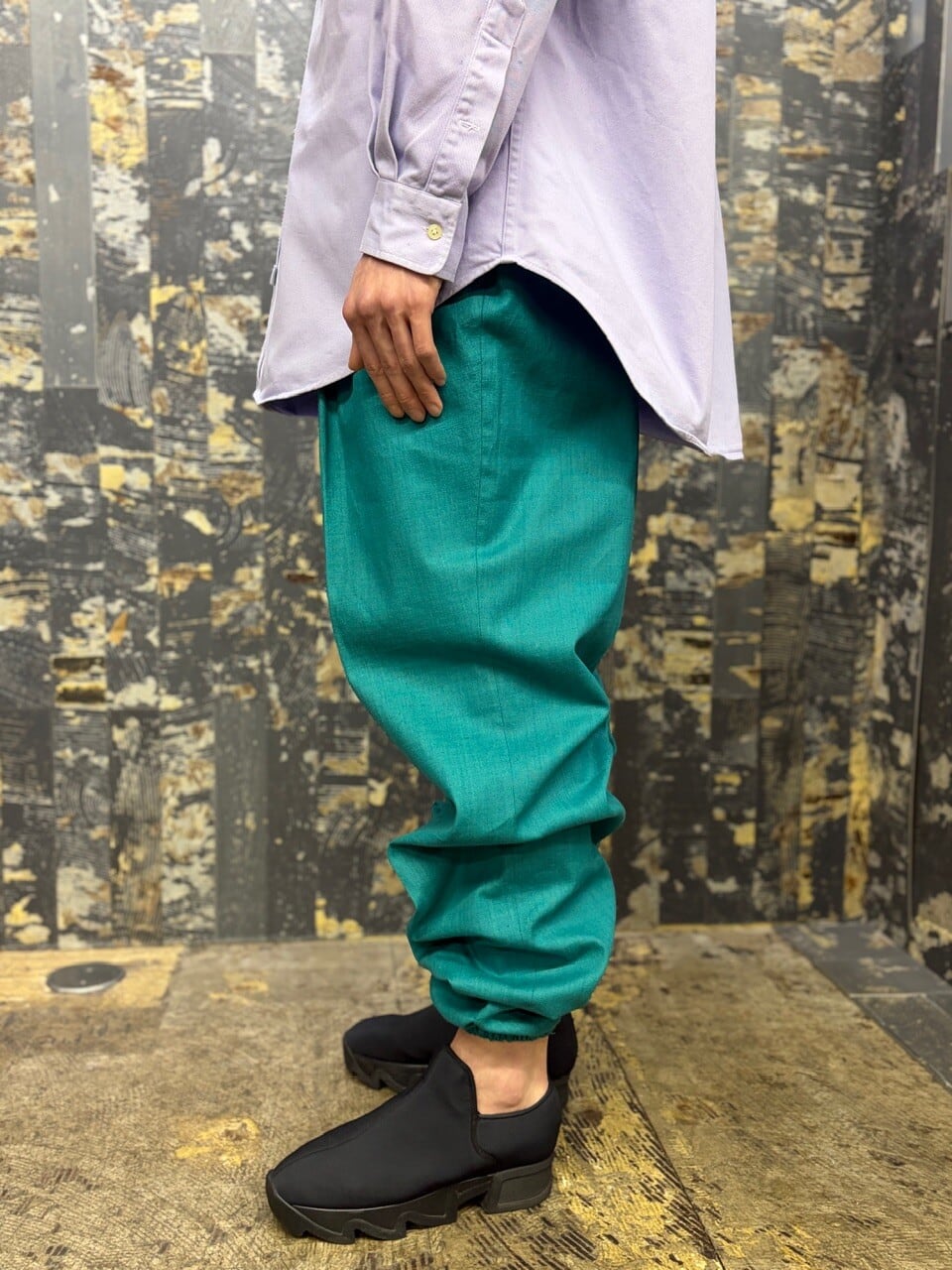 OLD カラーリネン スラックス 裾ゴム仕様 USA製