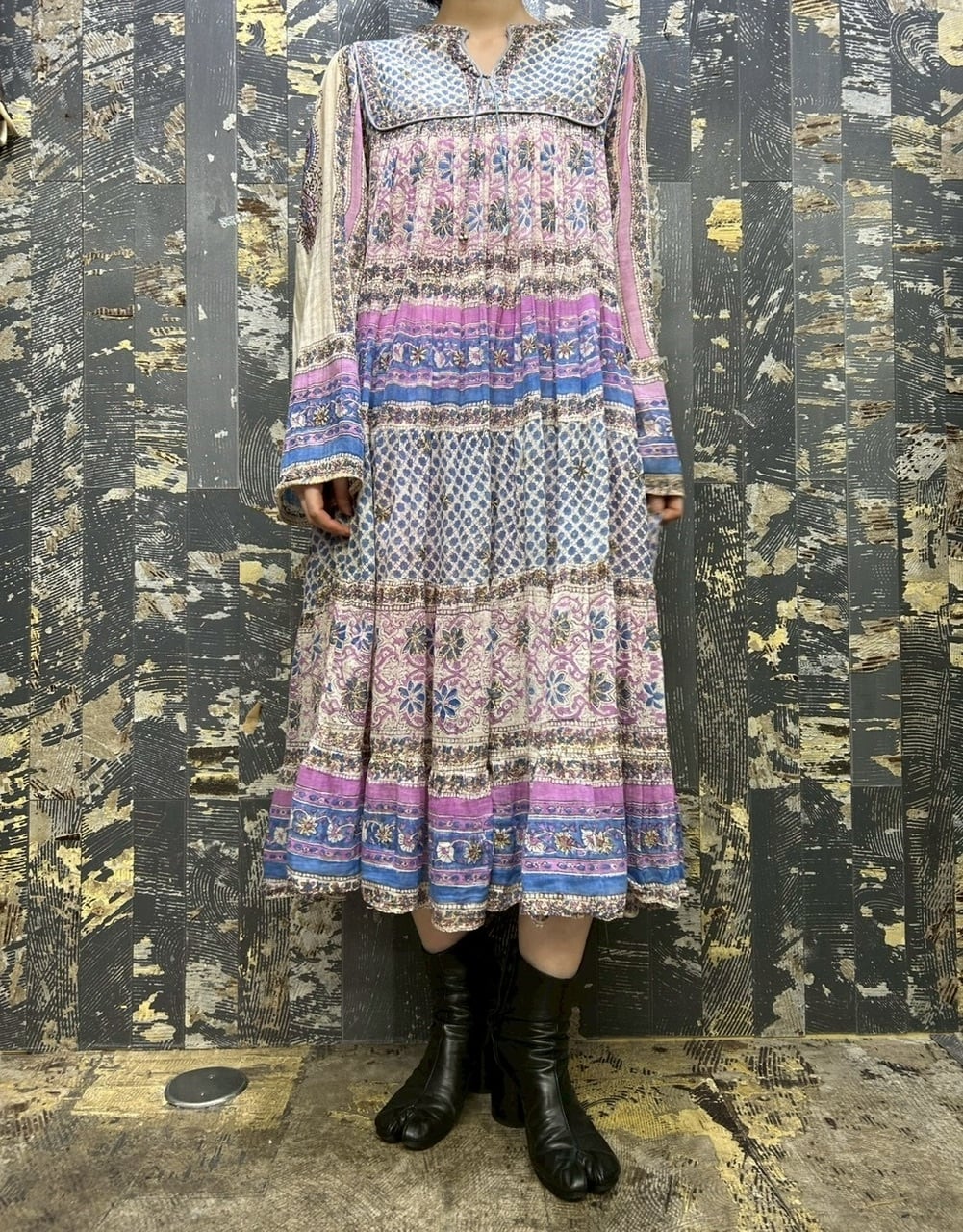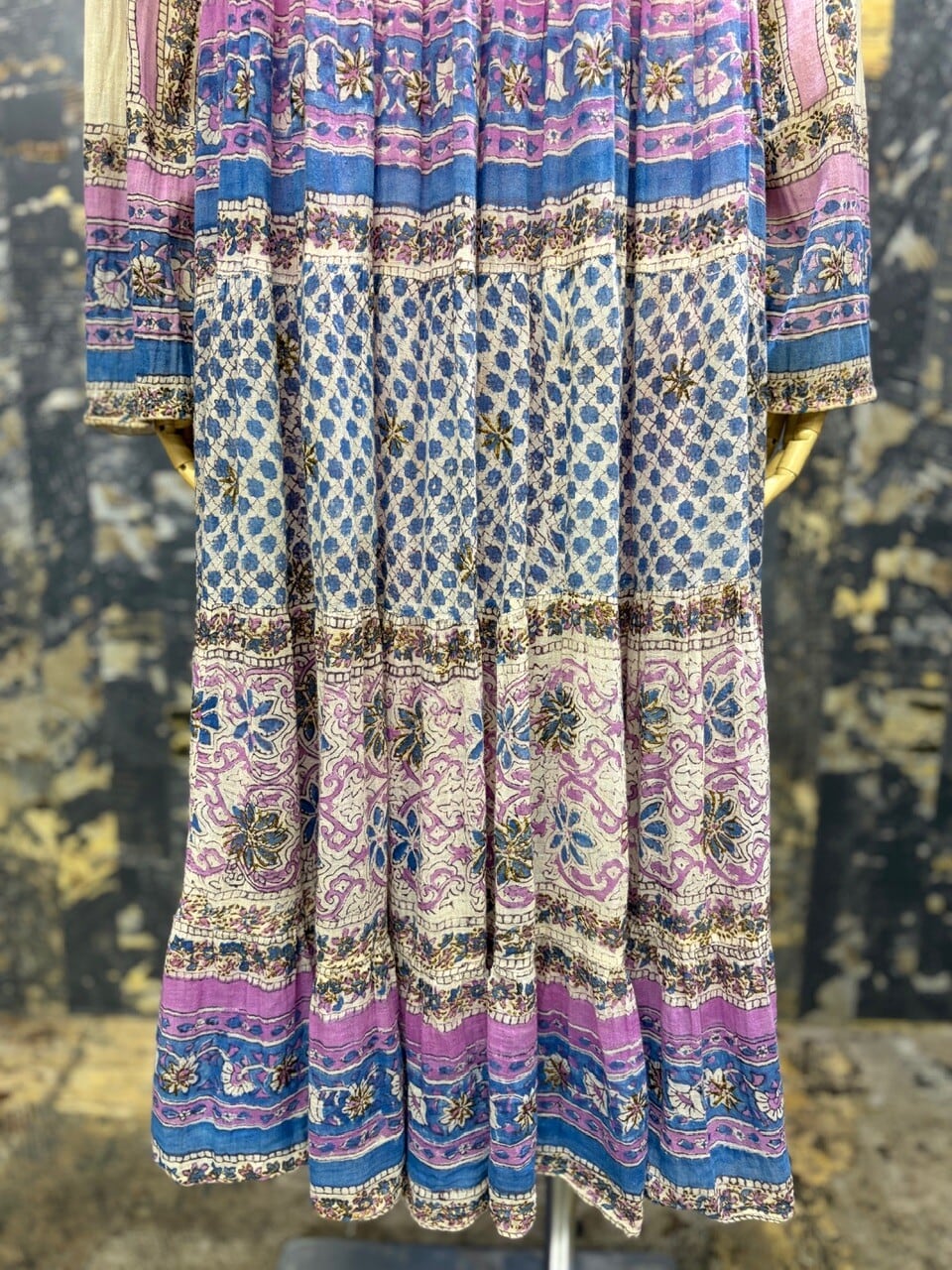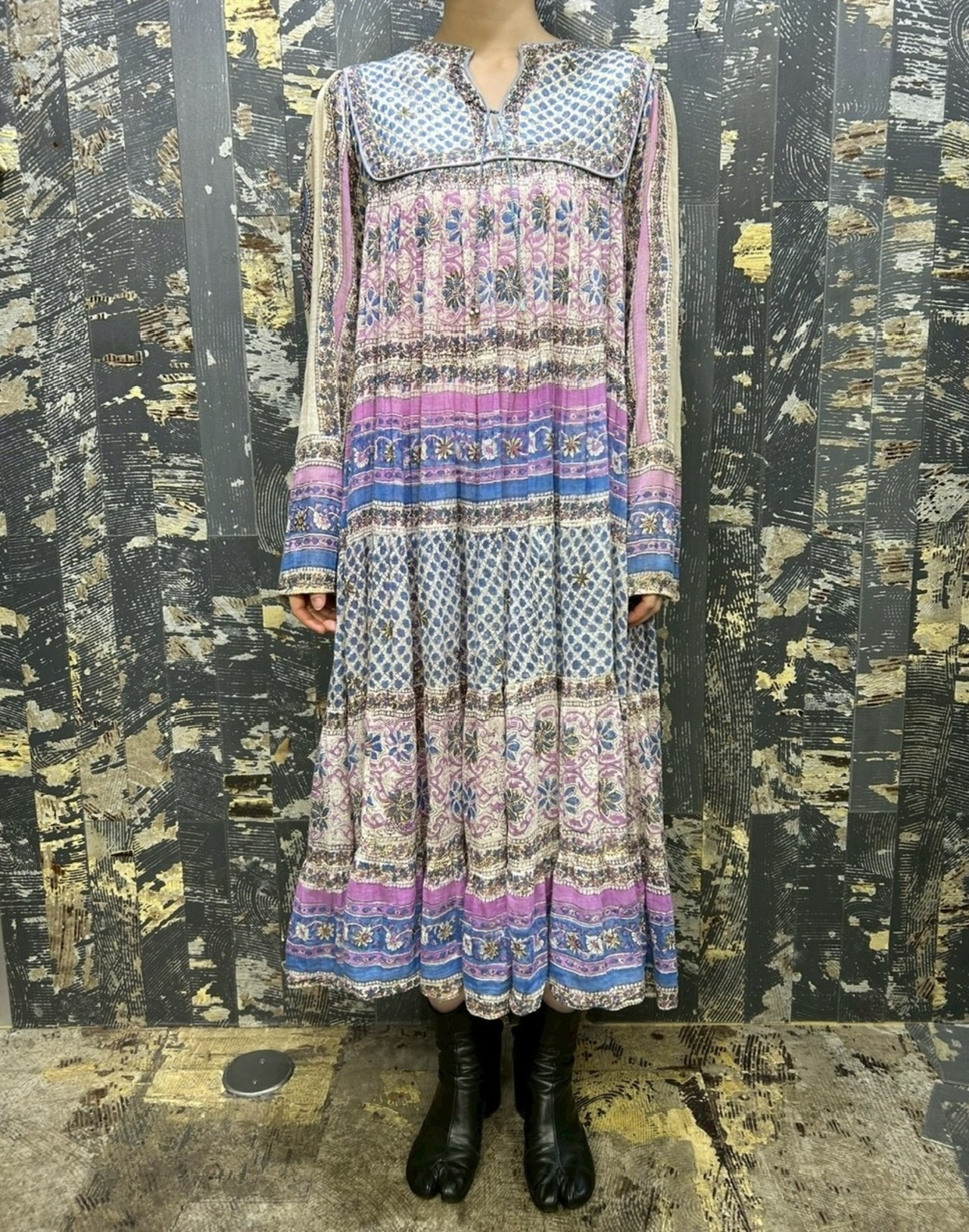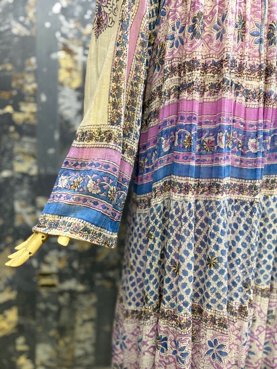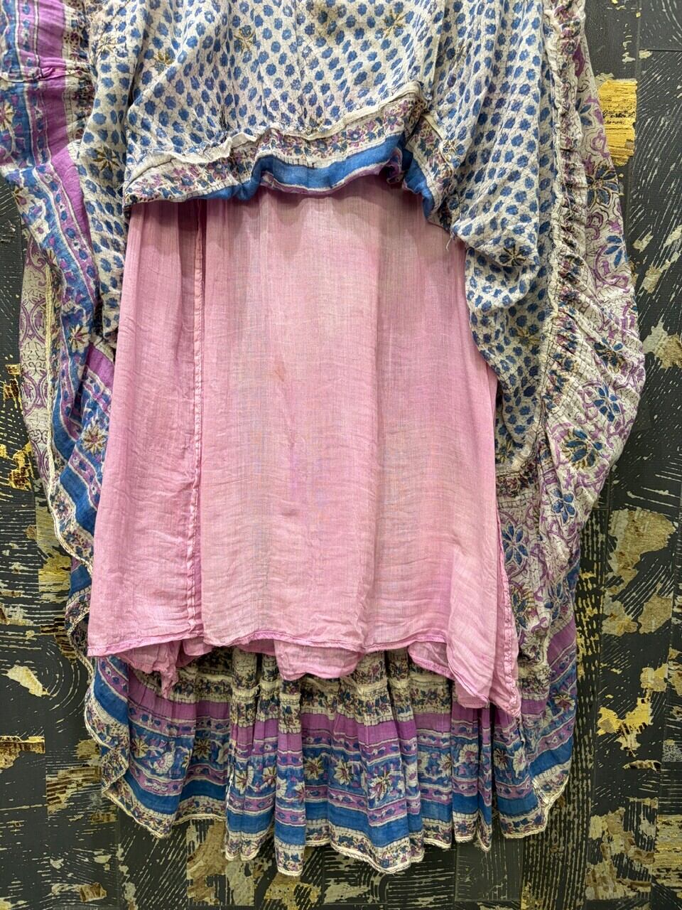 70s 80s インド綿ドレス ゴールドスタンプ