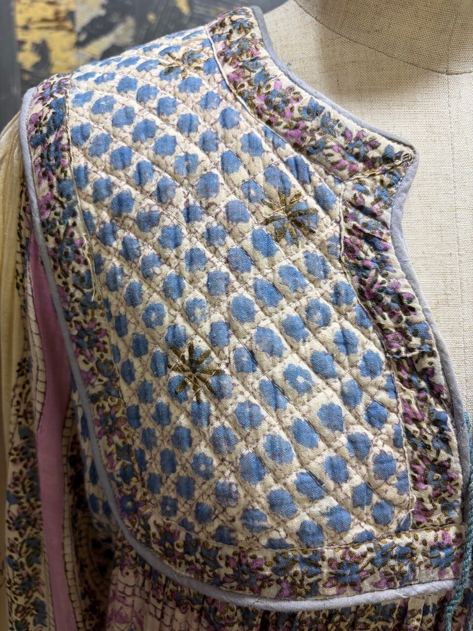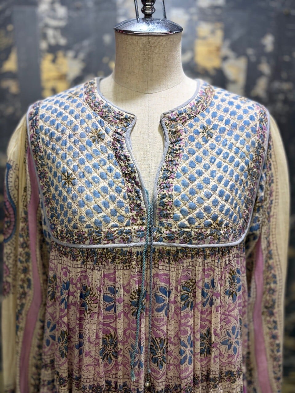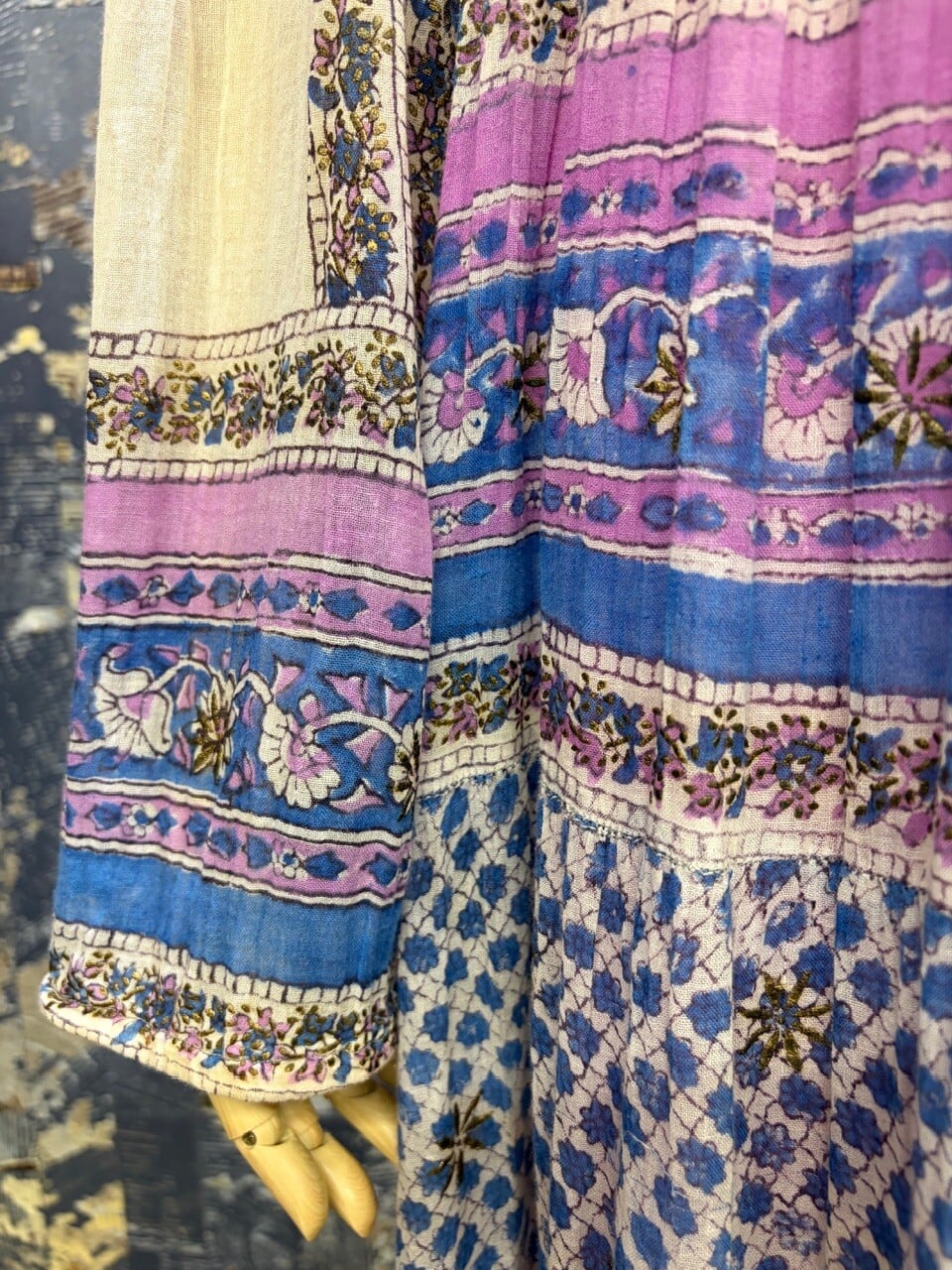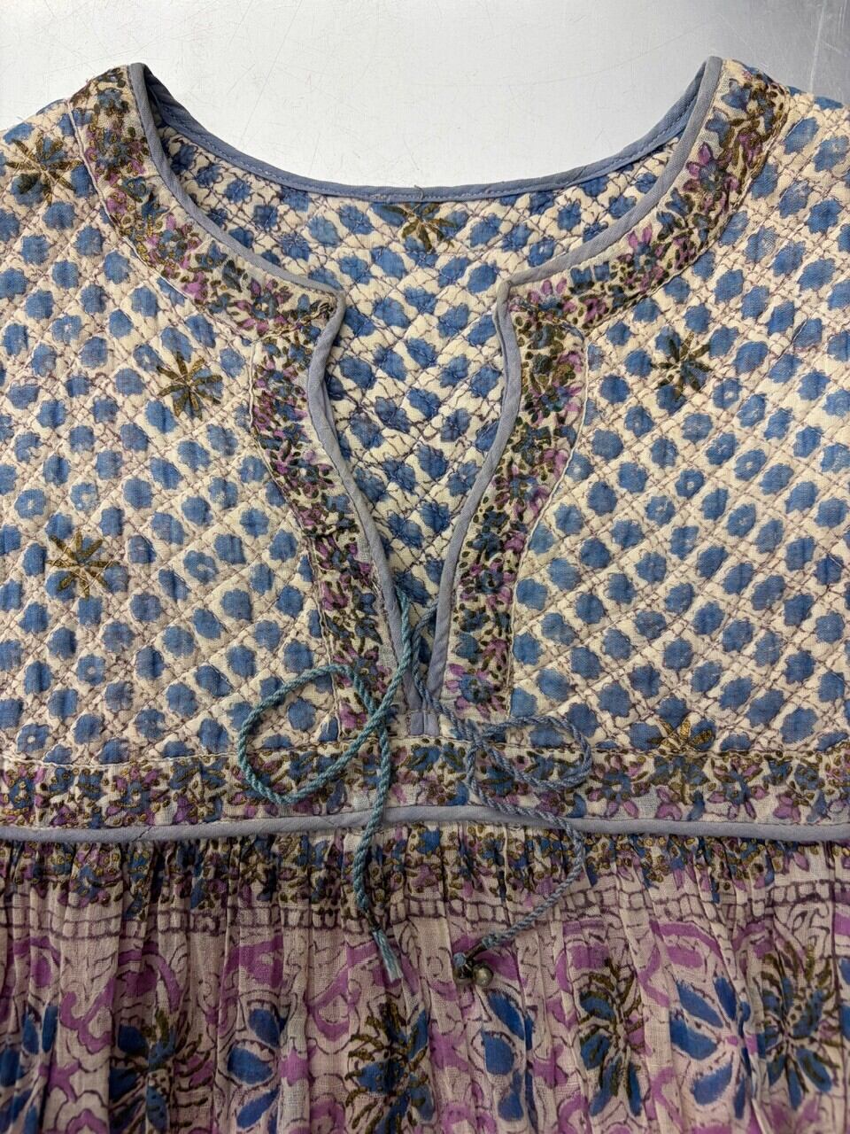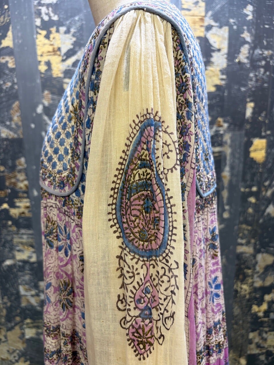 70s 80s インド綿ドレス ゴールドスタンプ