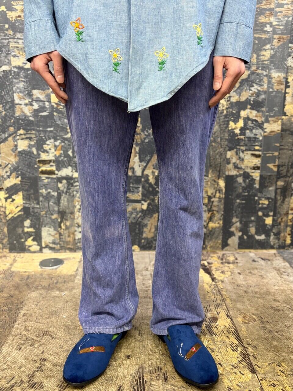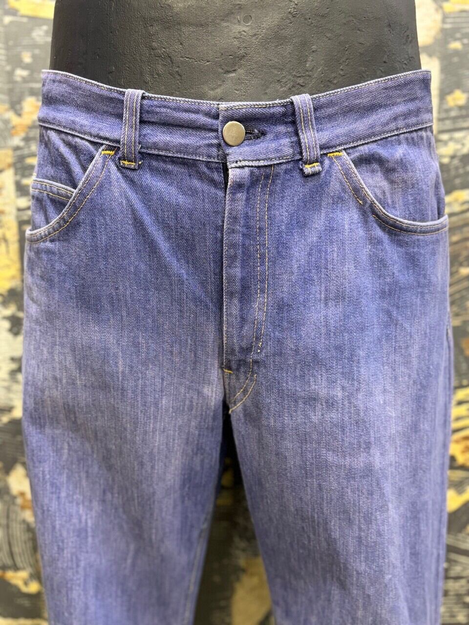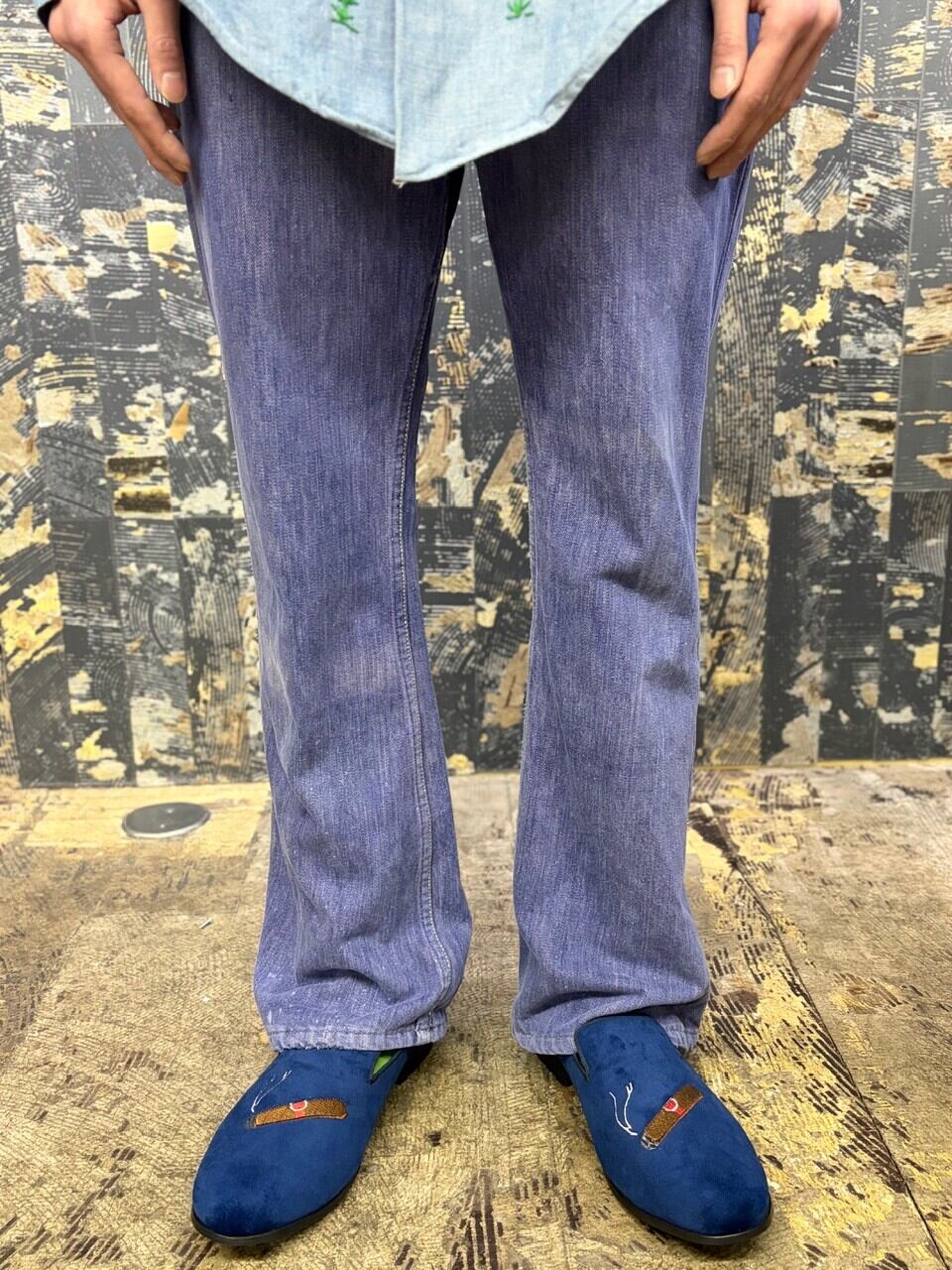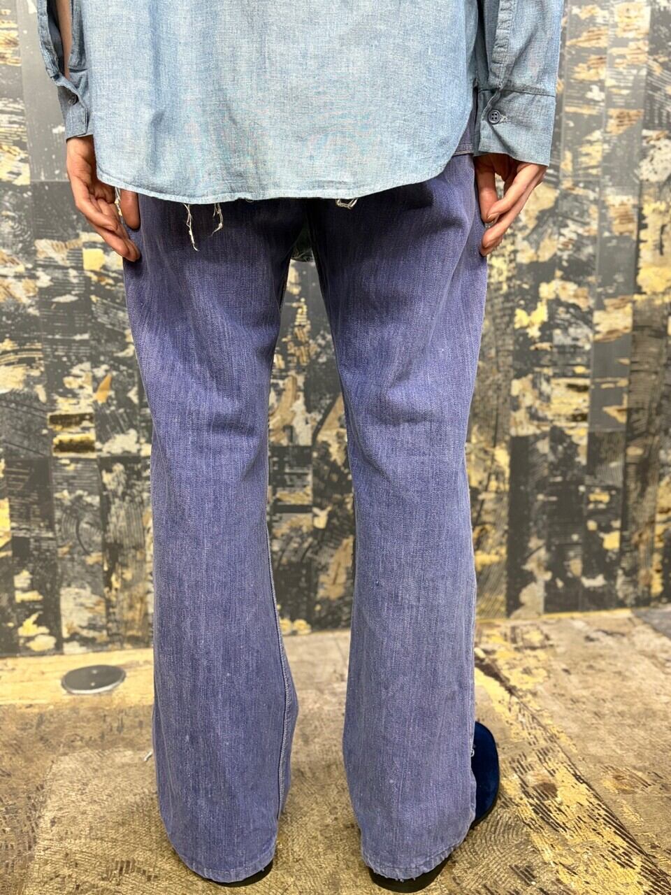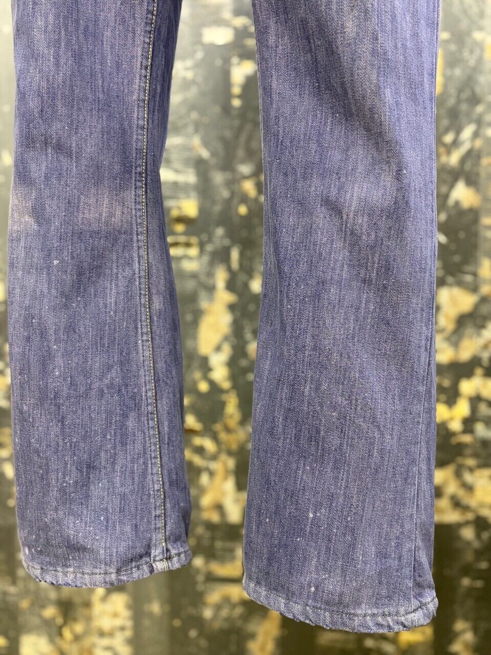 70s パープルインディゴ コットン縦フェードパープルデニムパンツ