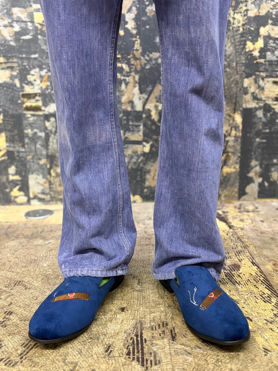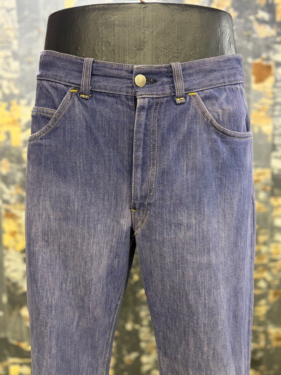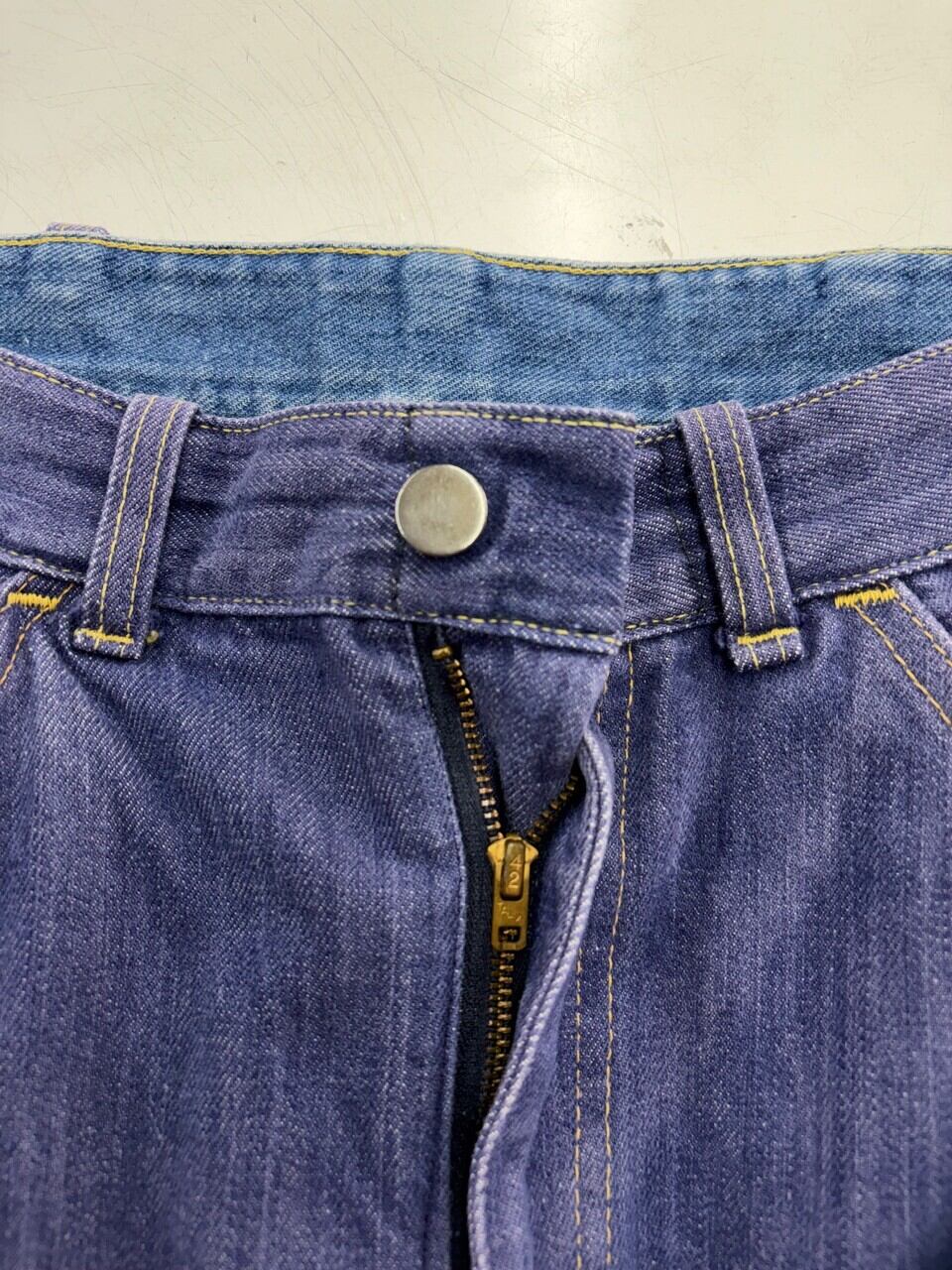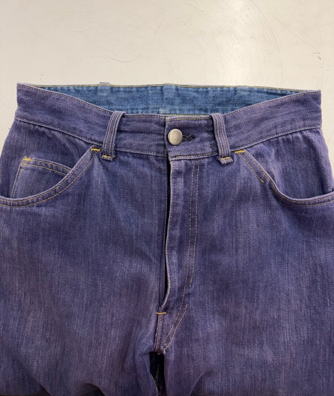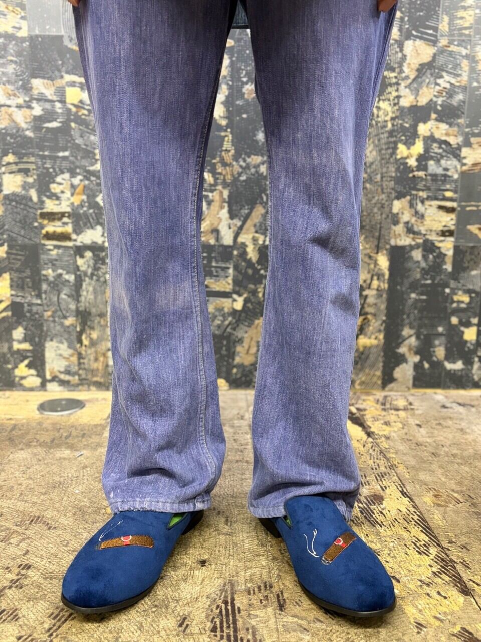 70s パープルインディゴ コットン縦フェードパープルデニムパンツ