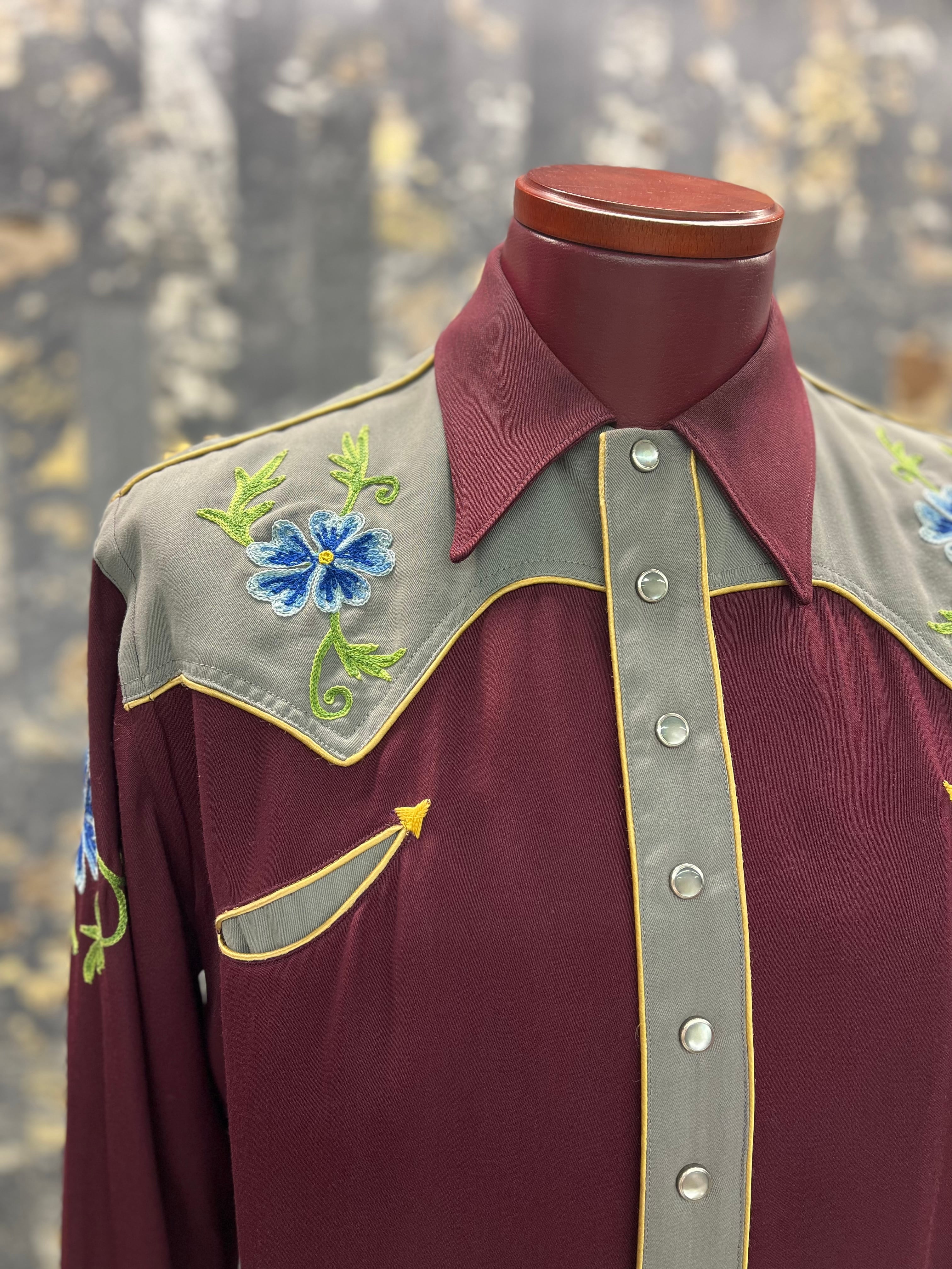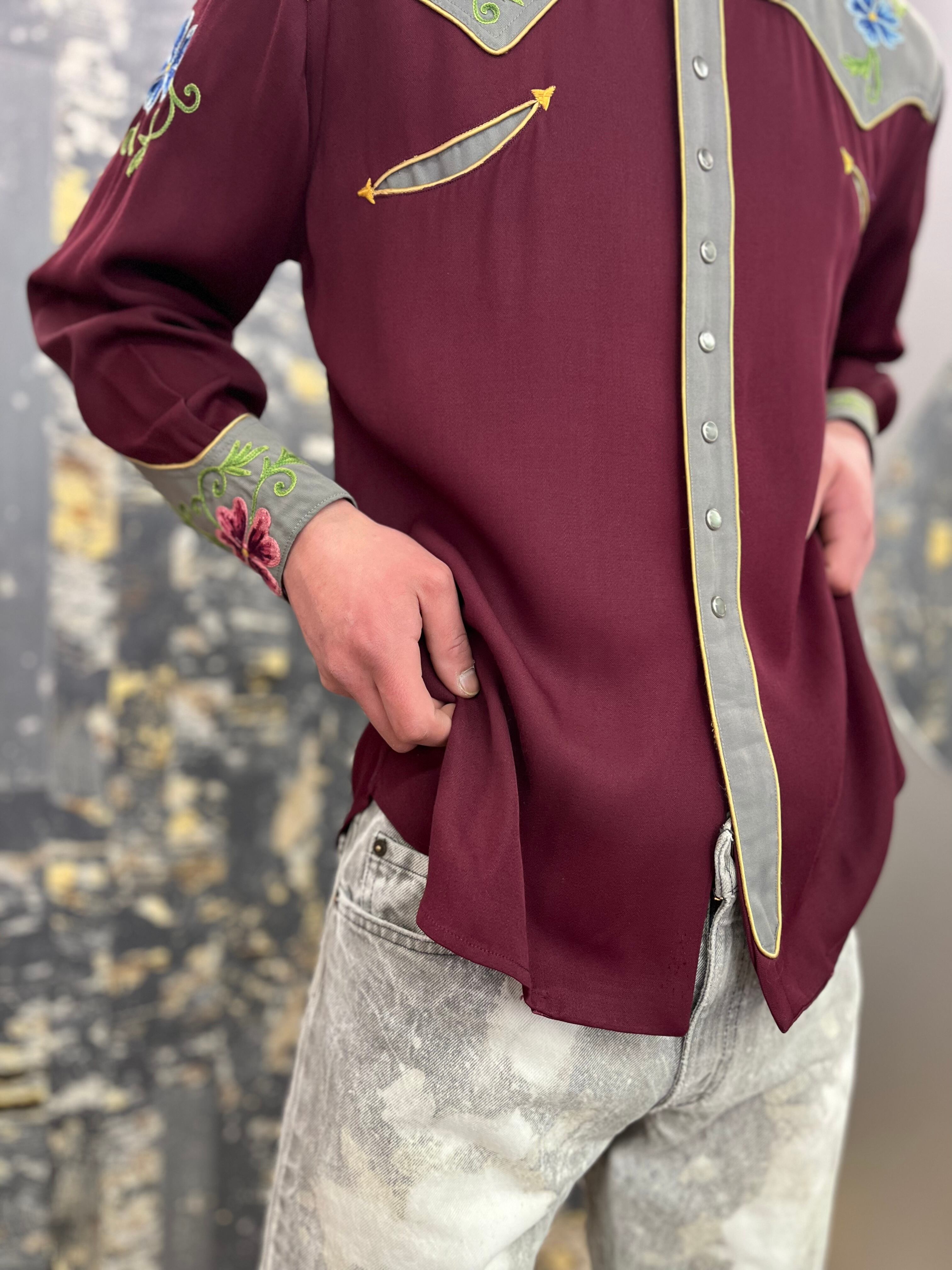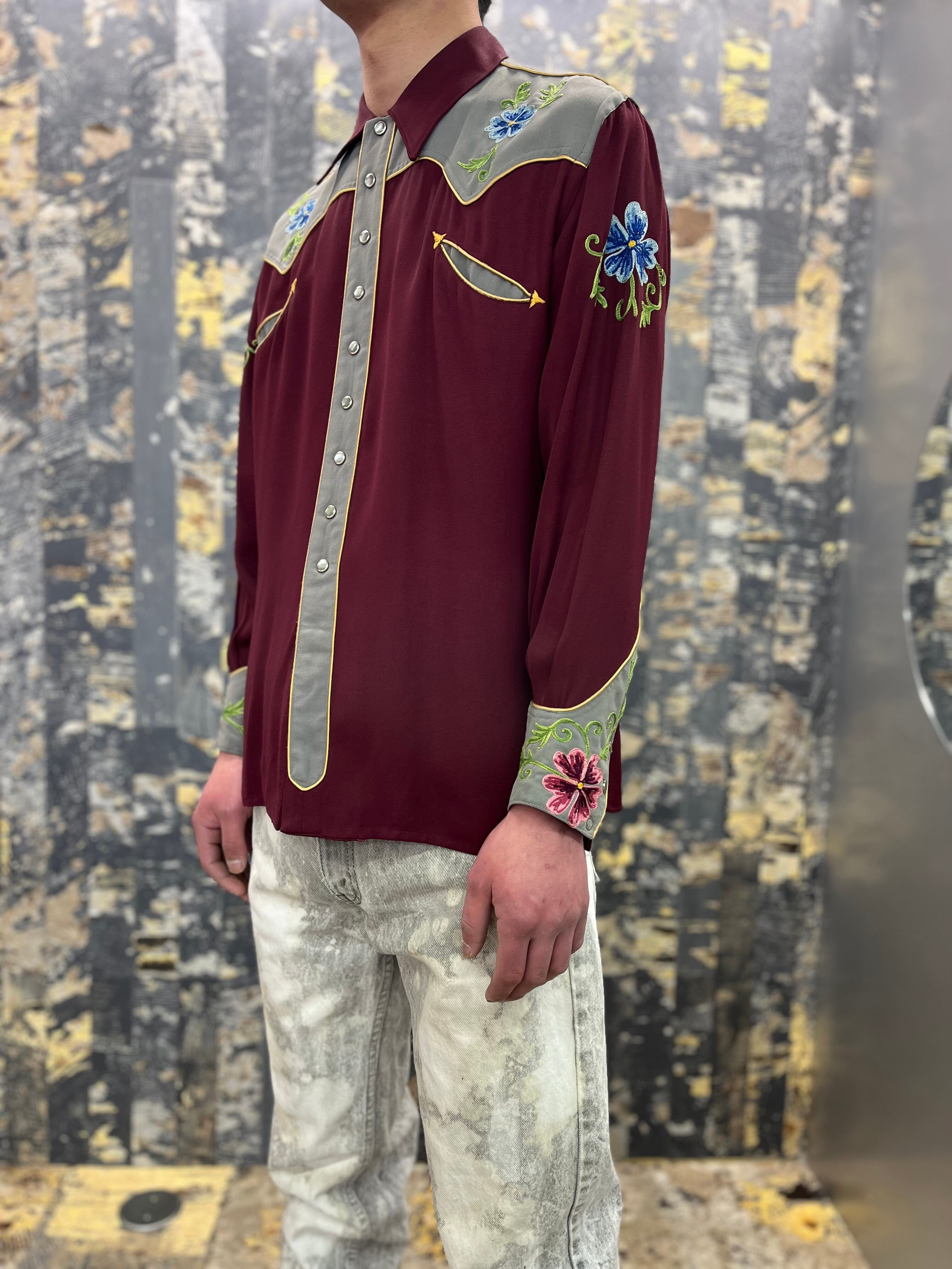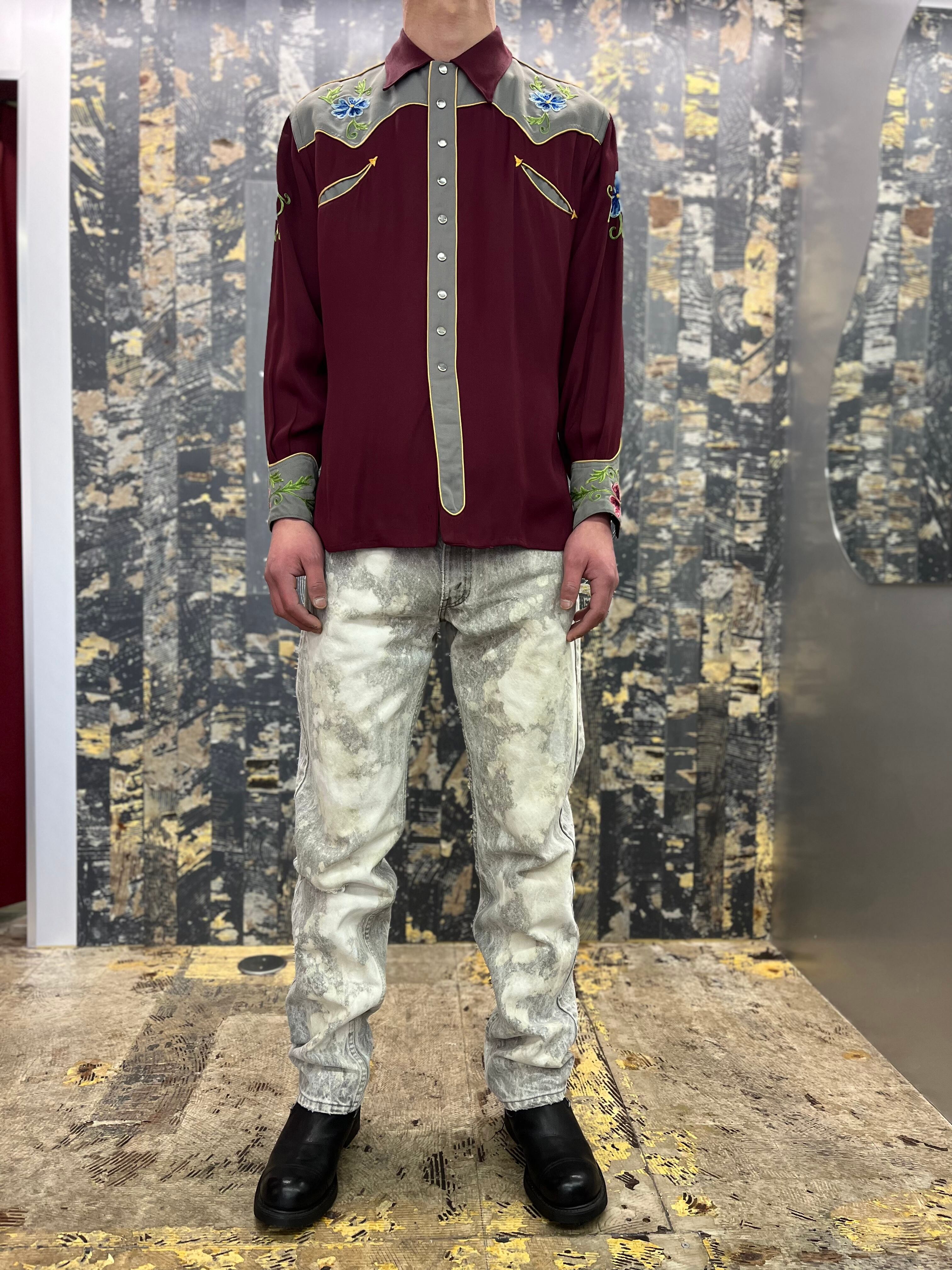 50s〜40s 花柄刺繍ウエスタンギャバシャツ