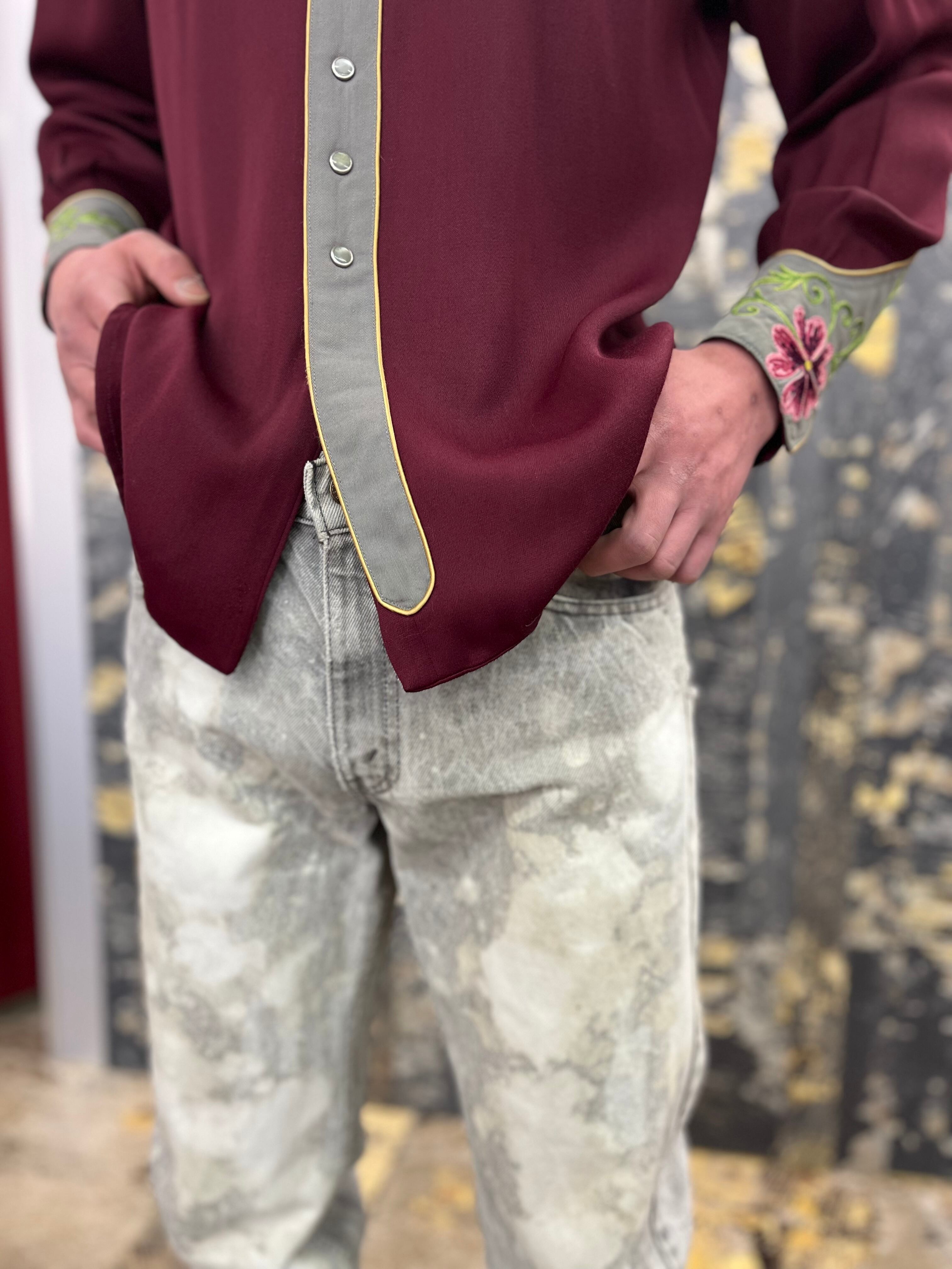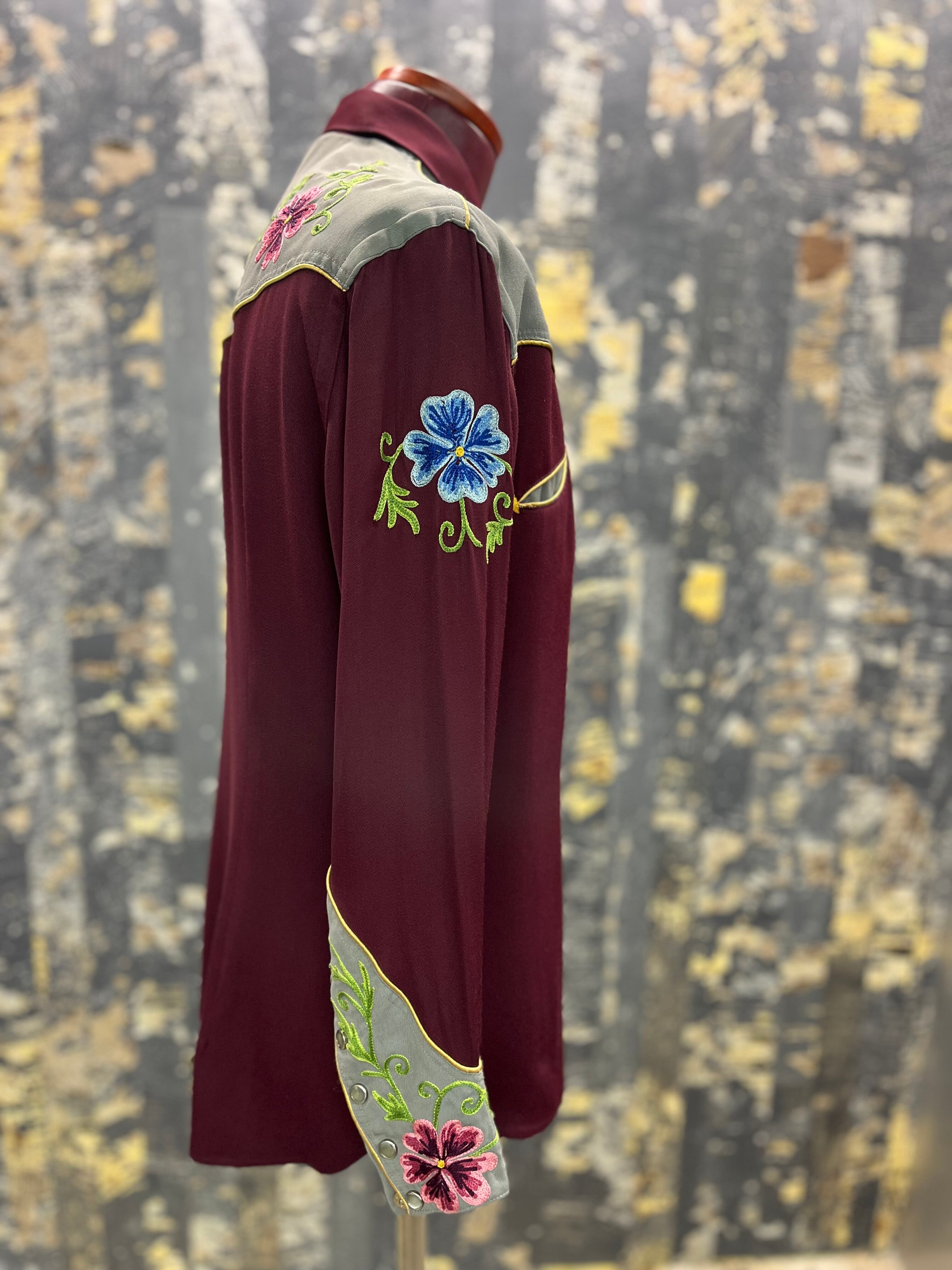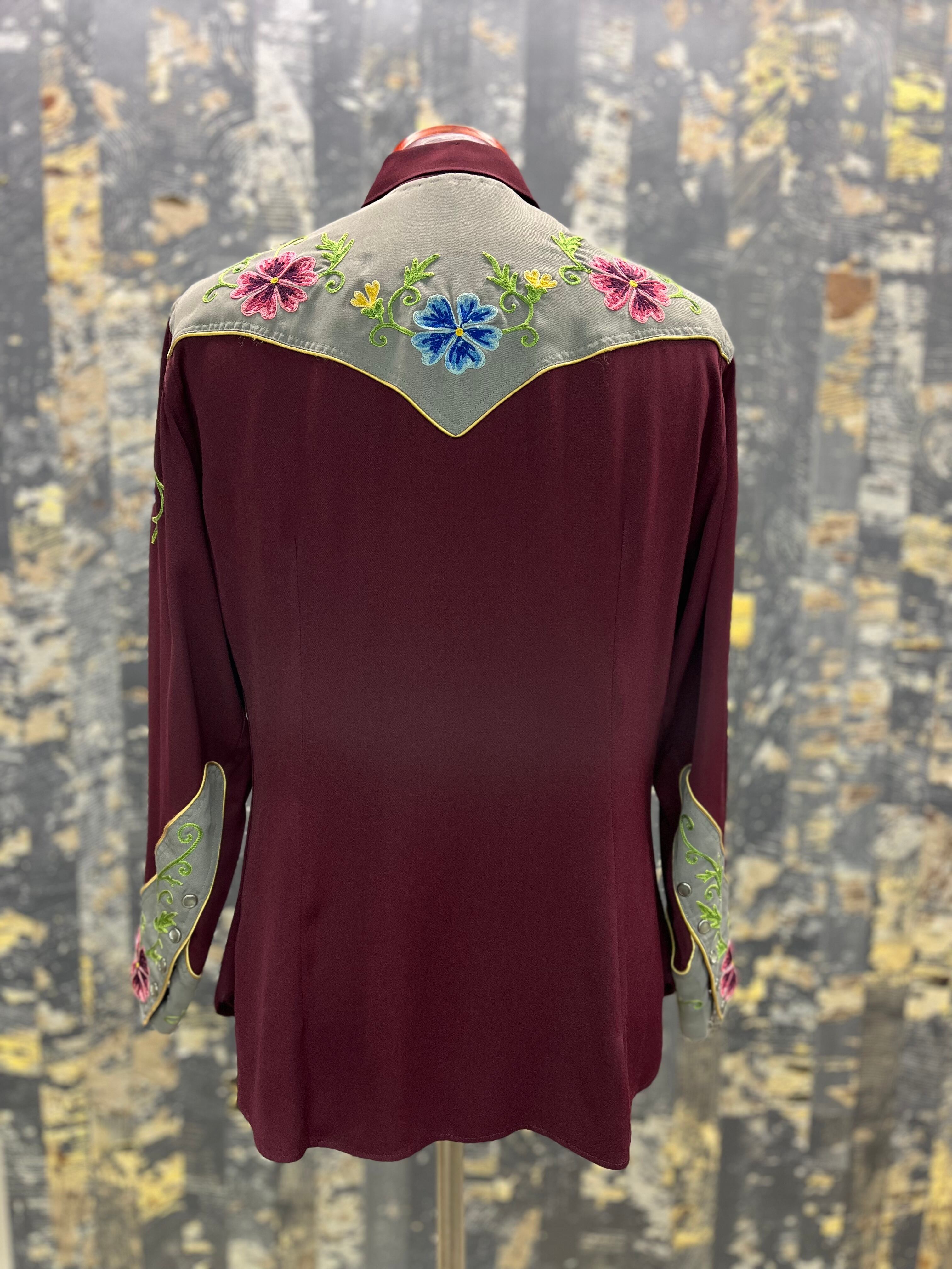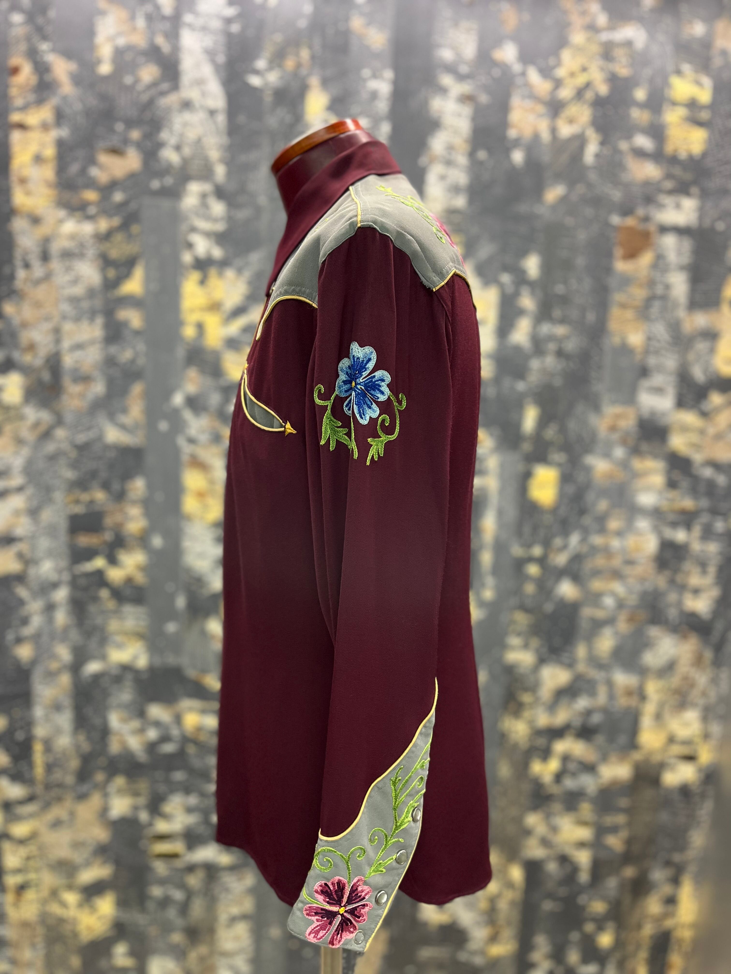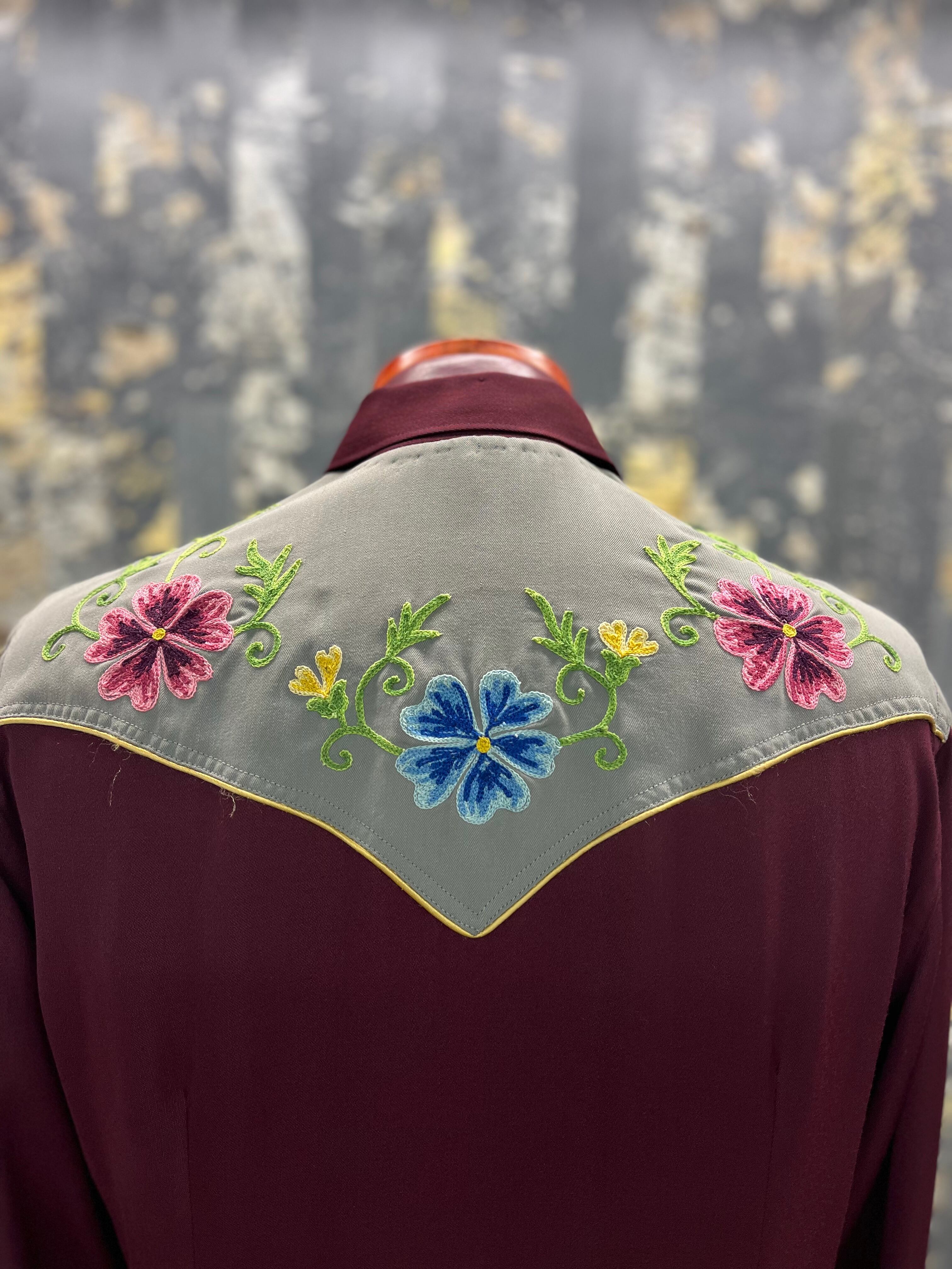 50s〜40s 花柄刺繍ウエスタンギャバシャツ