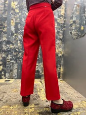 発色良い赤。女性が着る赤はなぜかかっこいい。