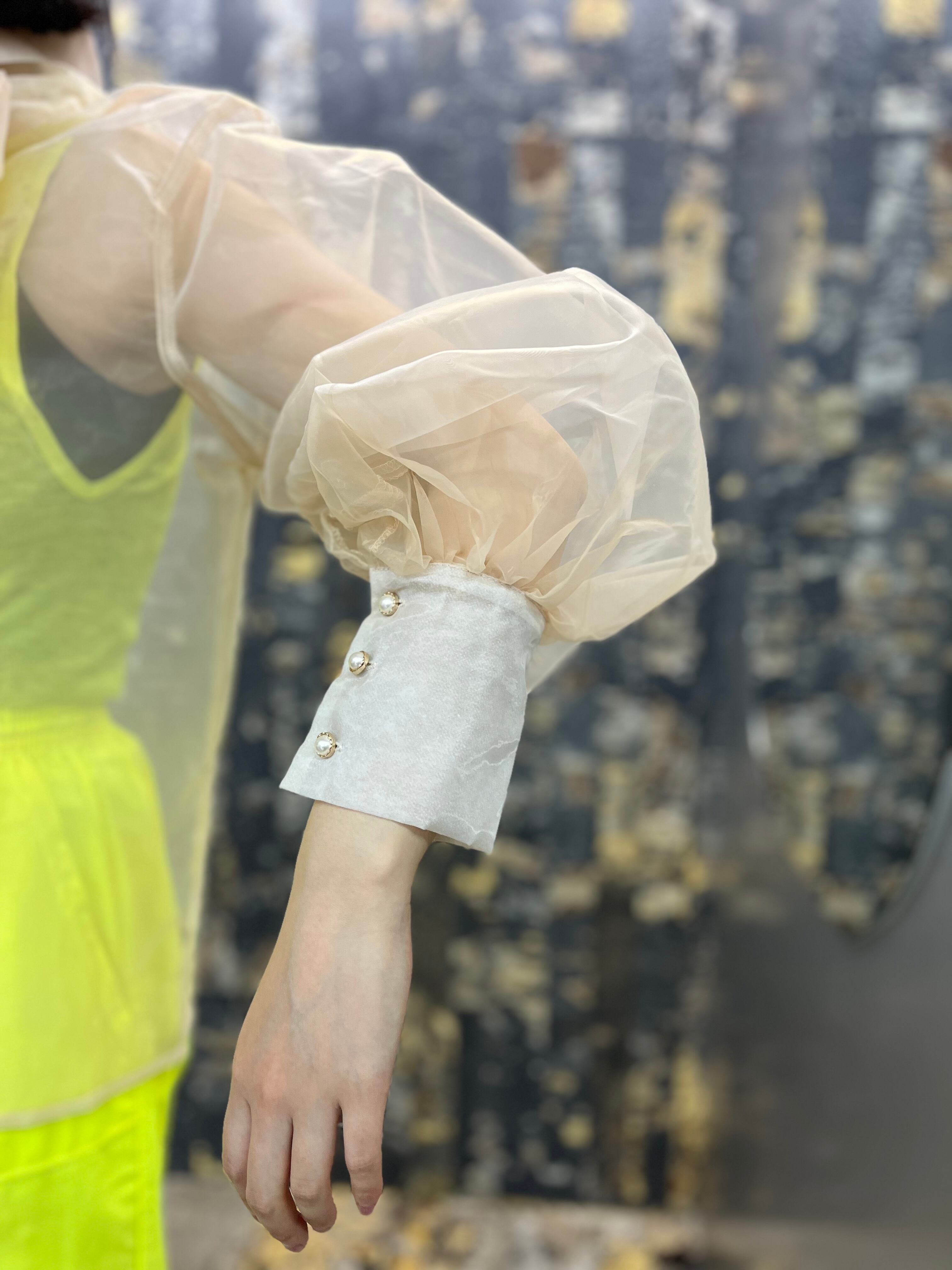 おもしろい質感の生地が作るシルエットはインパクトかなりあり。