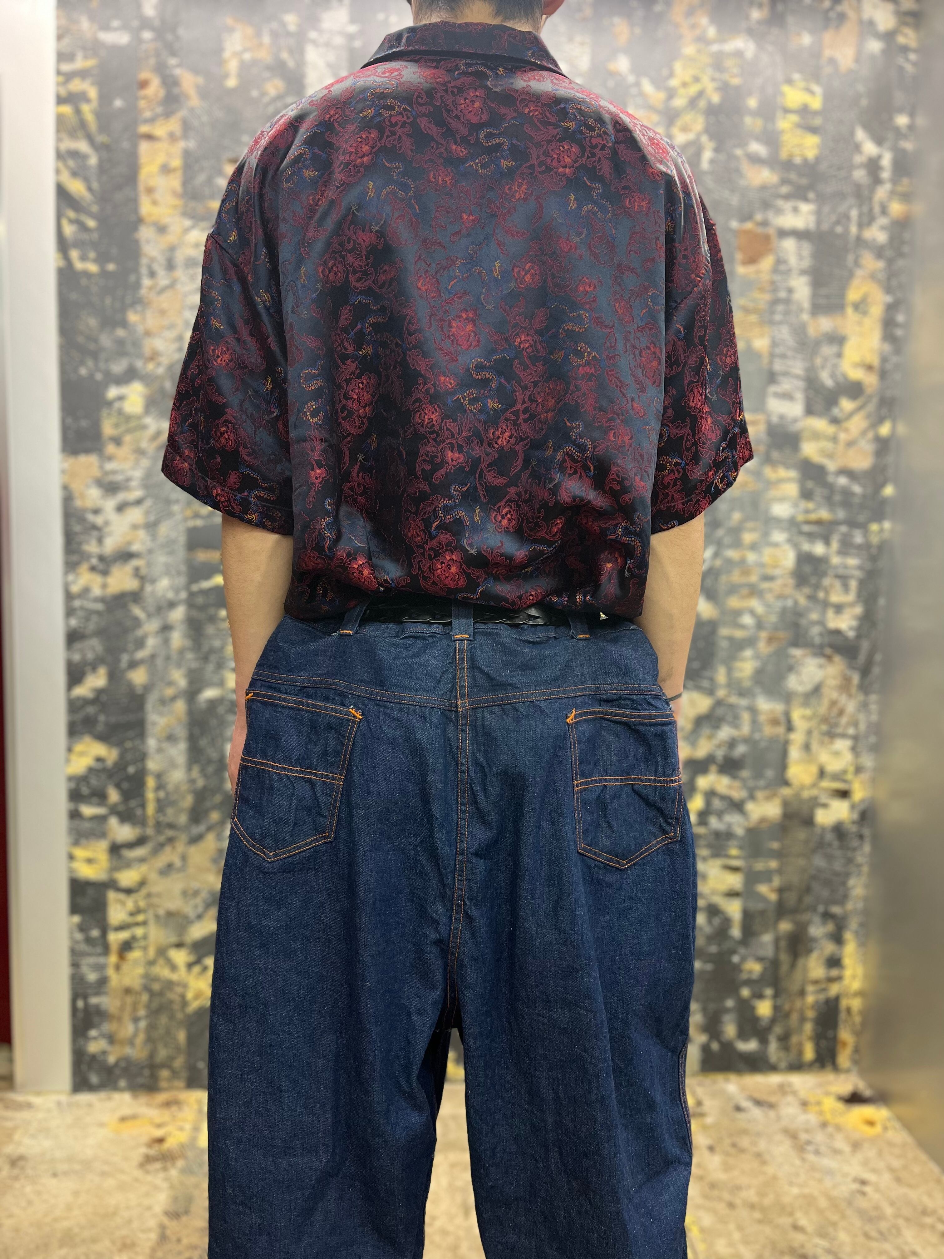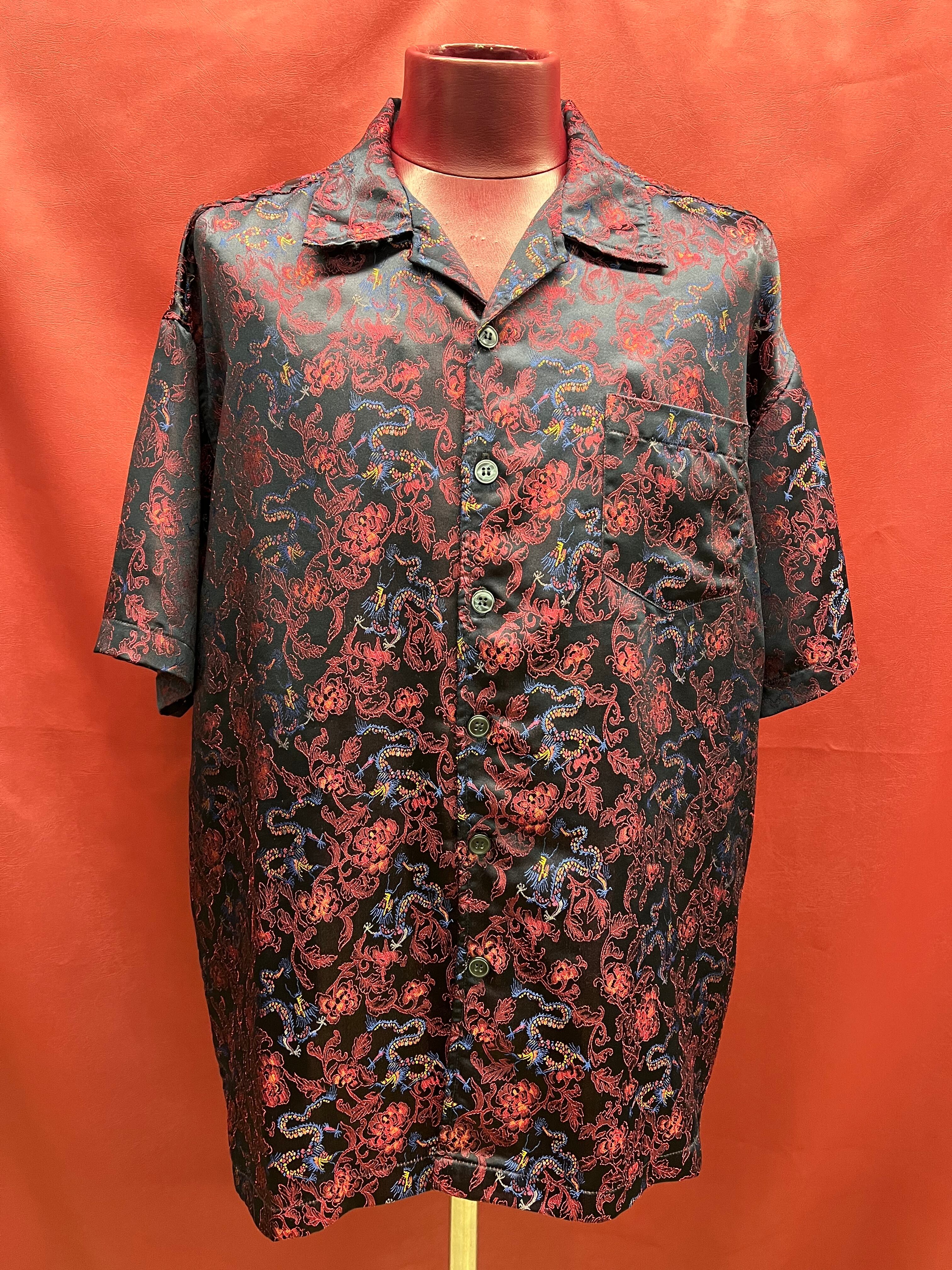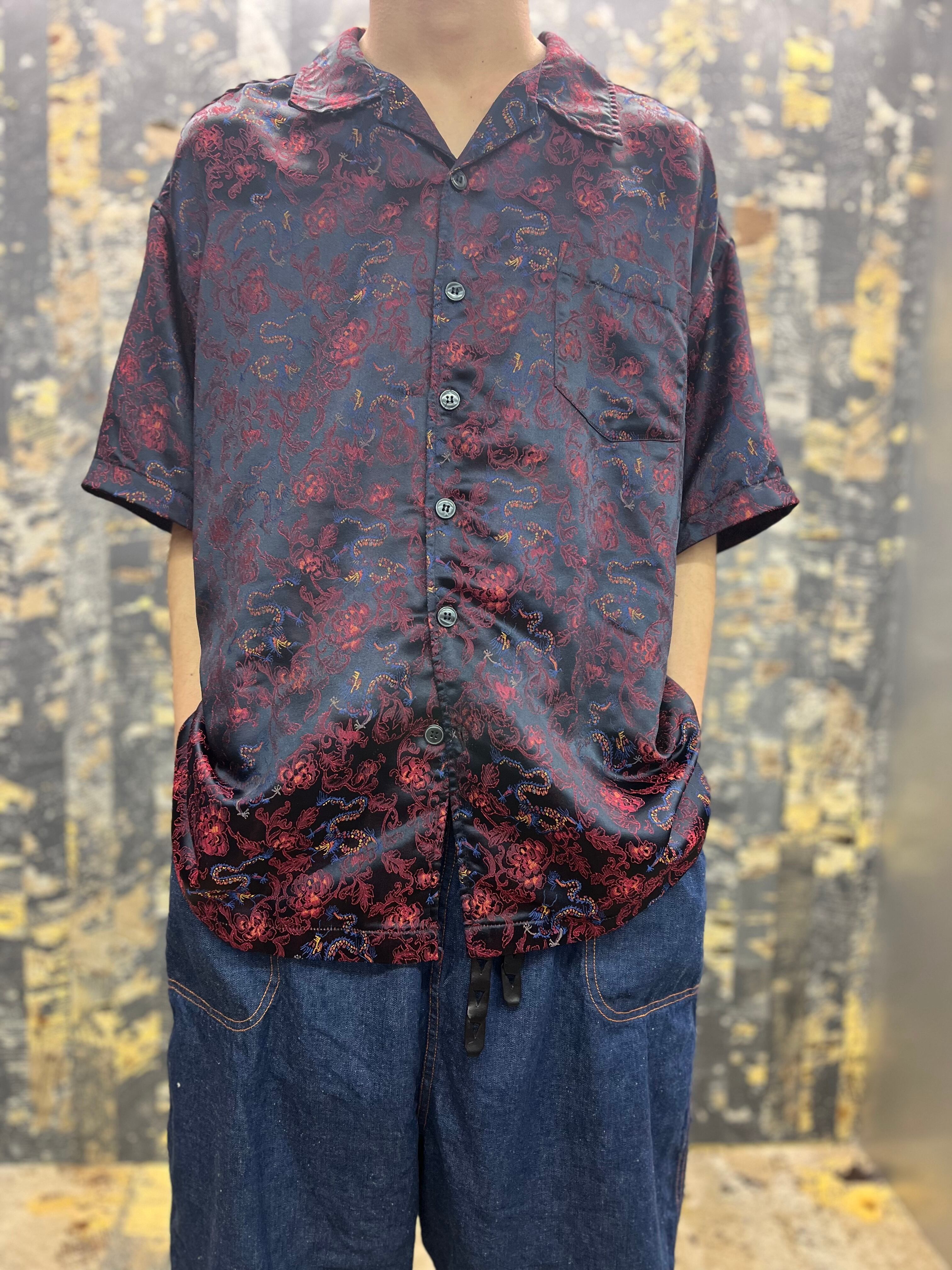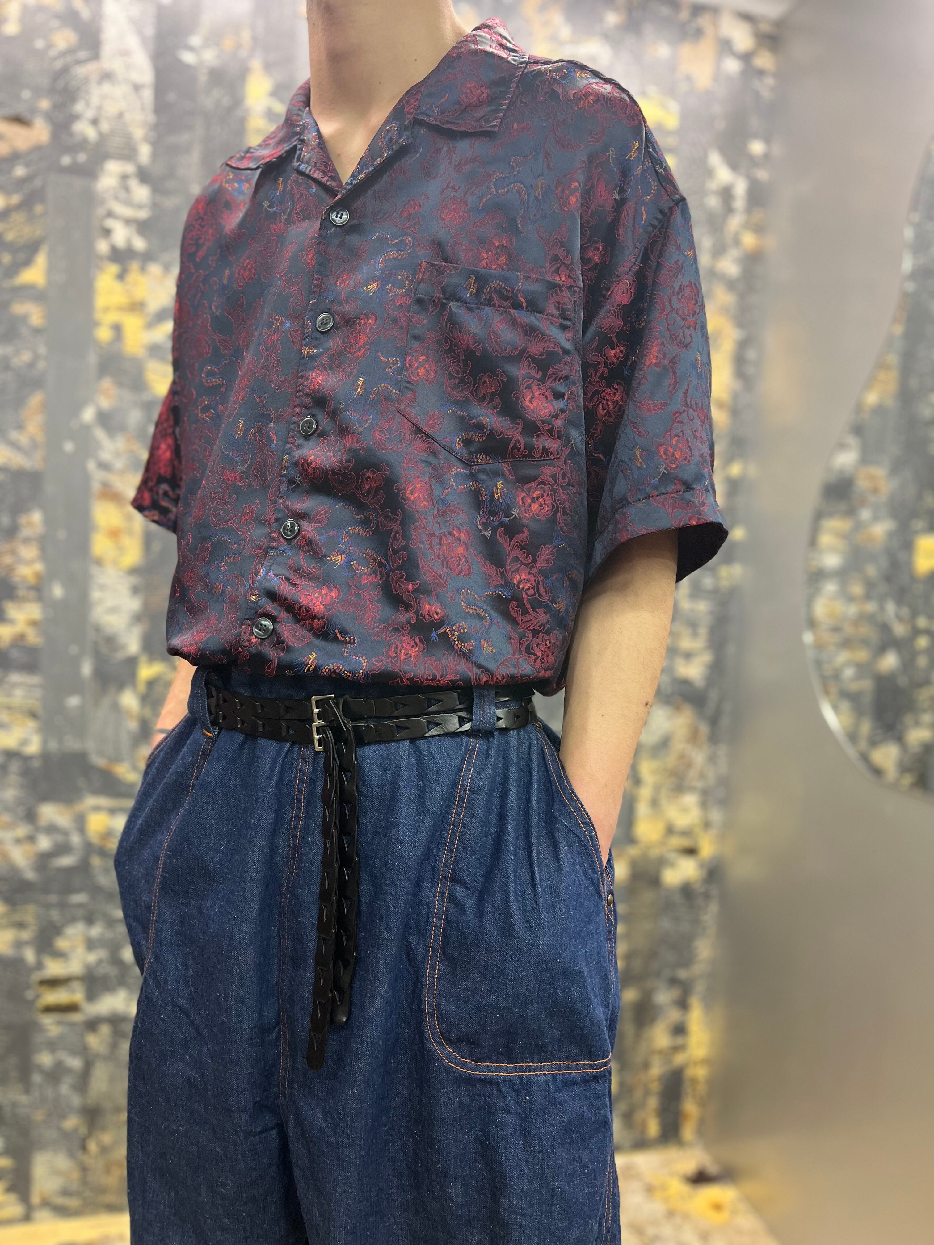 90s-00s ドラゴン刺繍シャツ 青