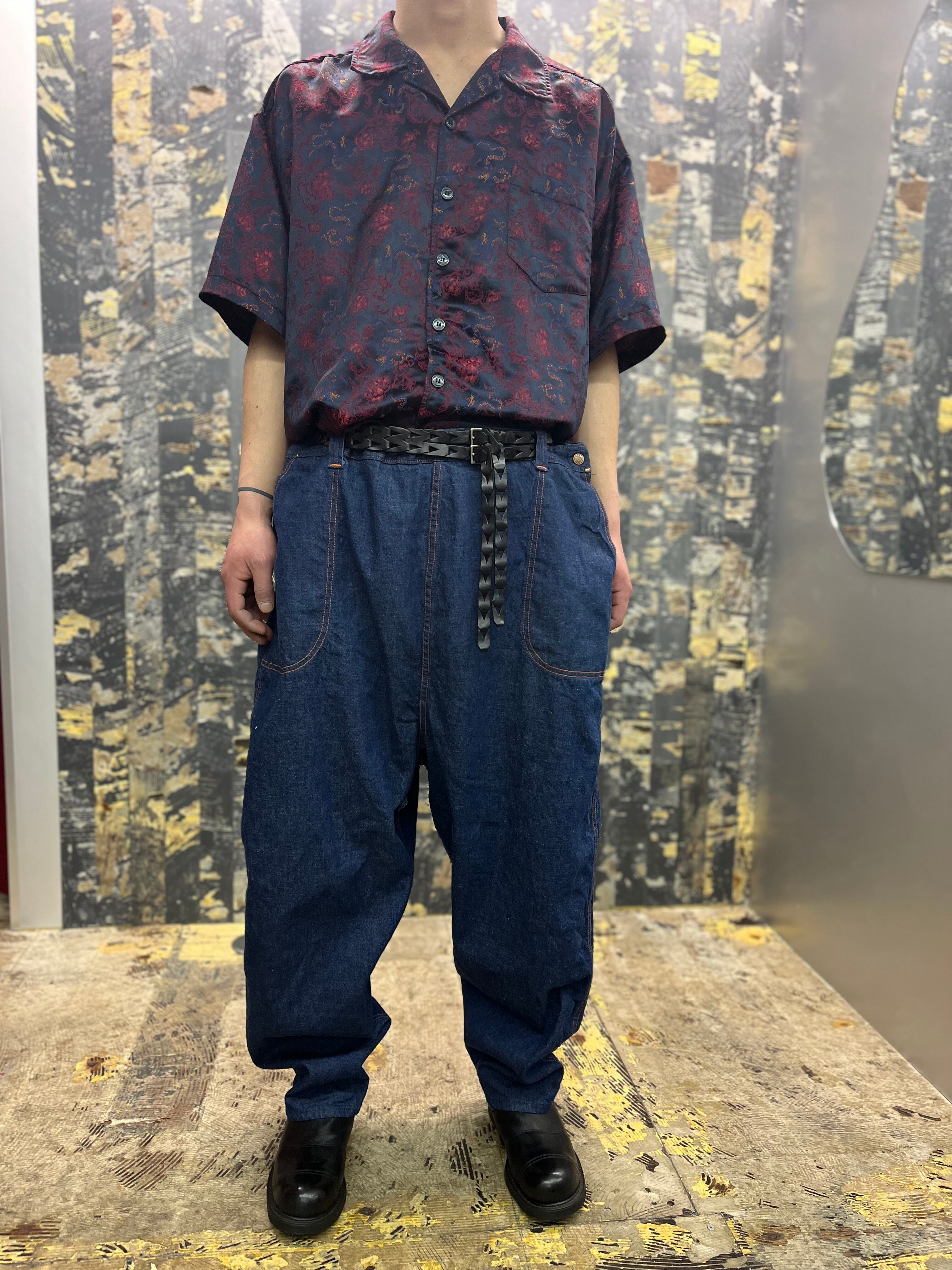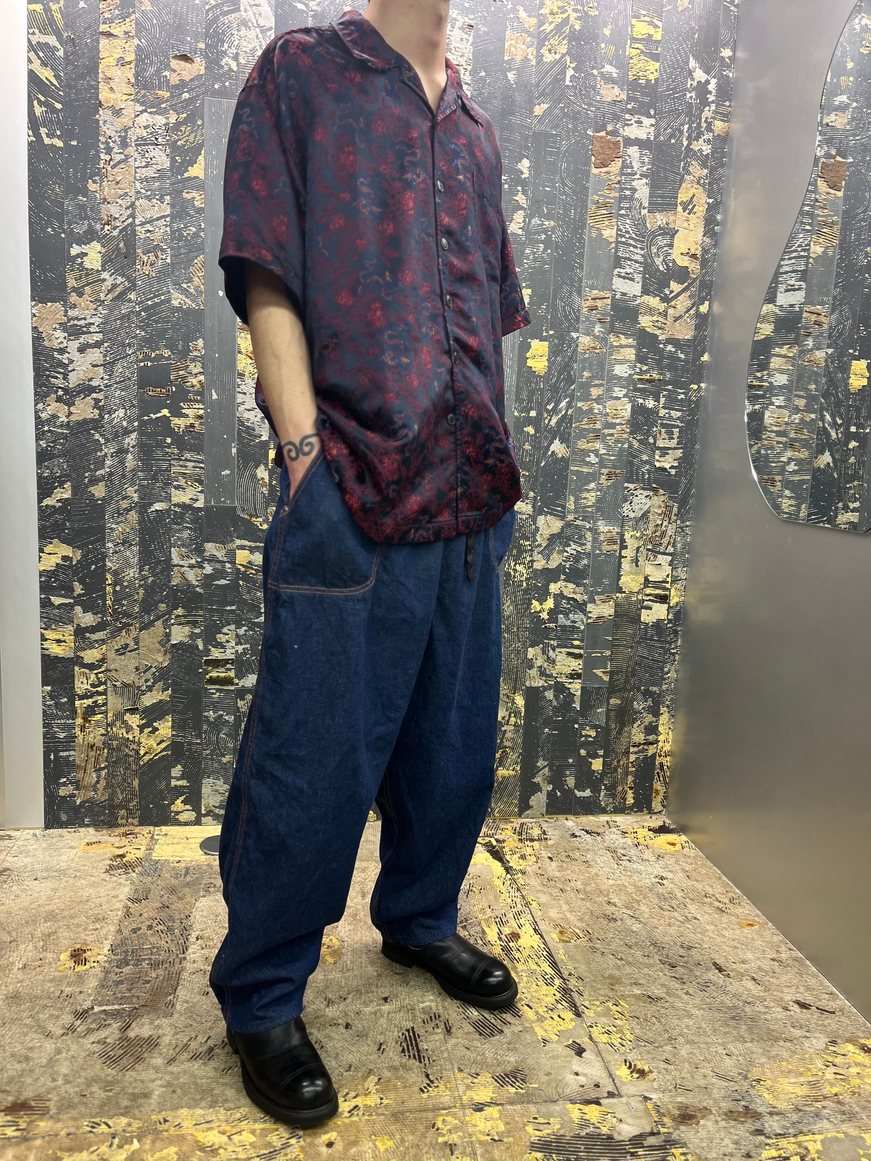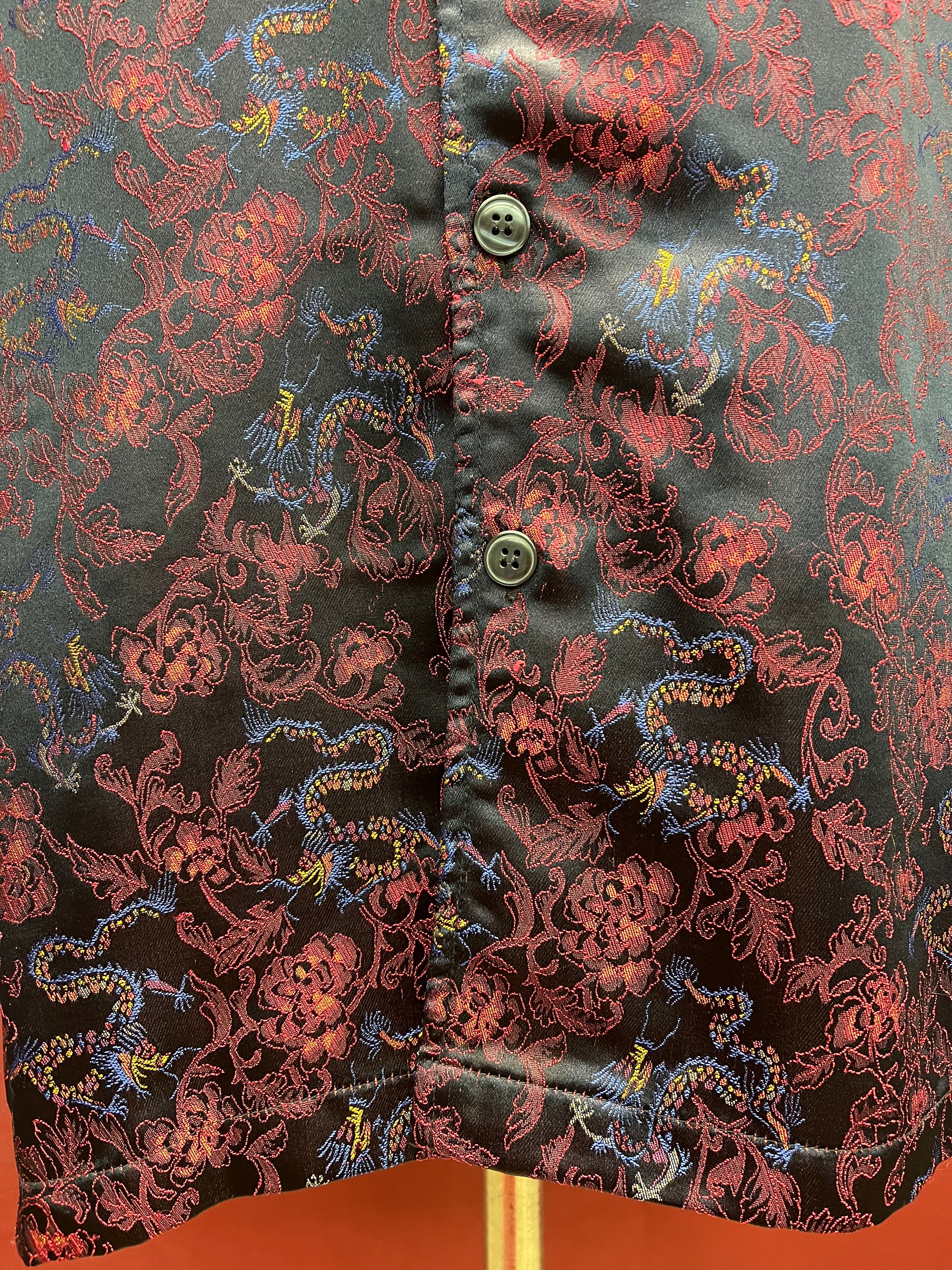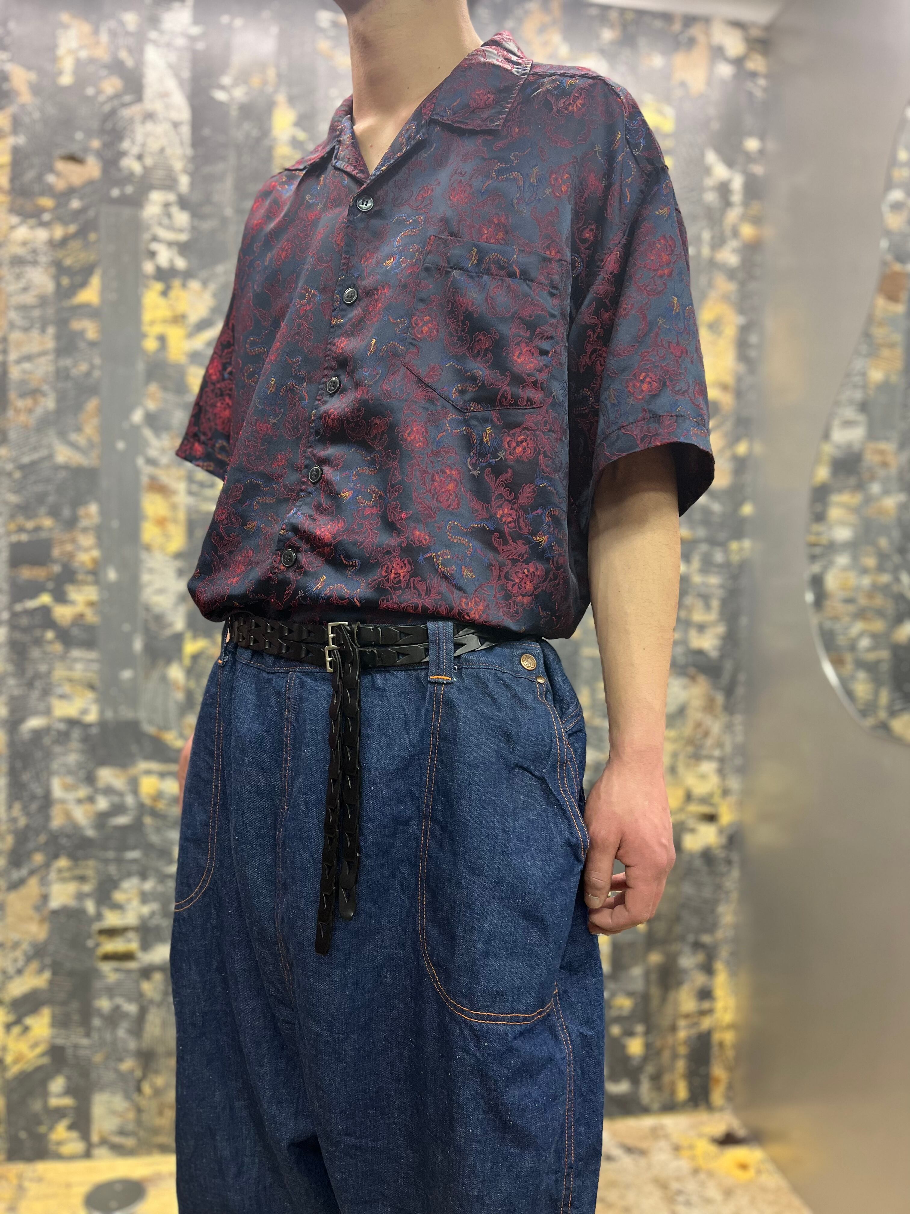 90s-00s ドラゴン刺繍シャツ 青