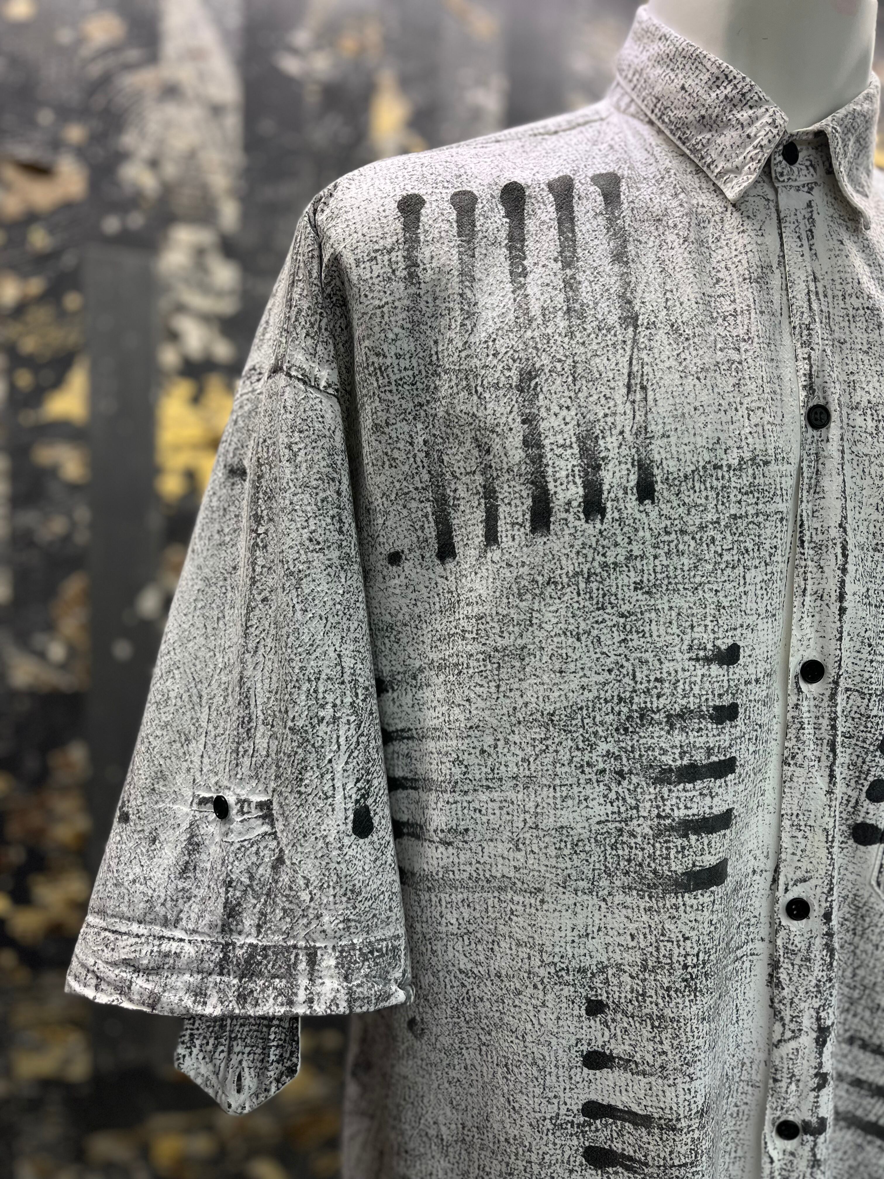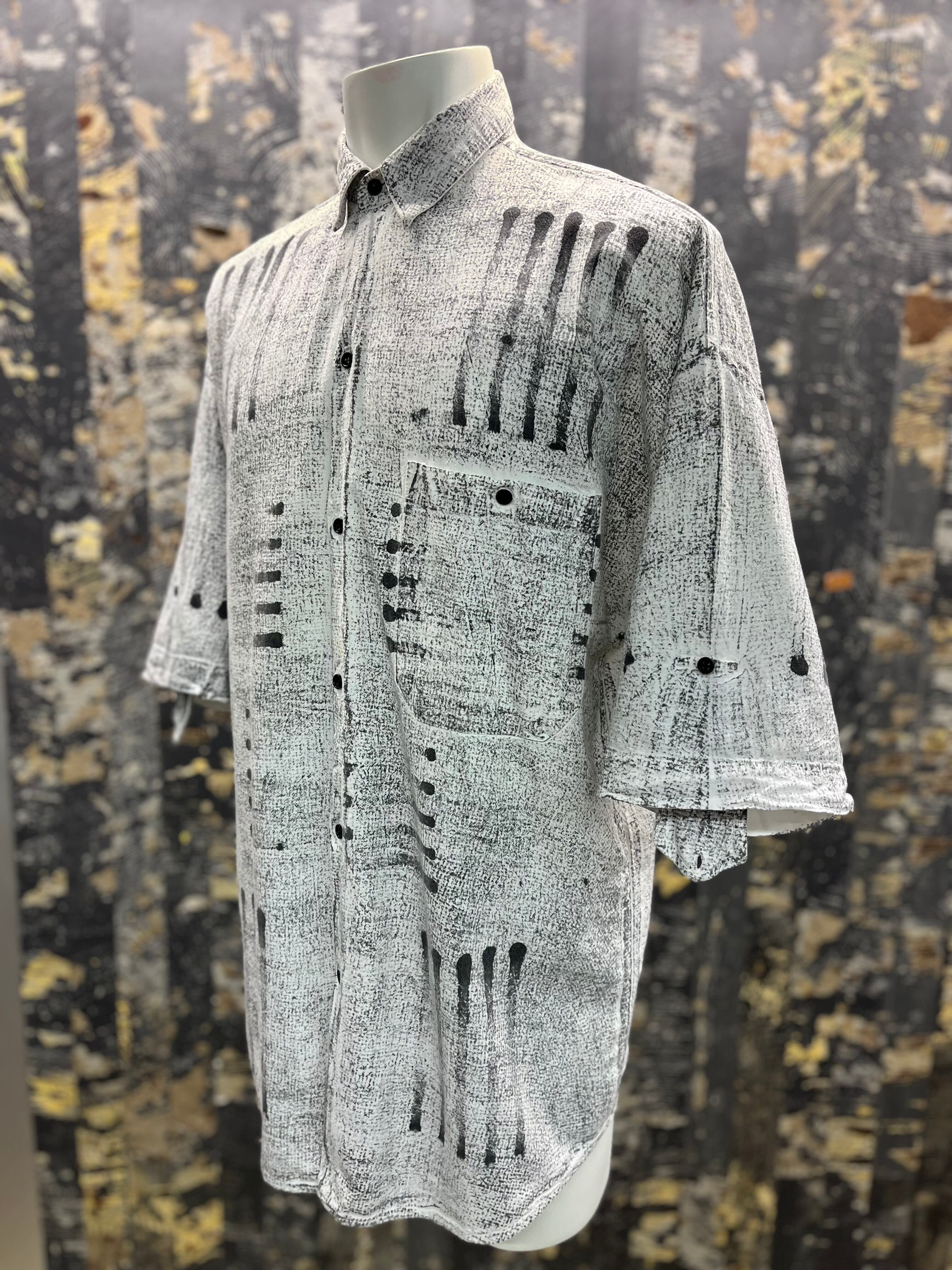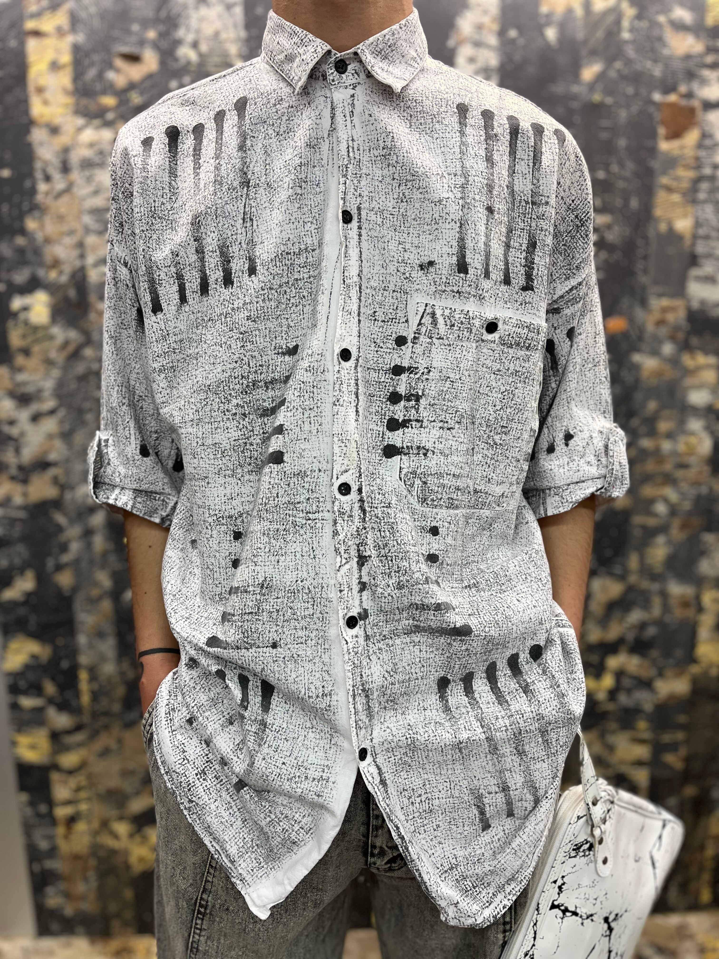 OLD 80s-90s モノトーン全プリントコットンシャツ