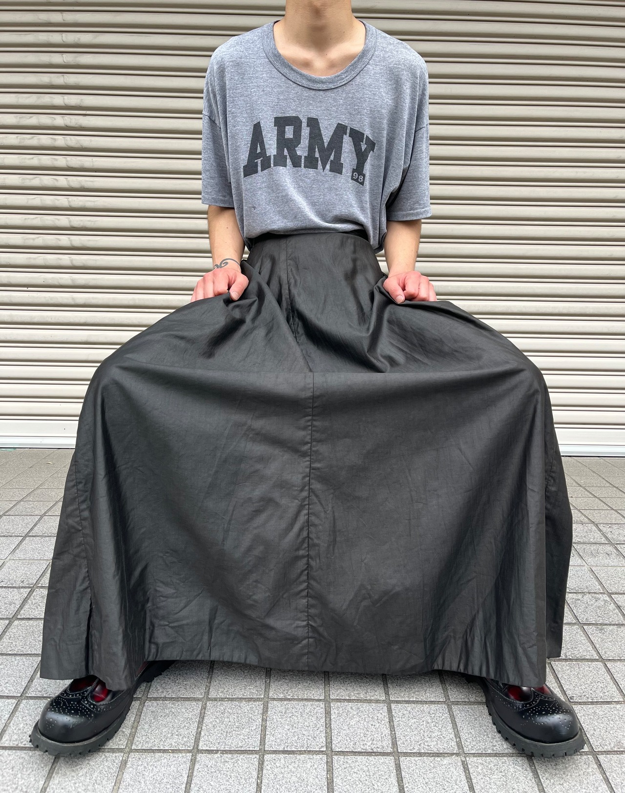マキシ丈で充分に使った生地のボリューム最高ですね。