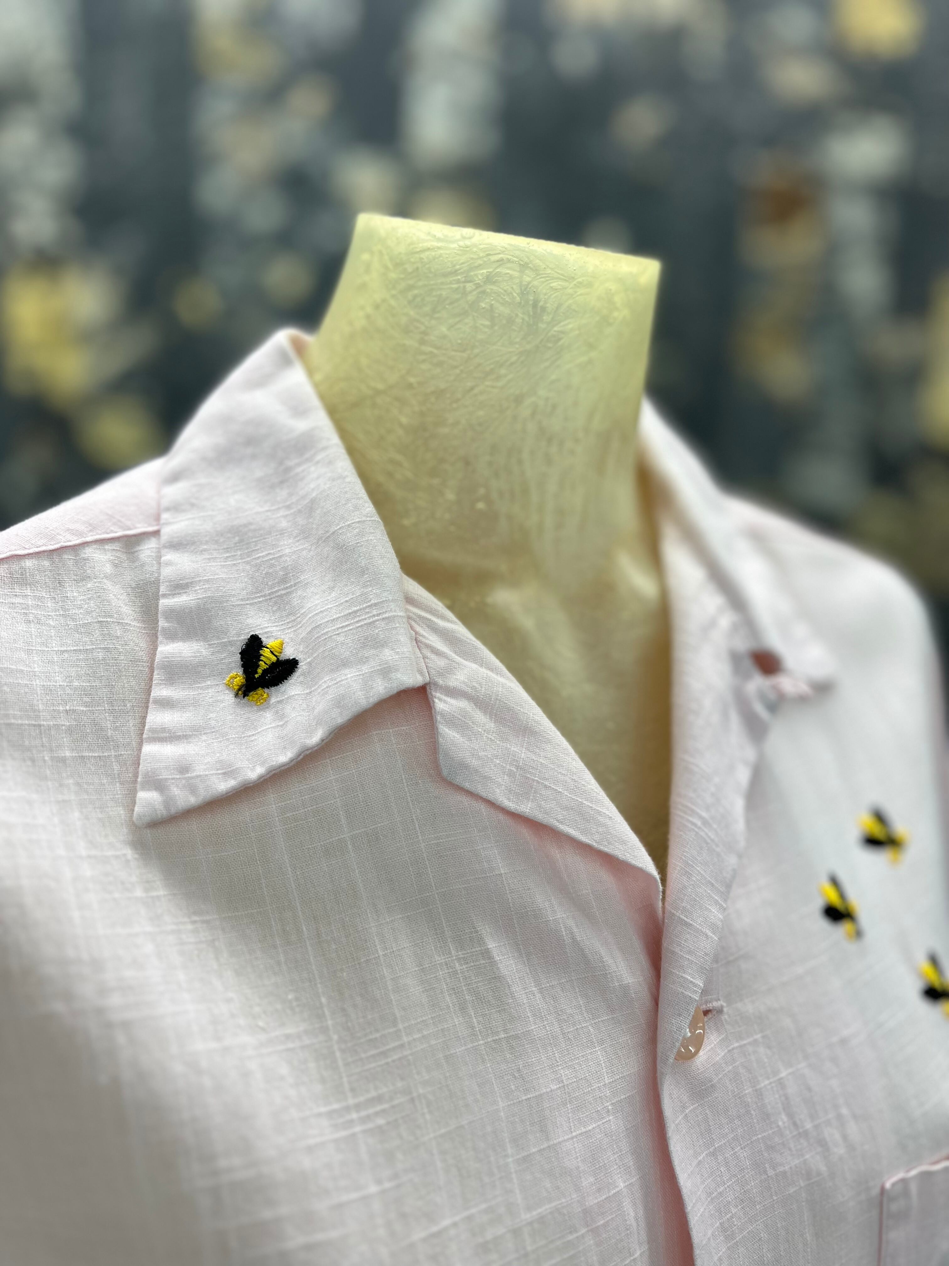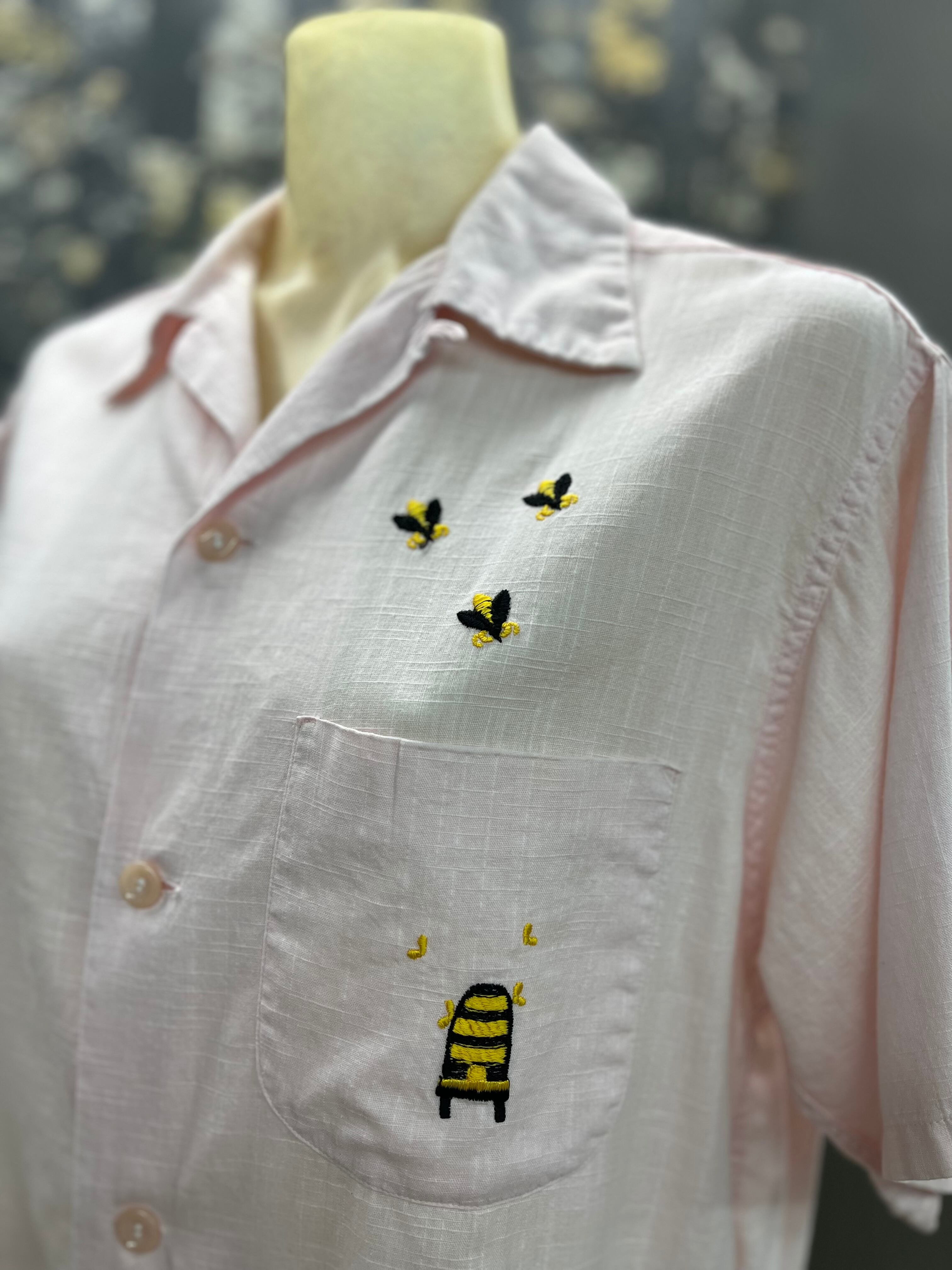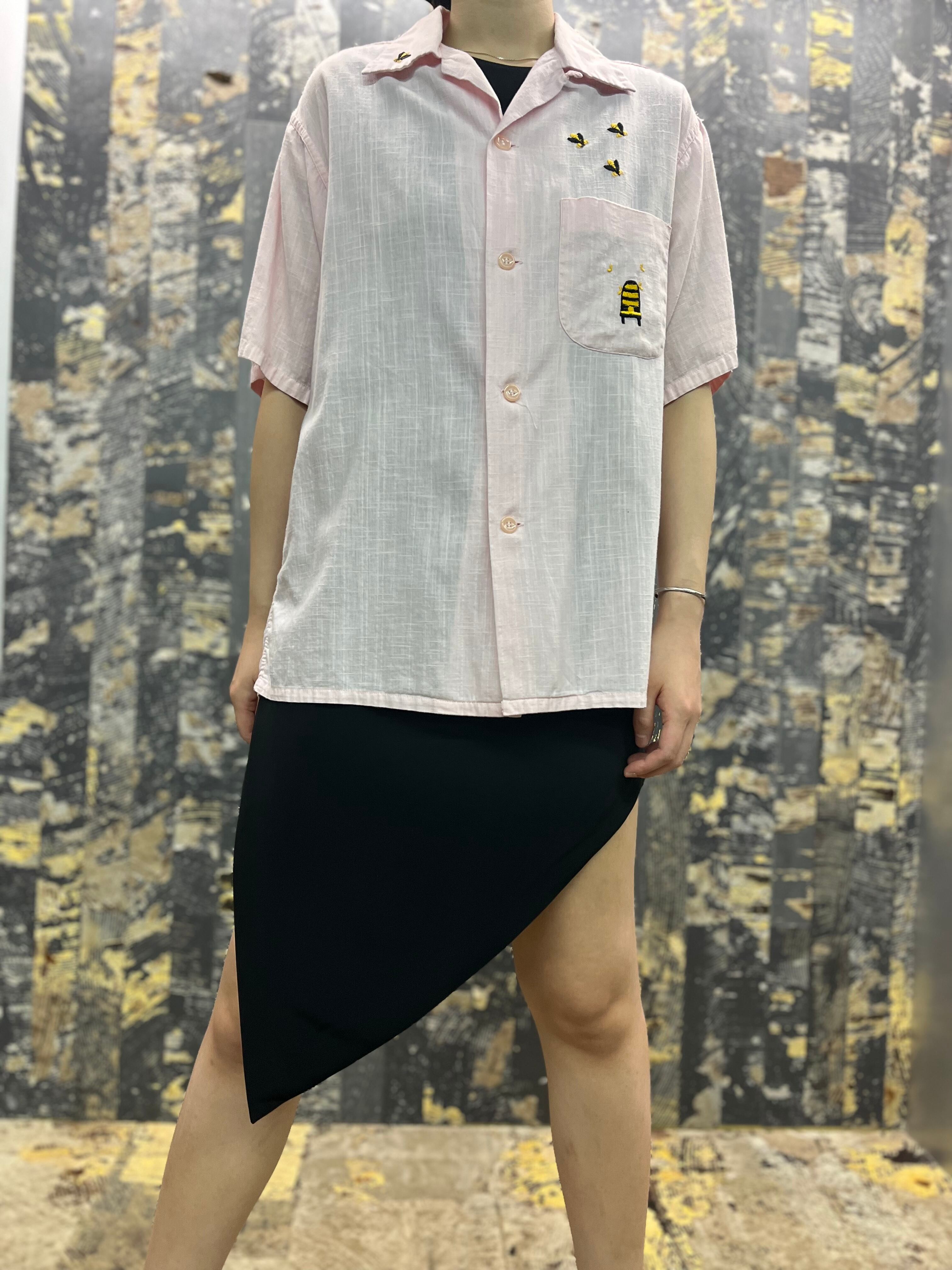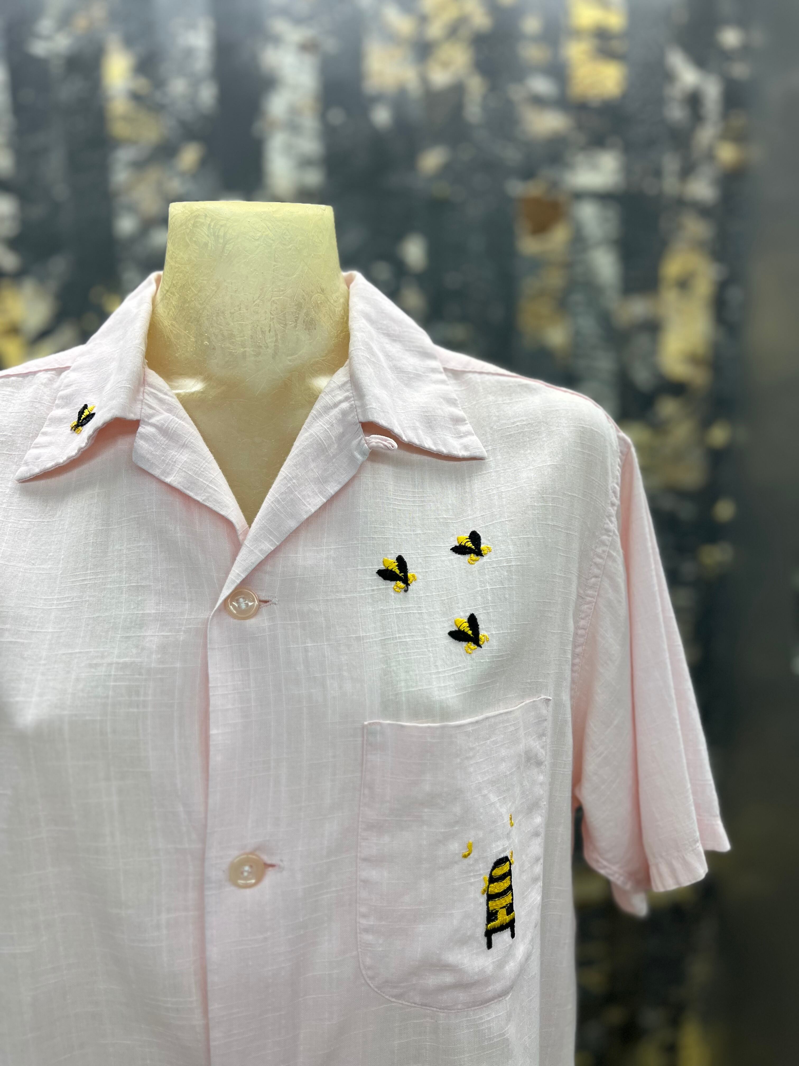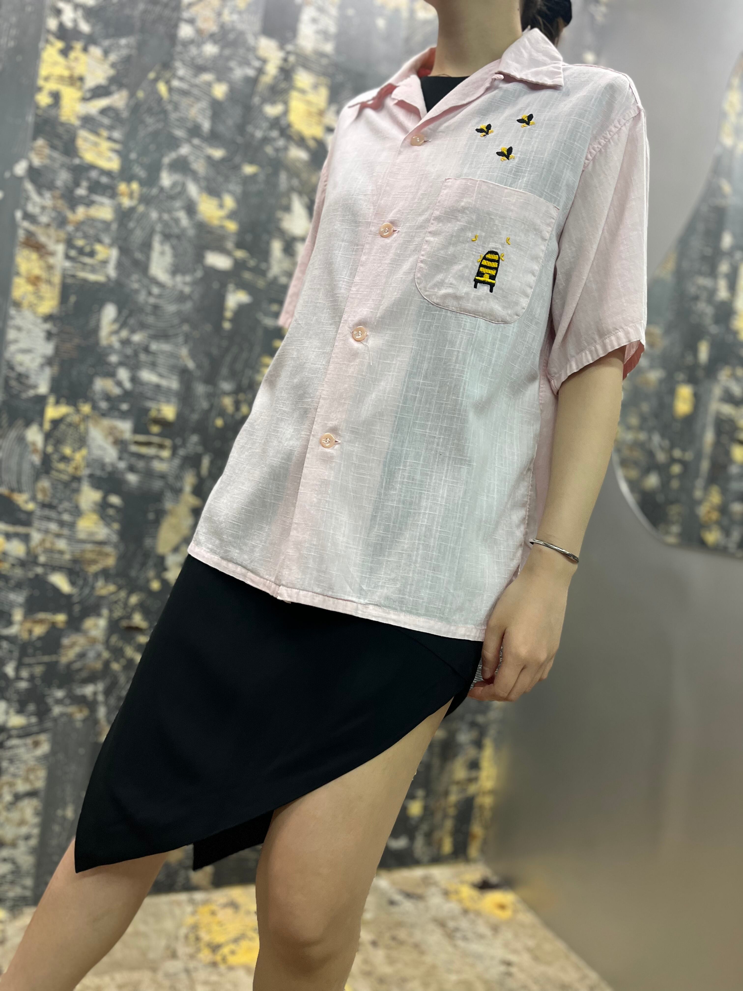 〜60s 開襟シャツ 薄ピンクに蜂の刺繍がかわいすぎる