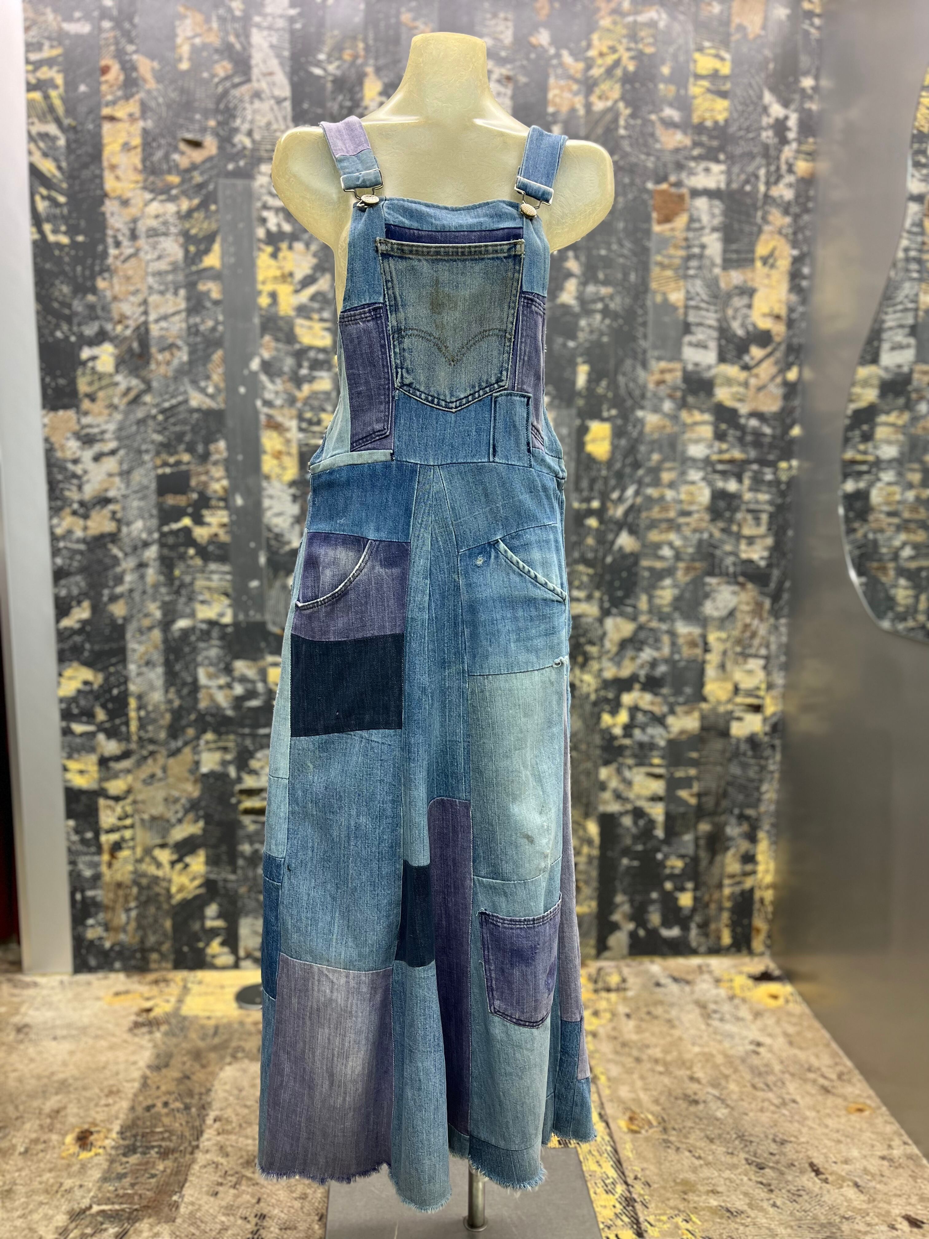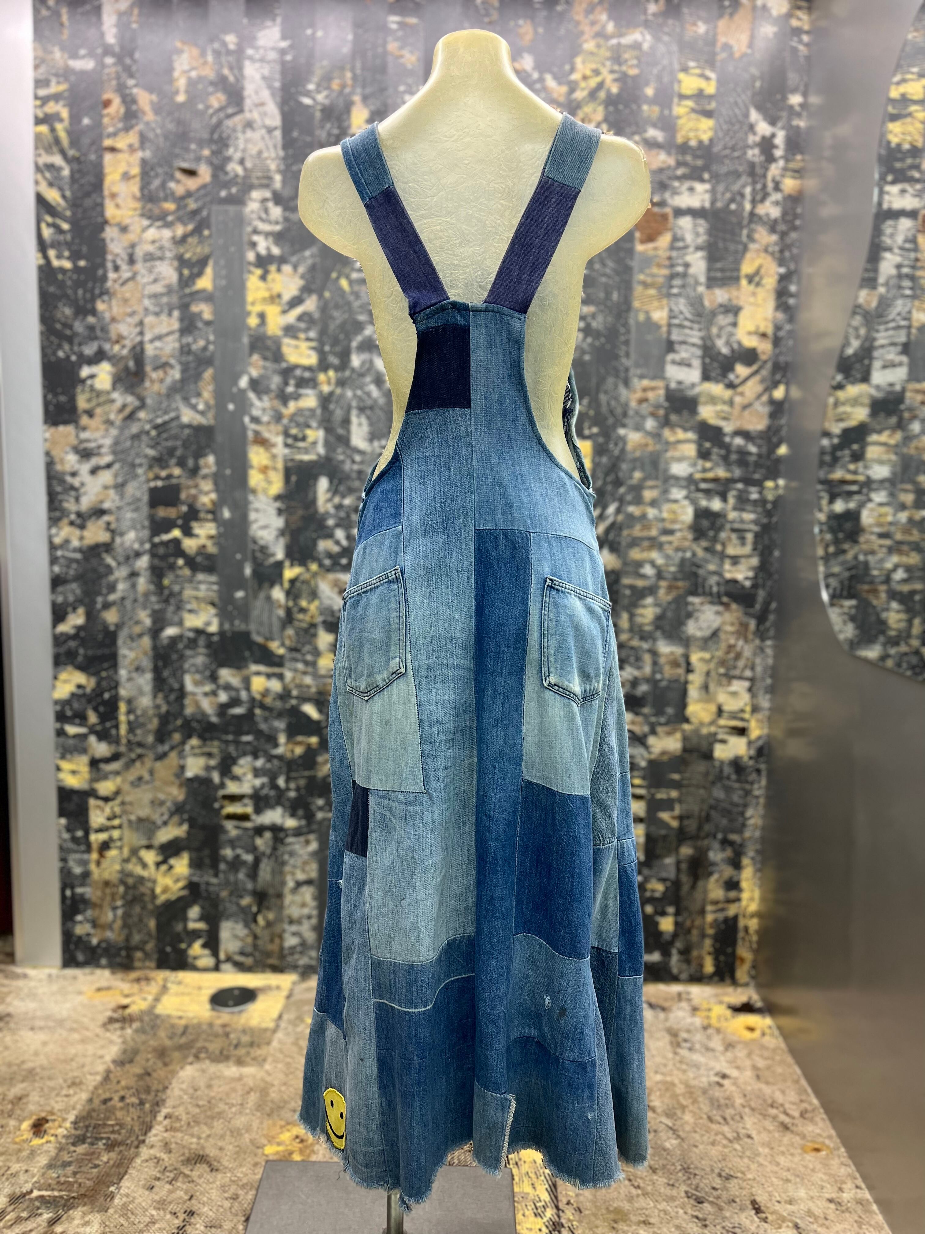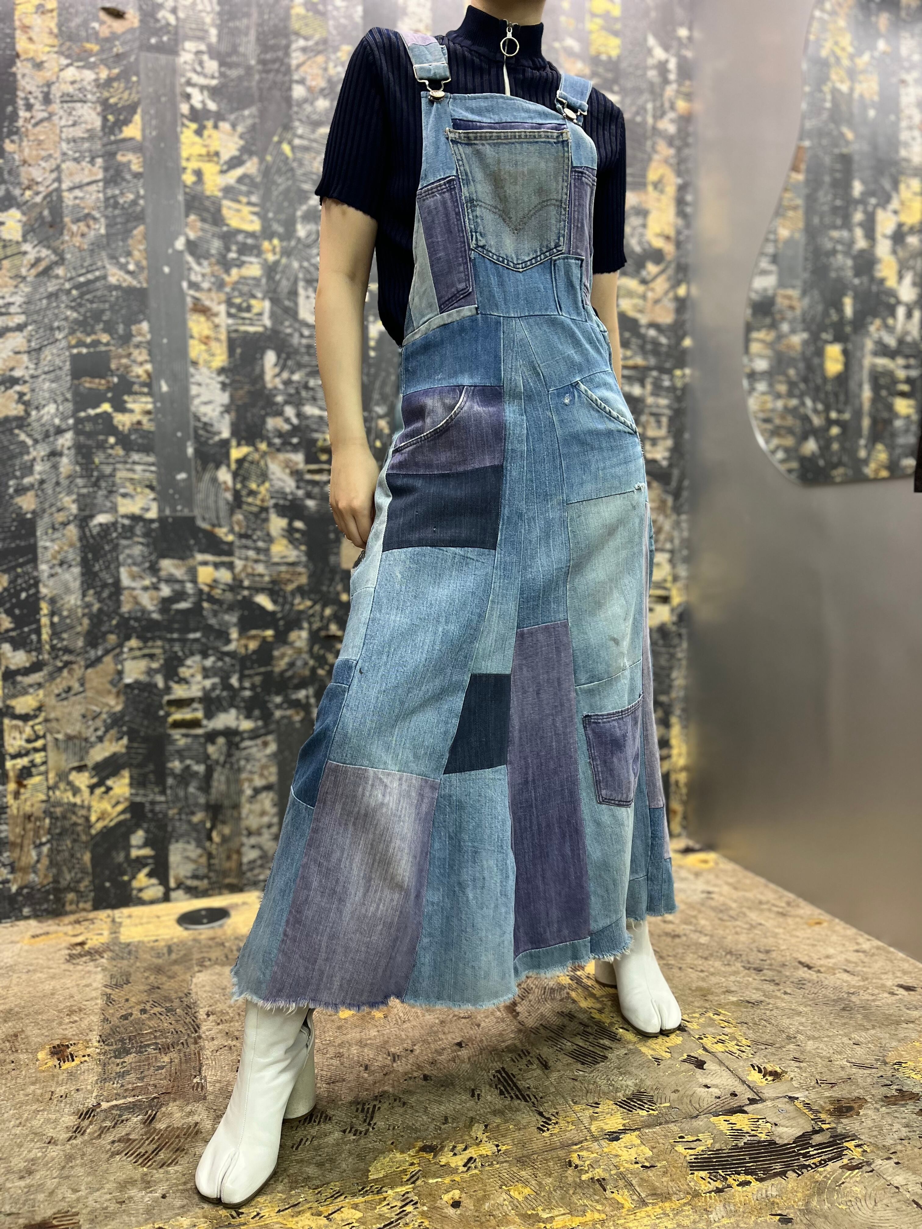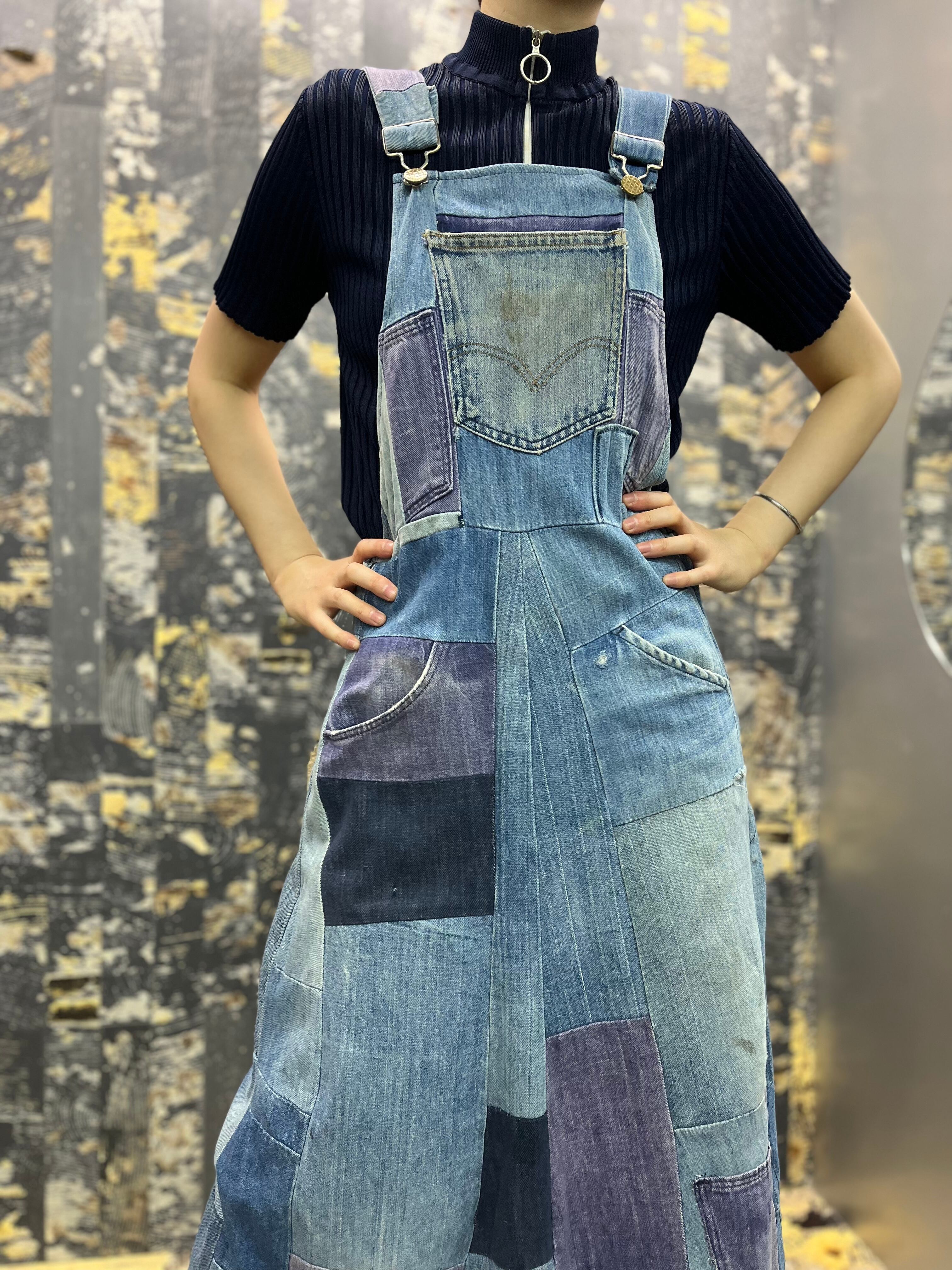OLD デニムパッチワークオーバーオールスカート