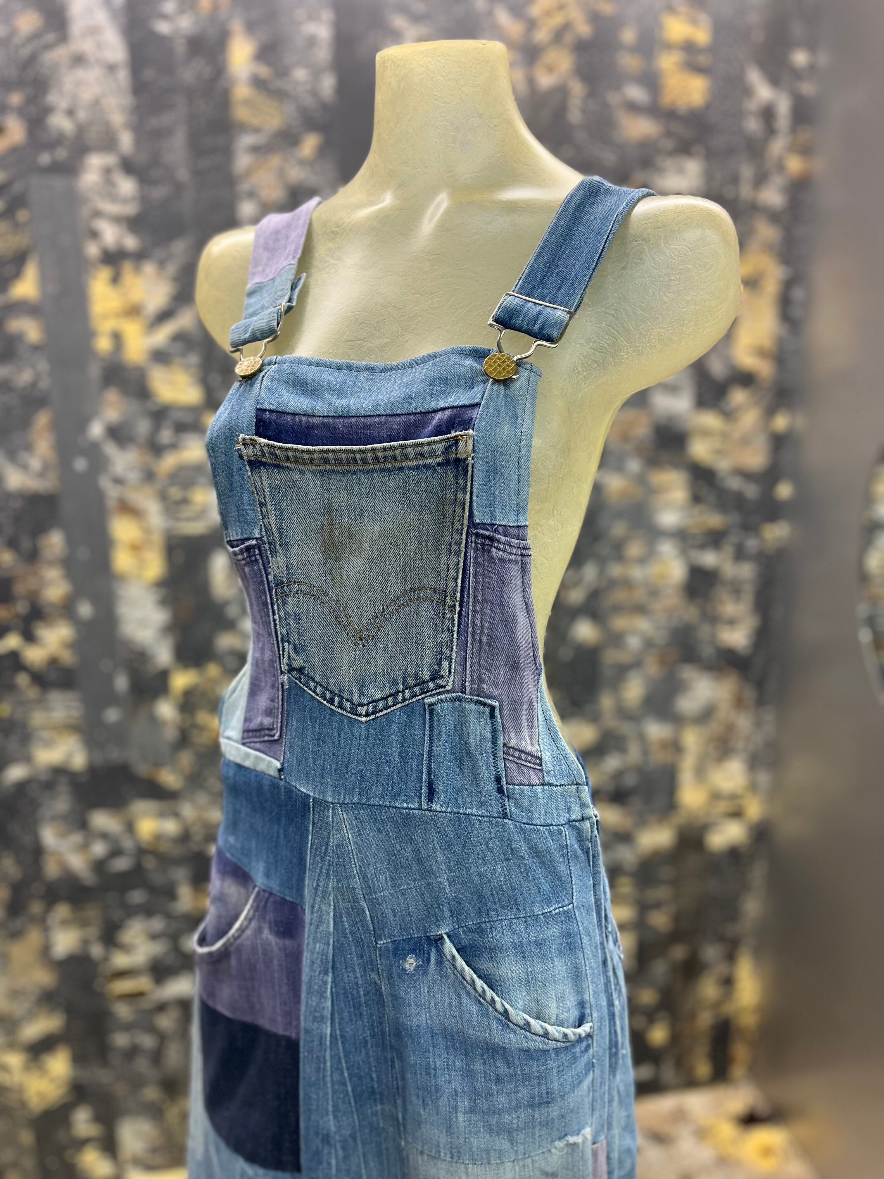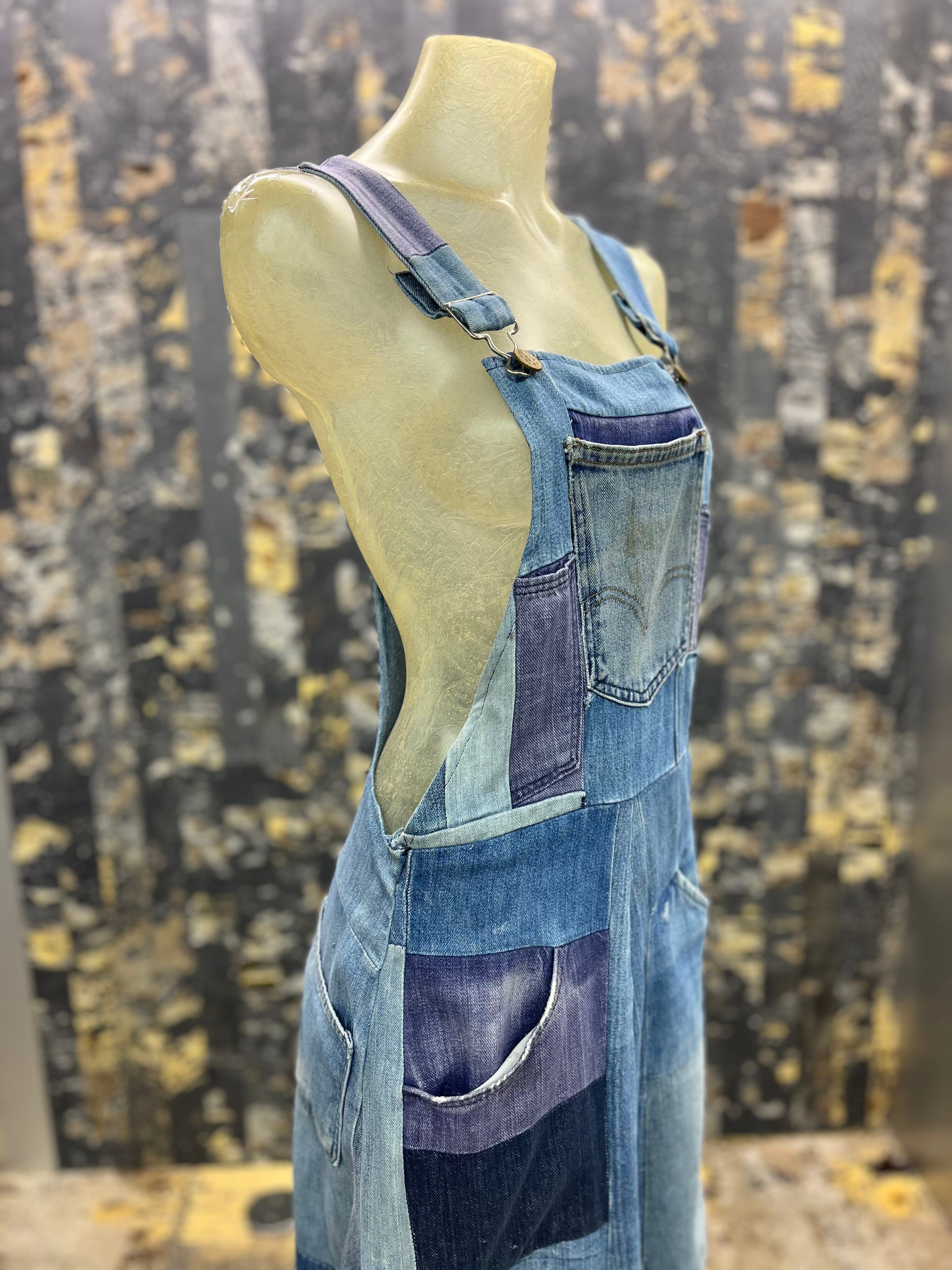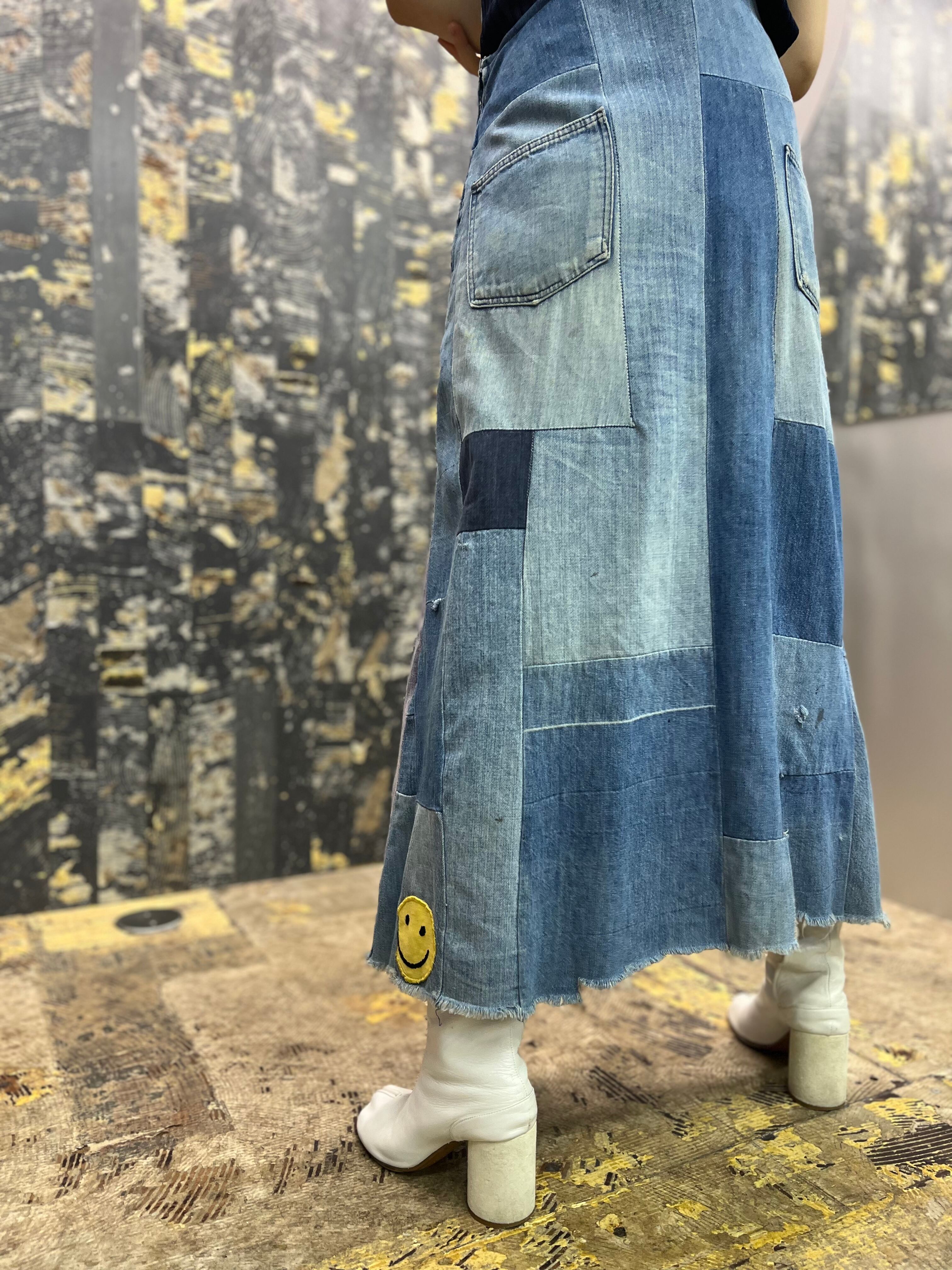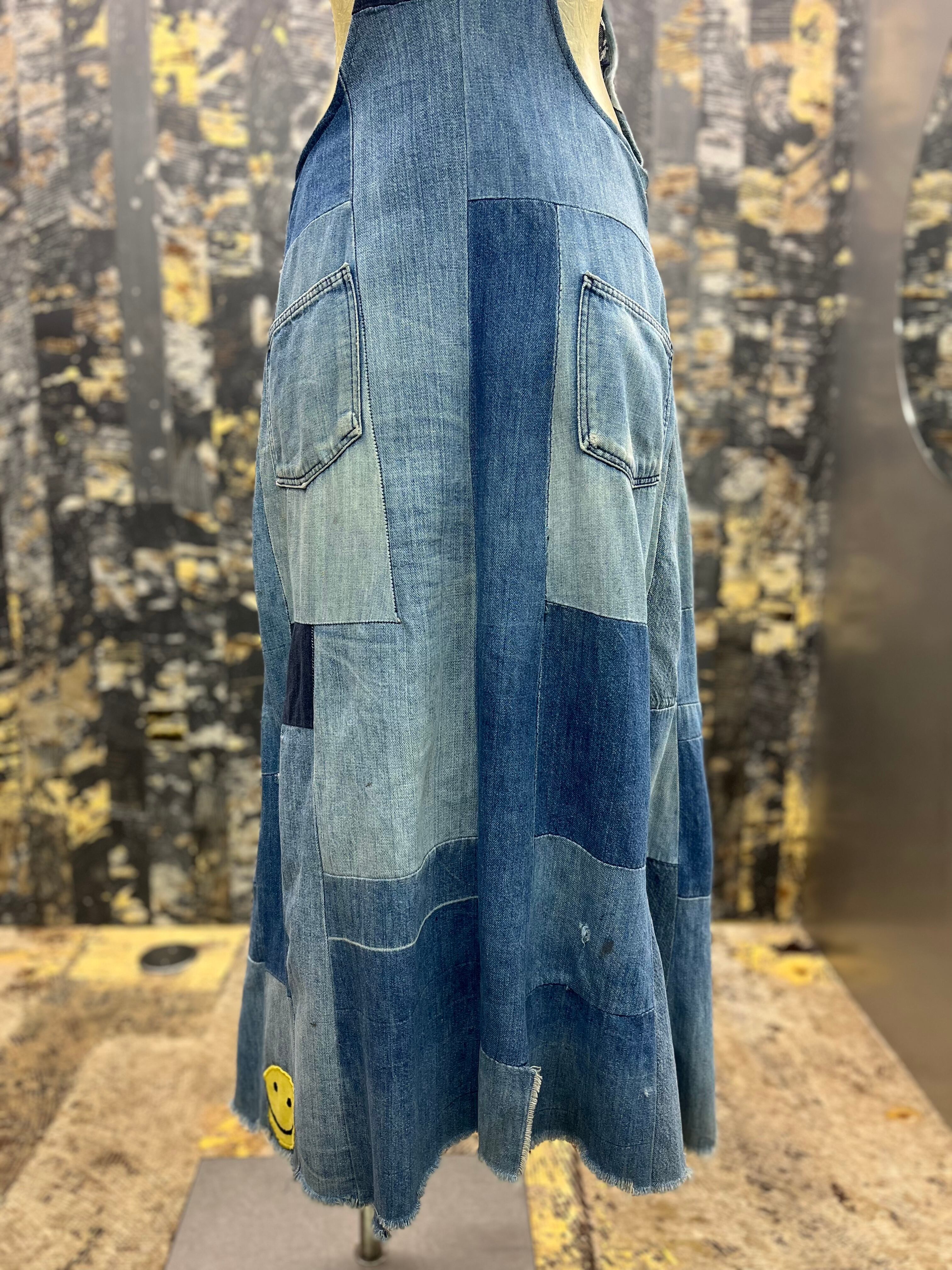 OLD デニムパッチワークオーバーオールスカート