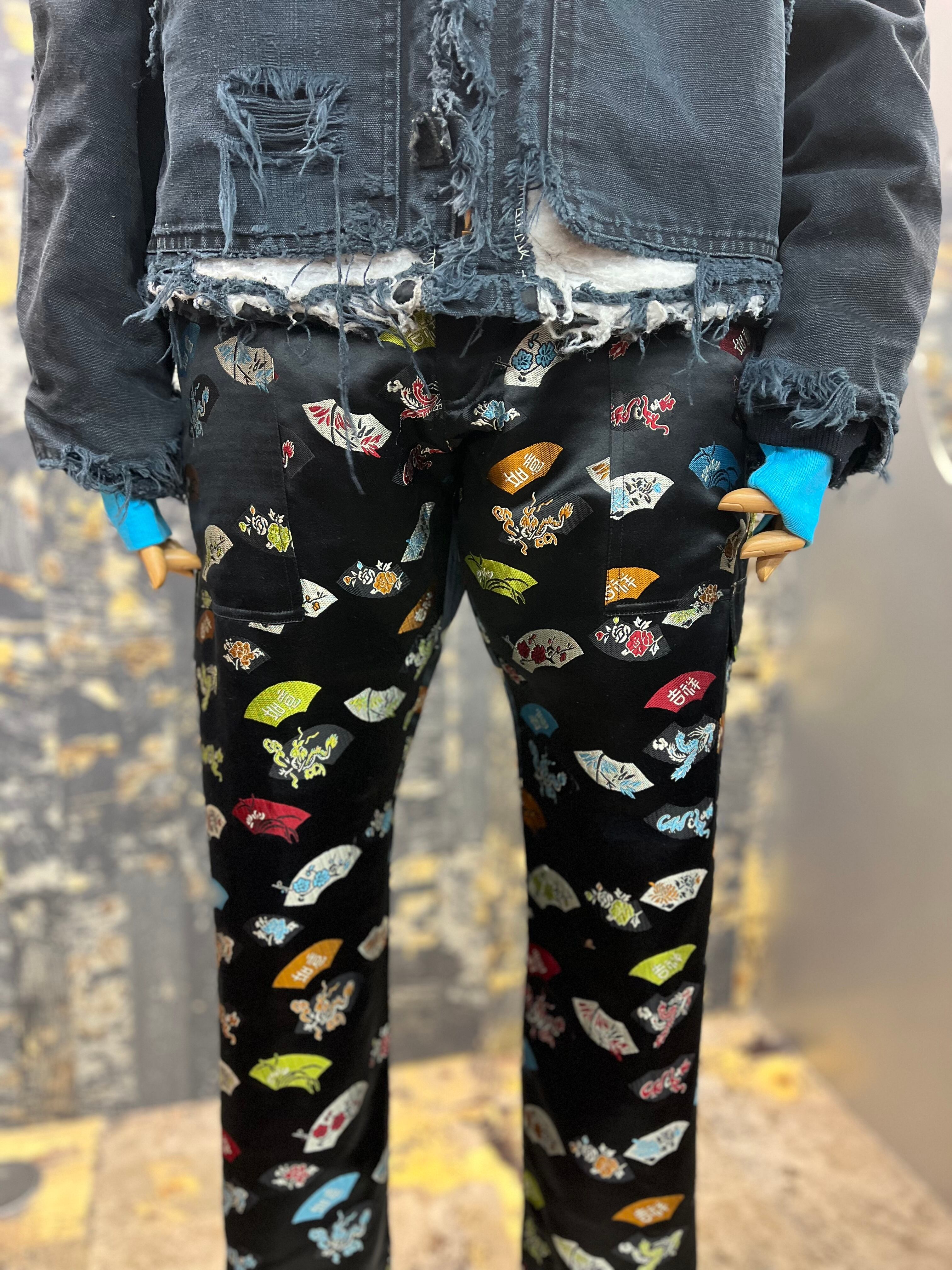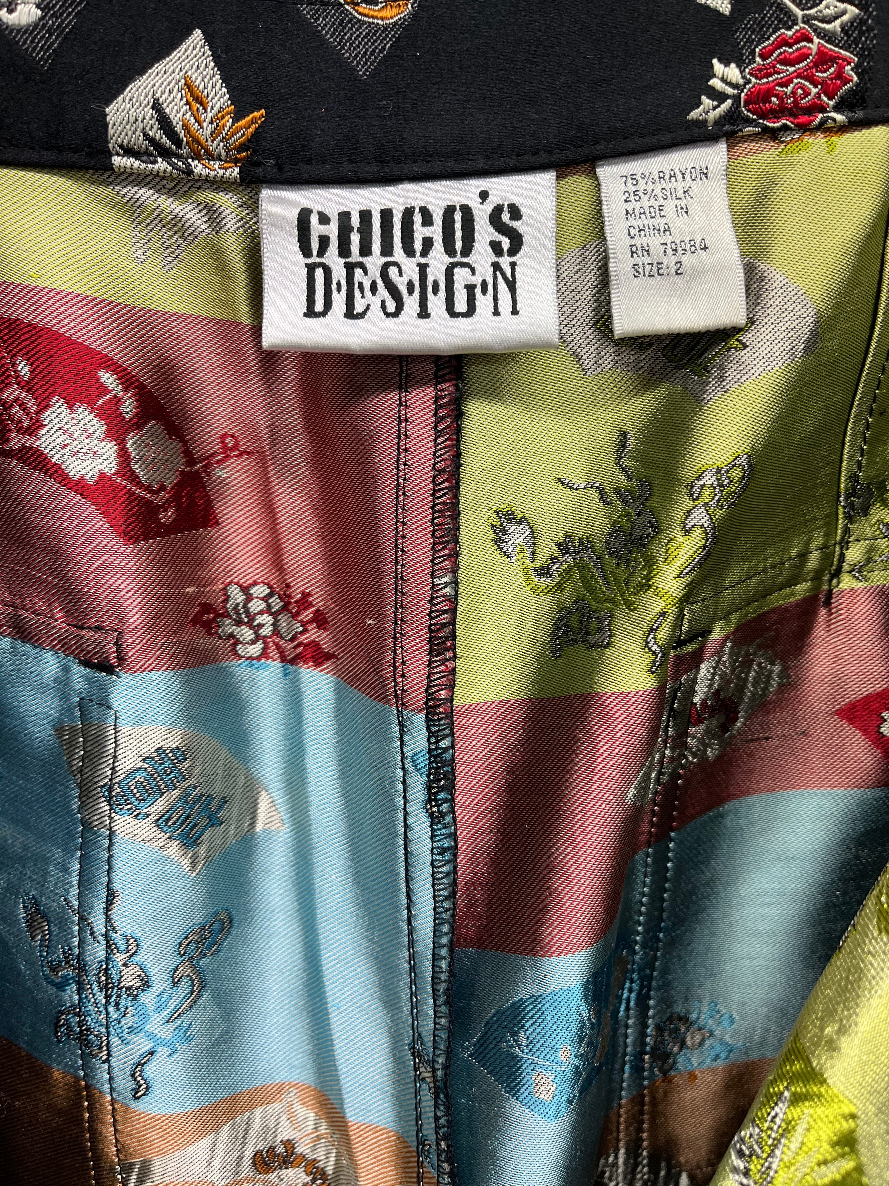 CHICO'S DESIGN 刺繍 レーヨンシルク パンツ