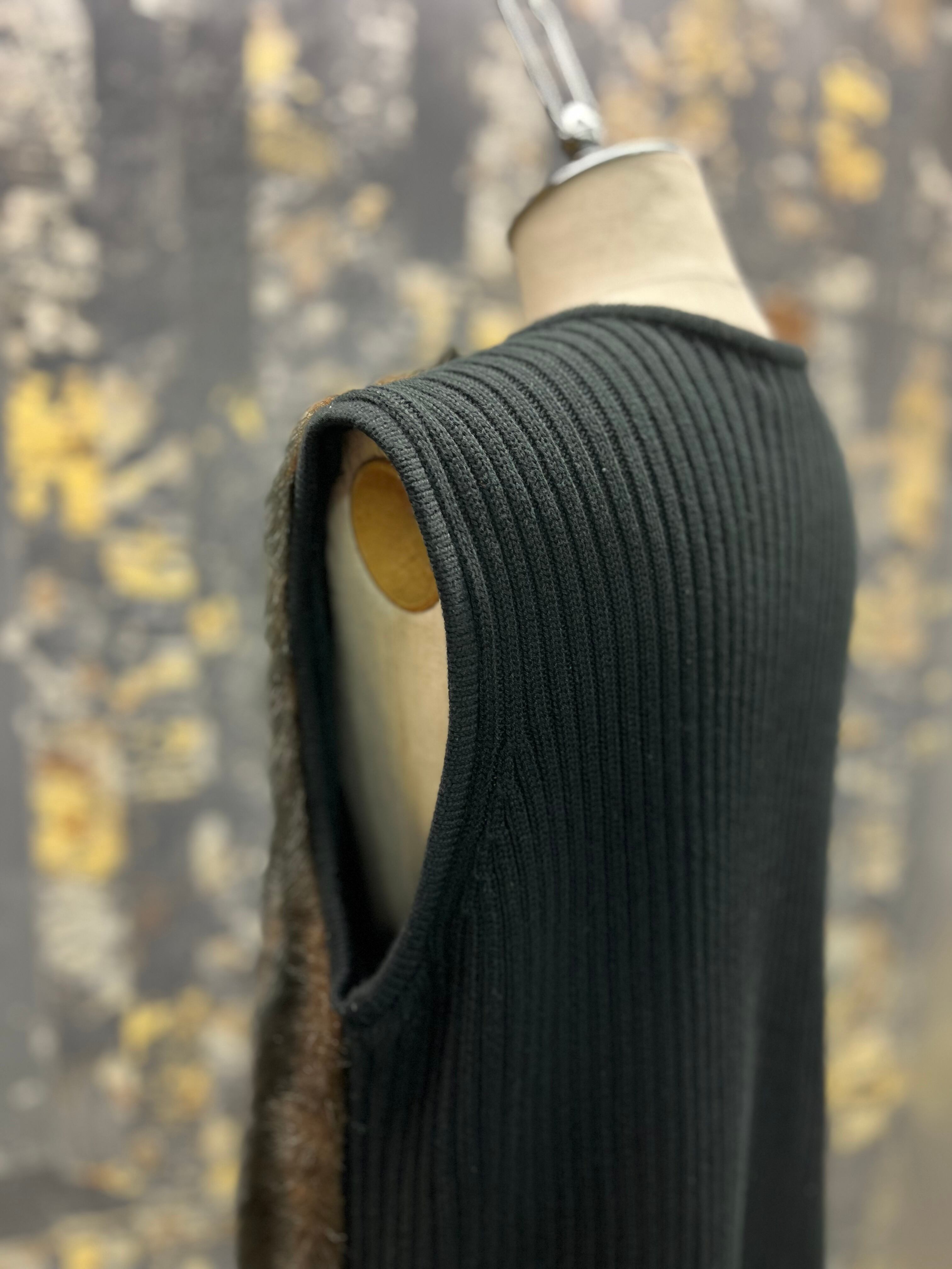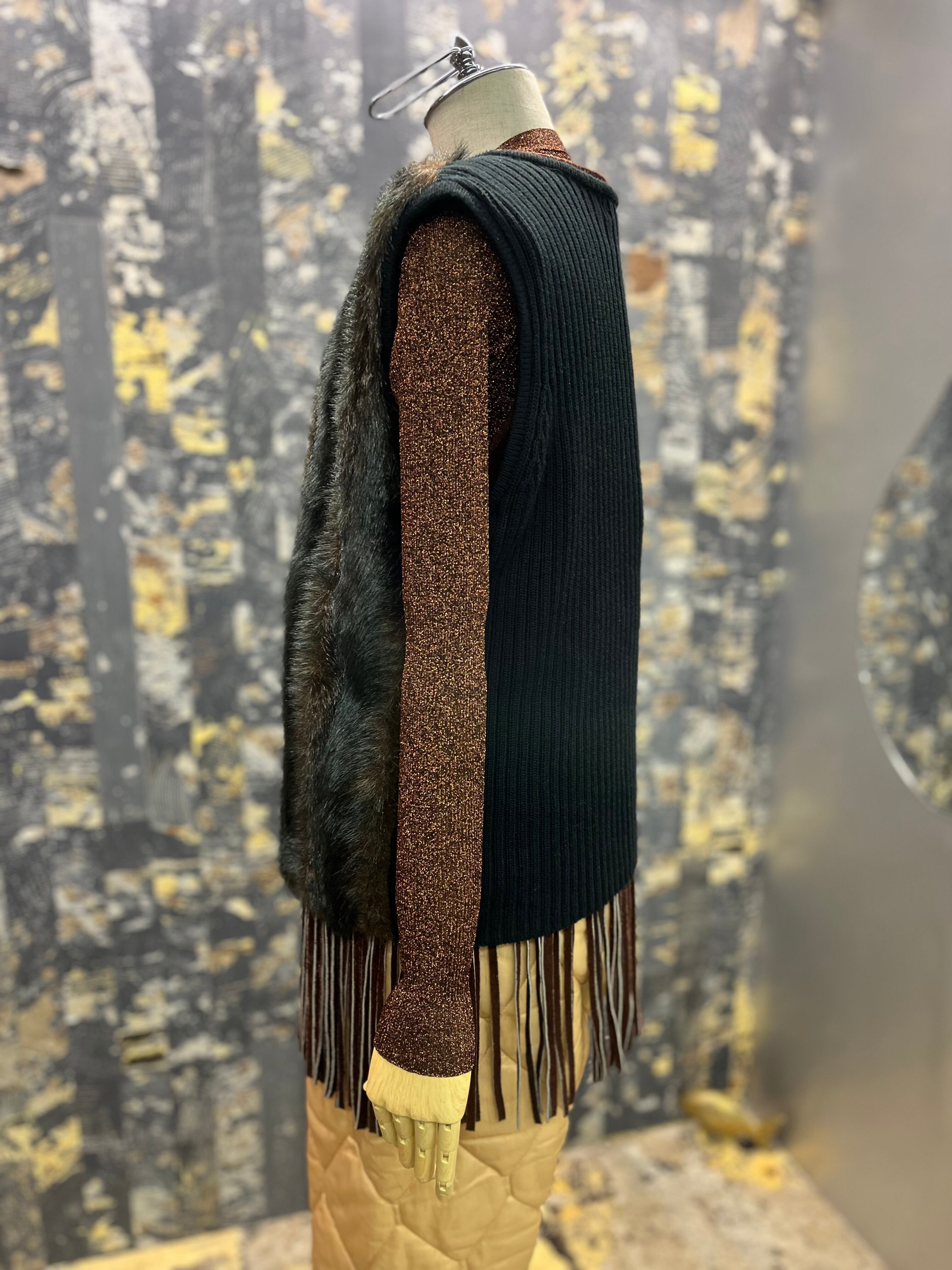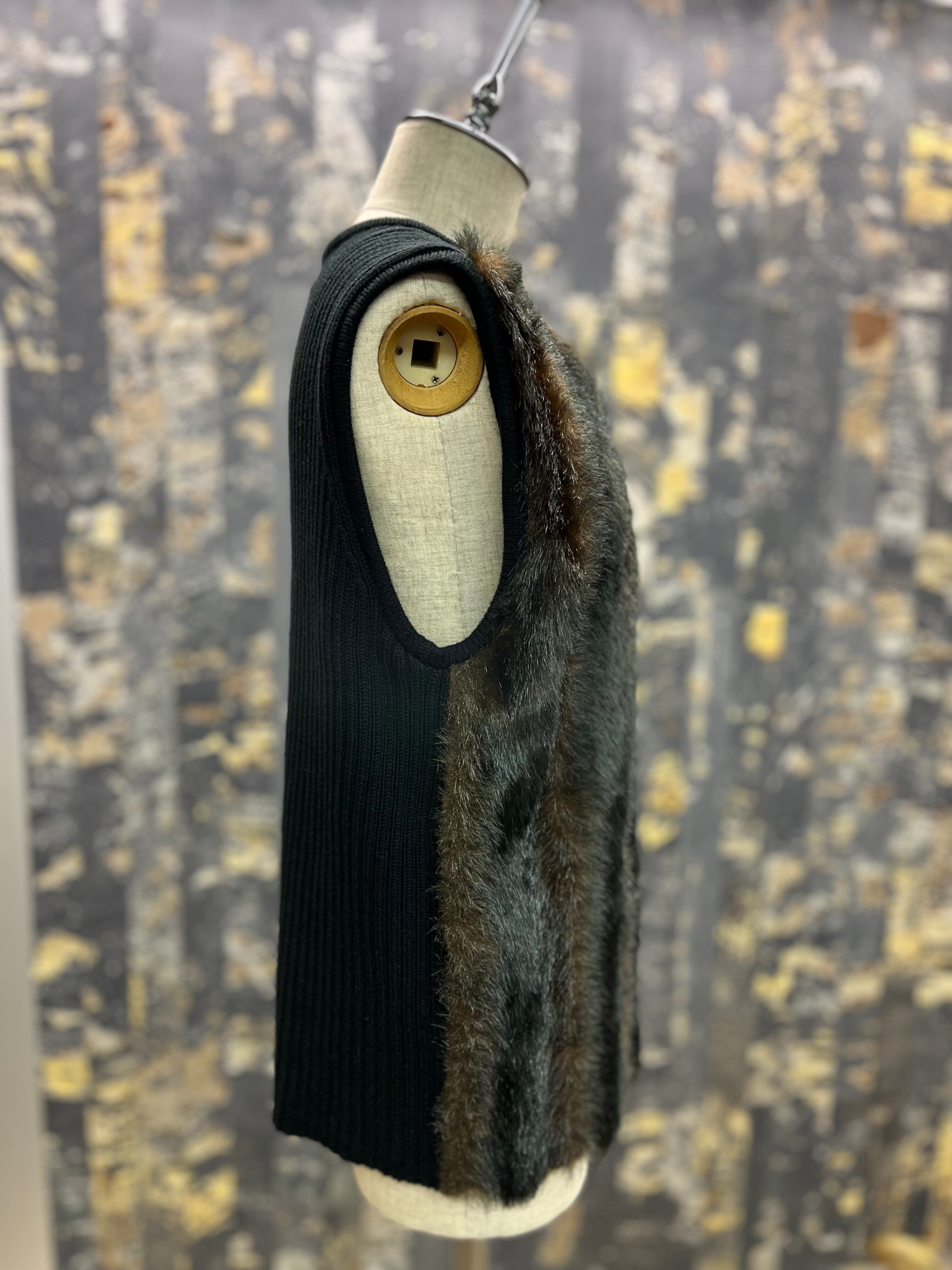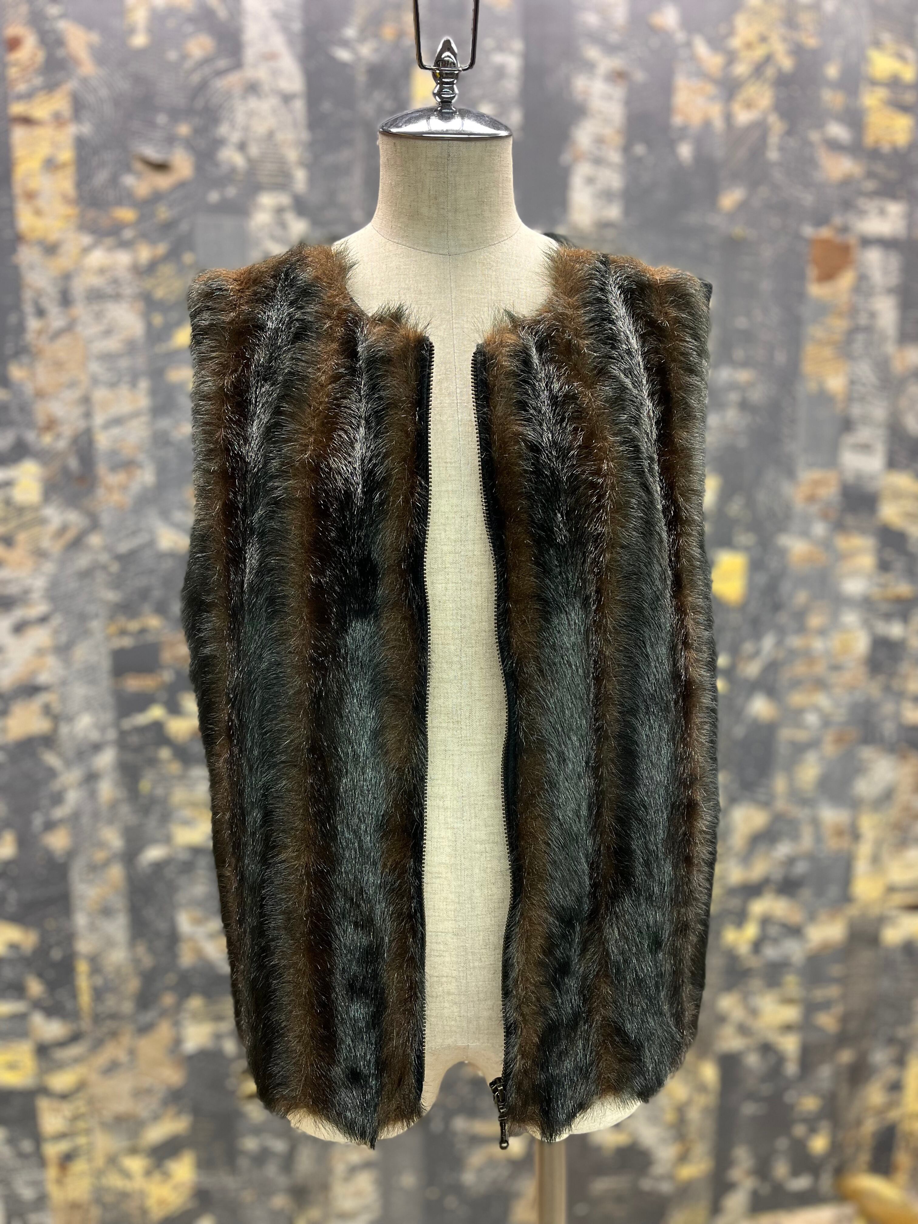 襟無しの前見頃フェイクファーベスト。