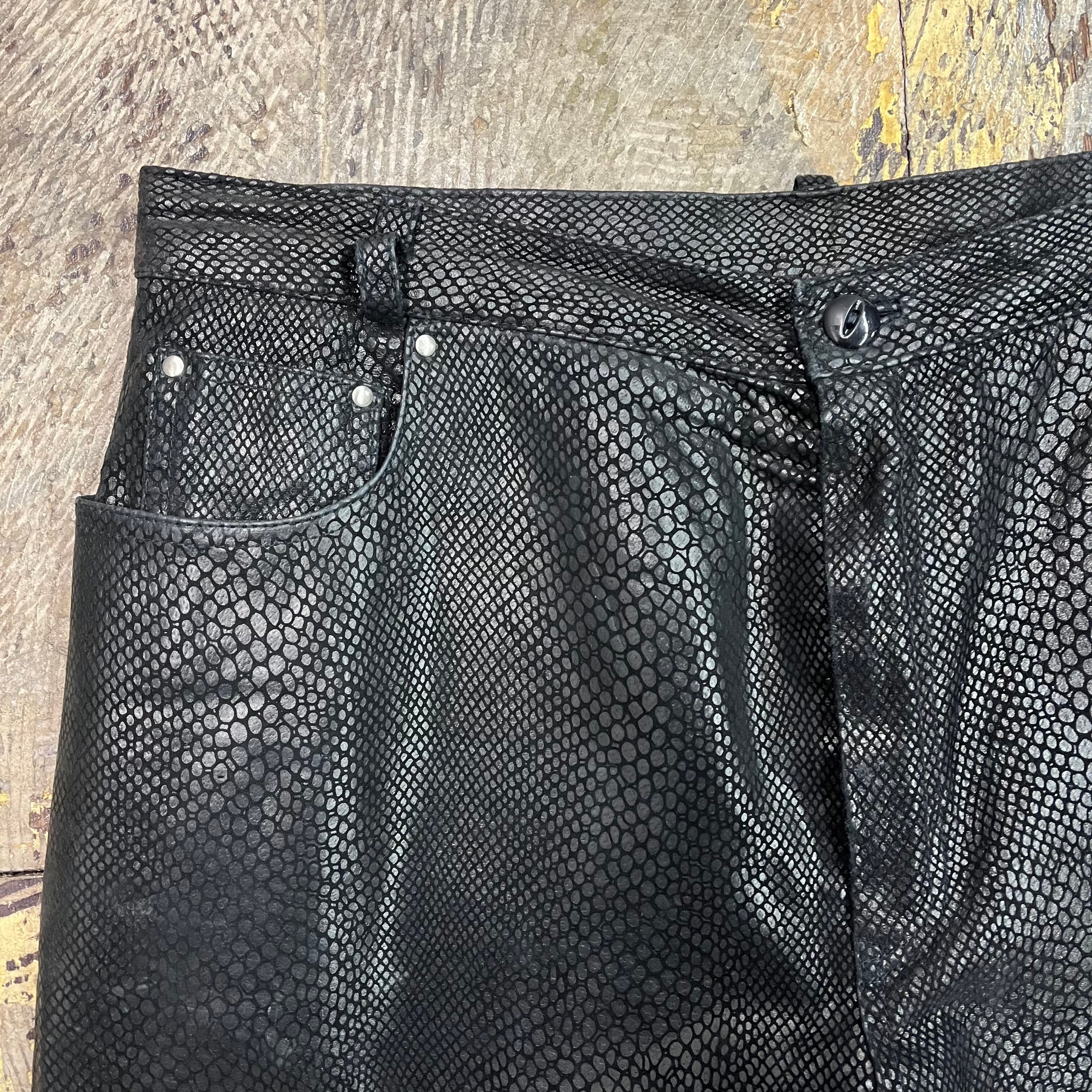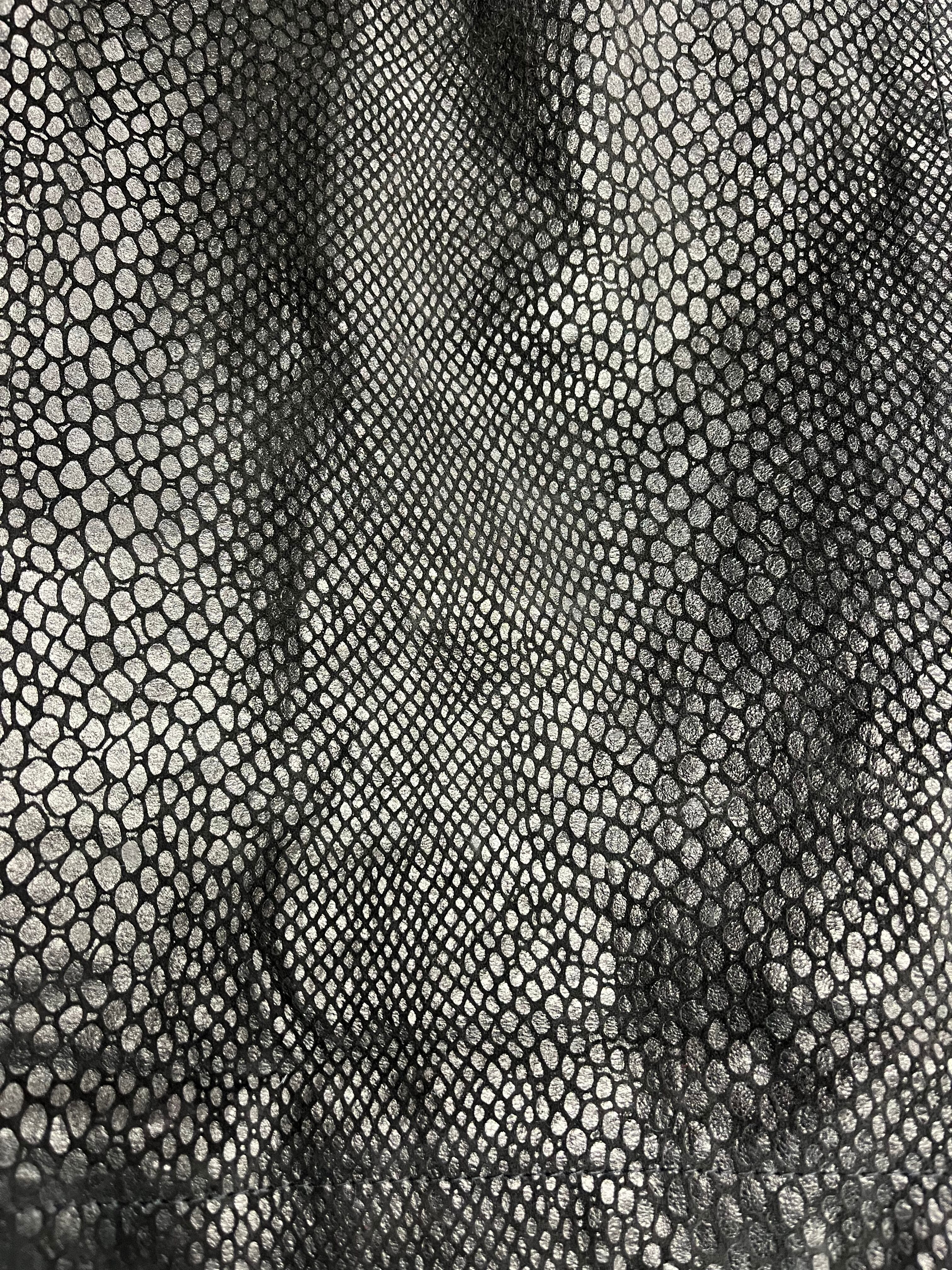 黒レザーボディに光沢ある蛇柄の様な模様です。