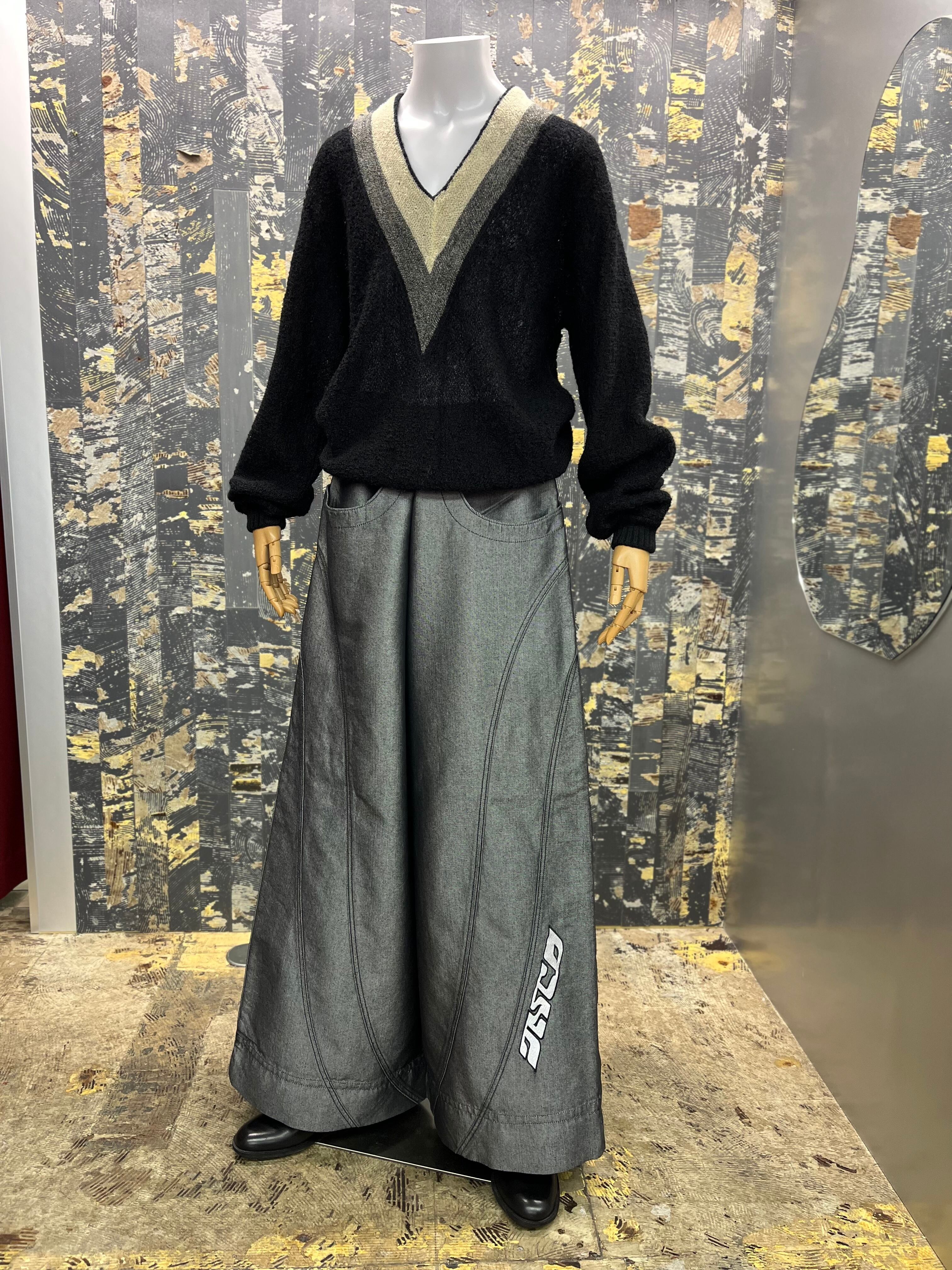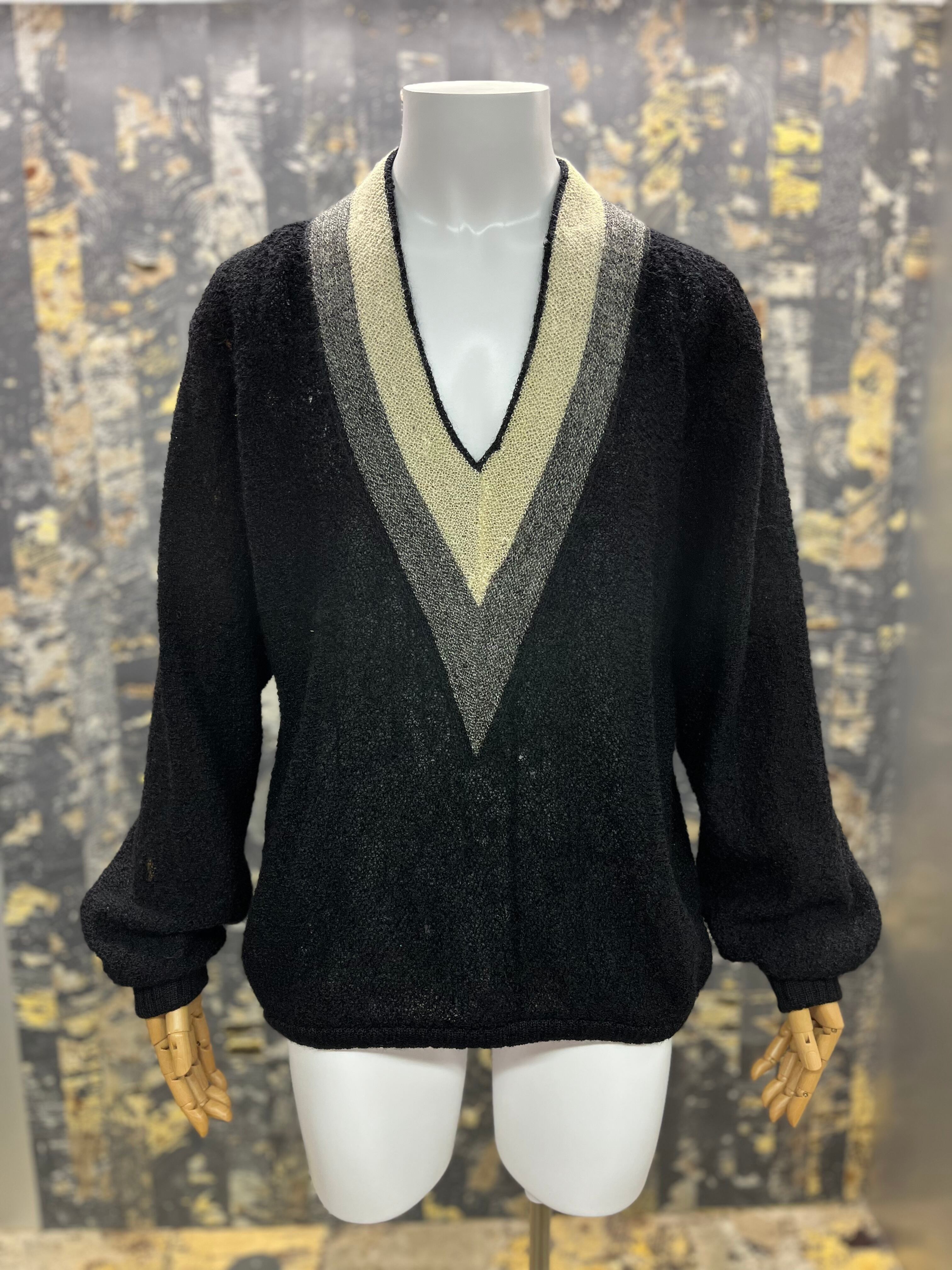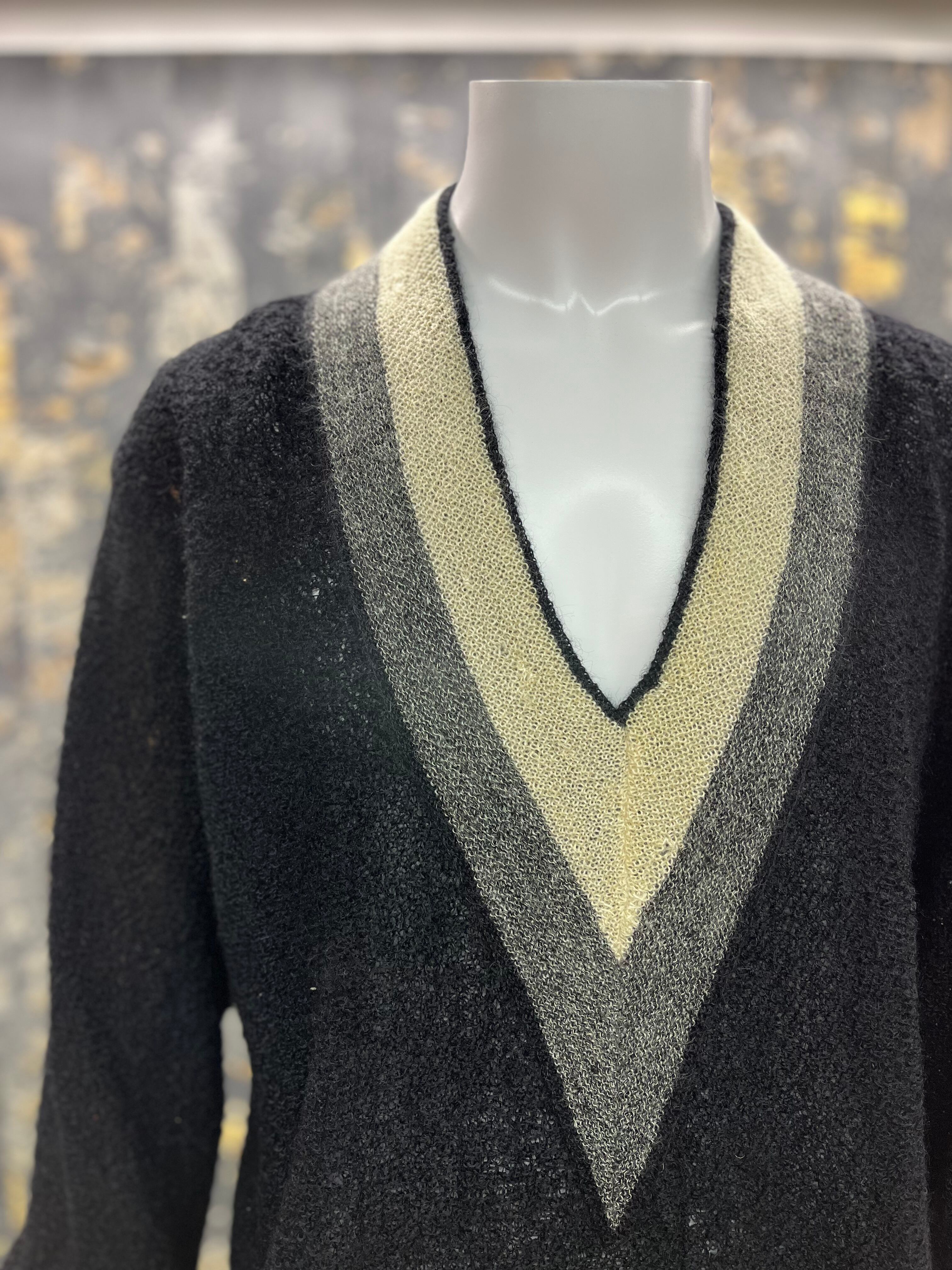 OLD 黒ボロモヘアVネックローゲージニット SIZE XL BY LORD JEFF