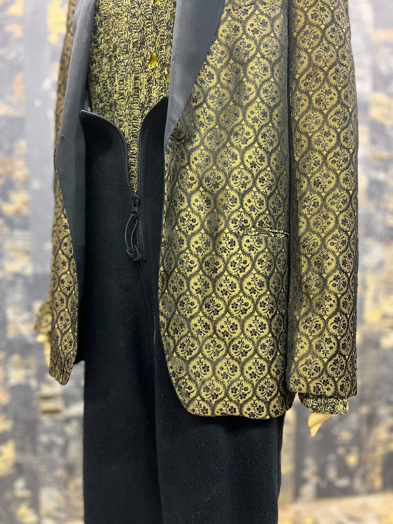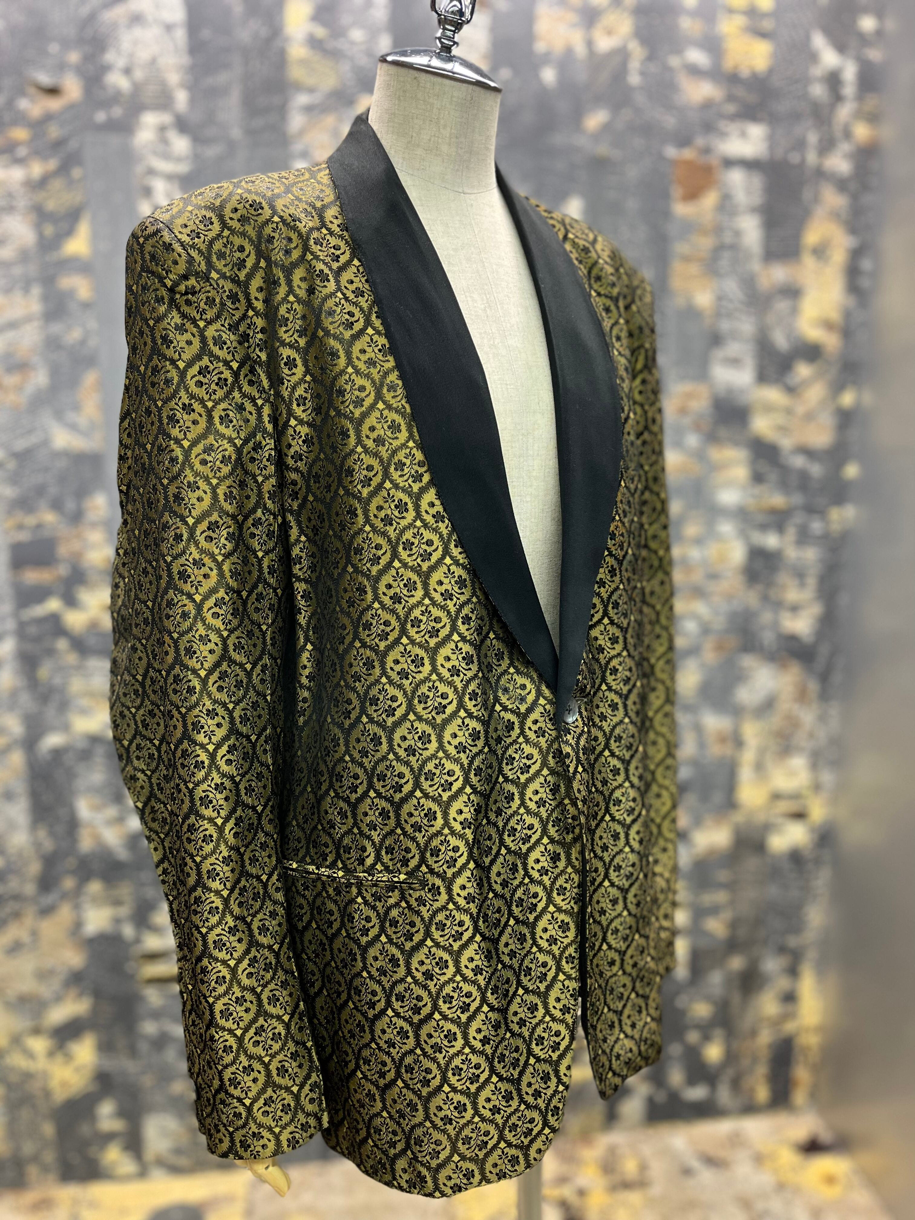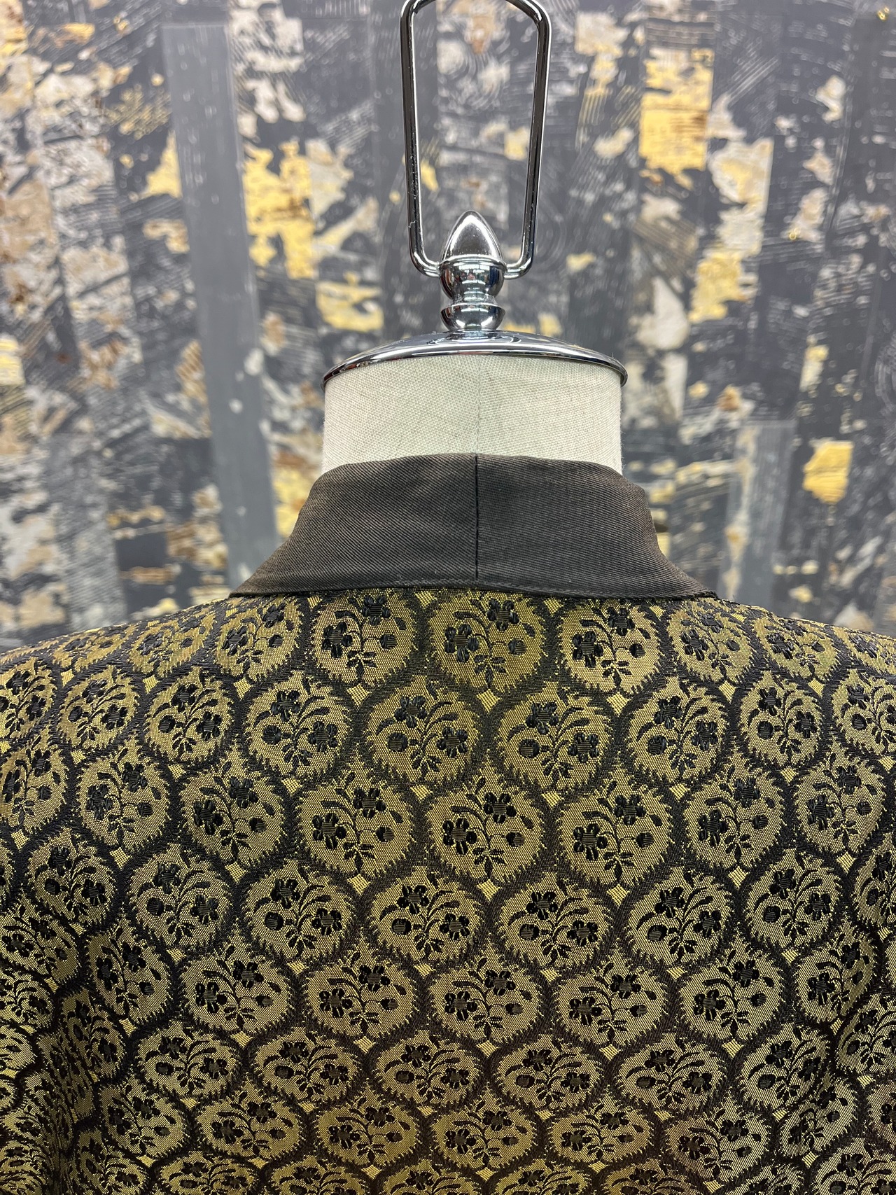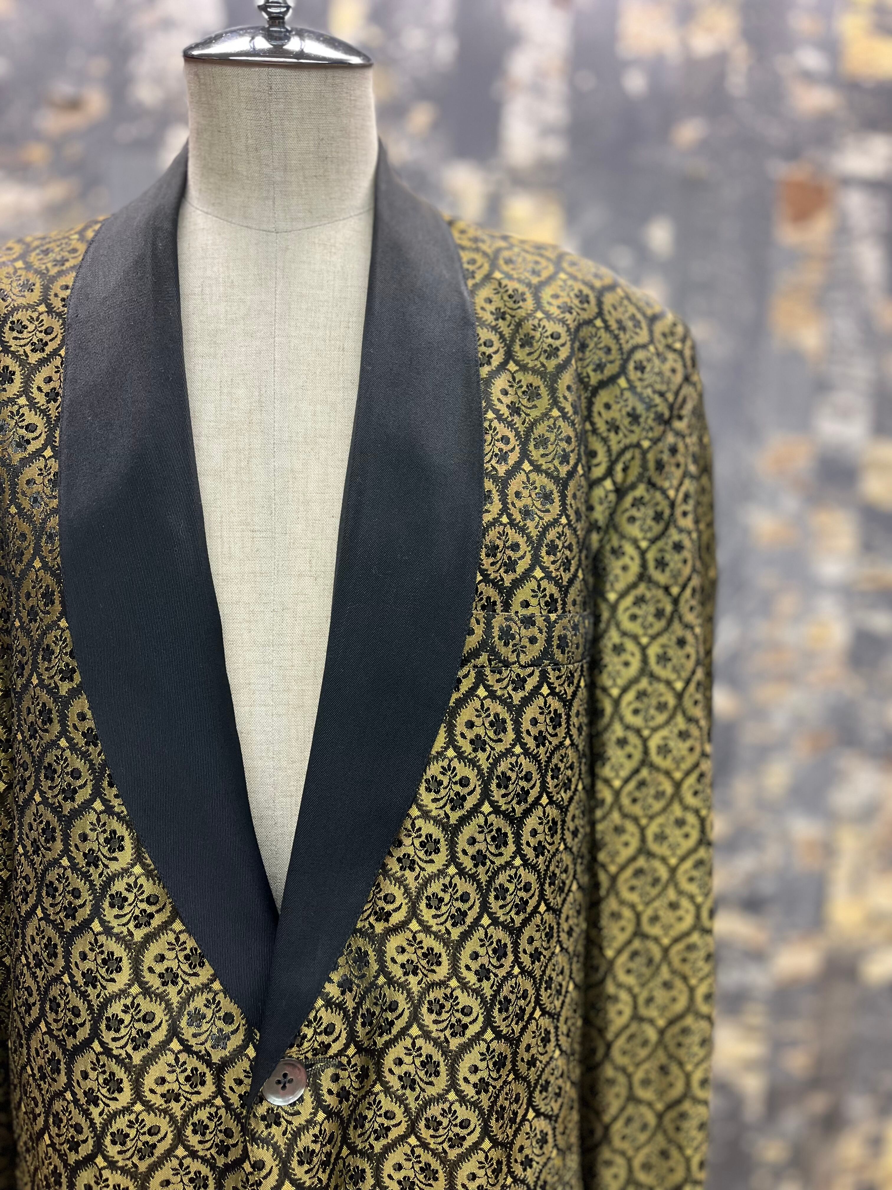 ビンテージ丸出しな深いゴールドに黒花柄。