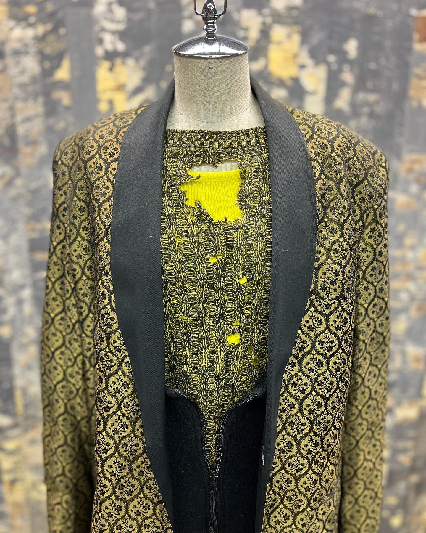 こちらはナイロンとゆうか、サテンとゆうかのいわゆるタキシード素材には良い違和感あるやつですよね。シャリ感あるテーラードなんてむっちゃかっこいいです。