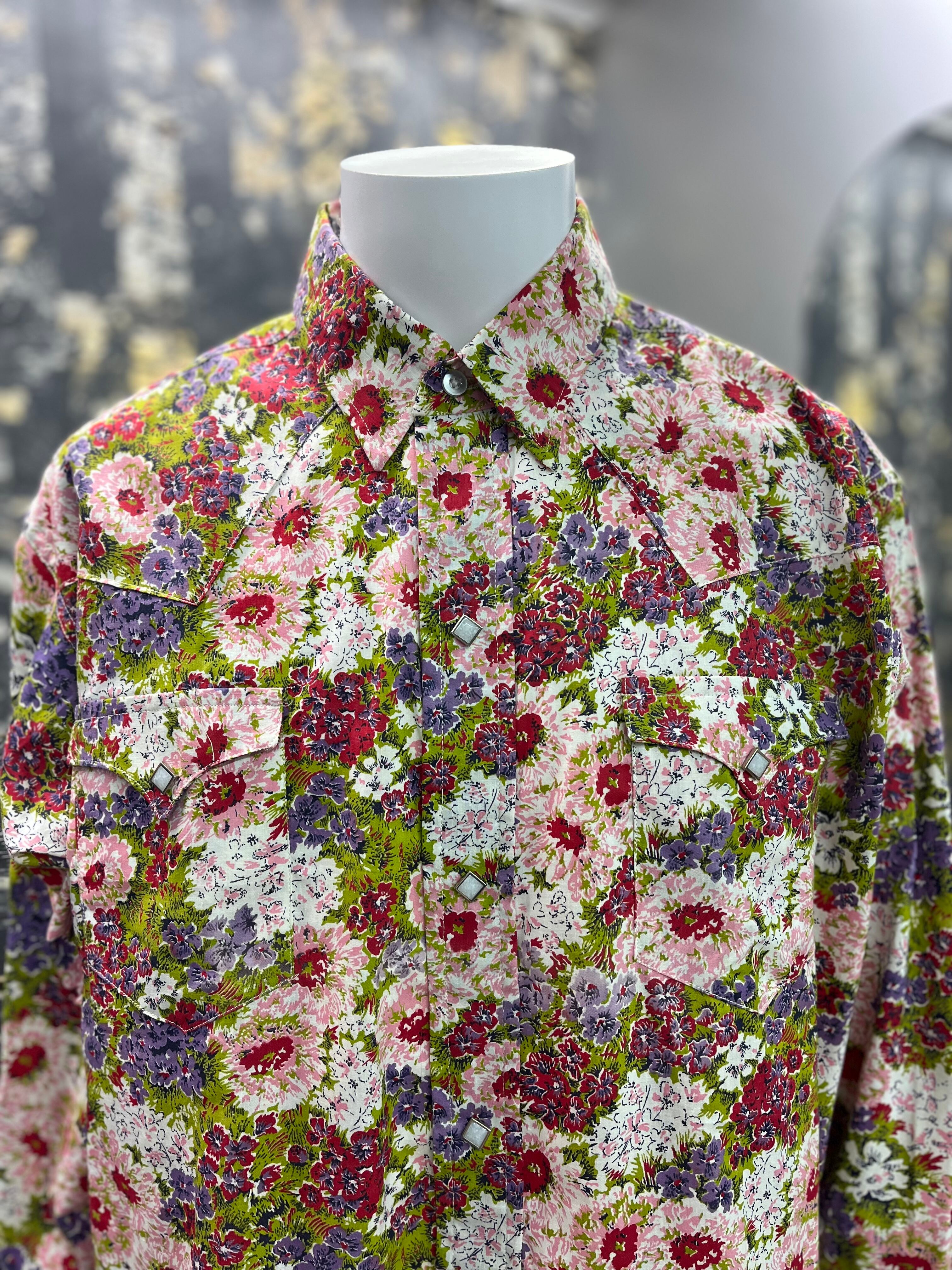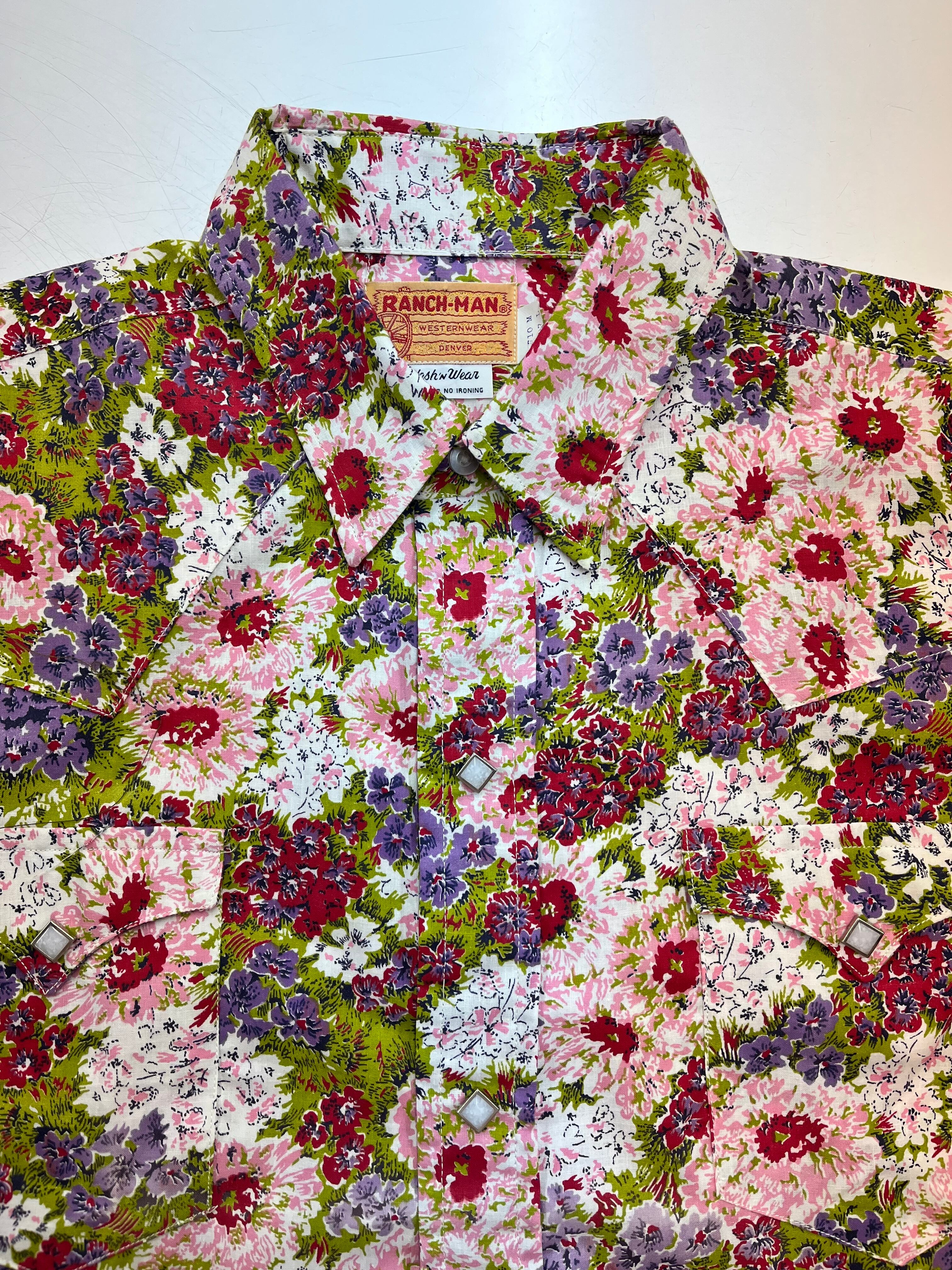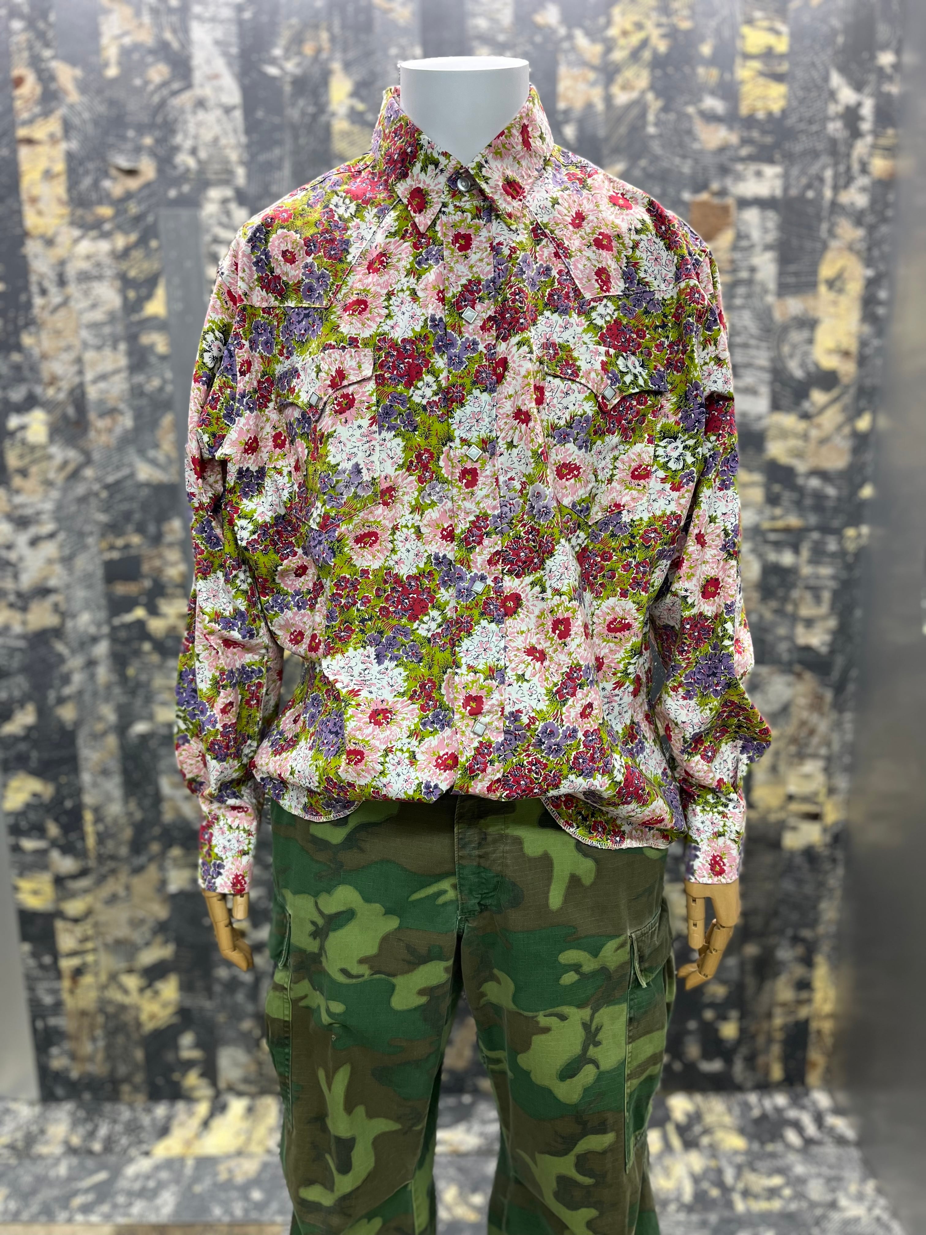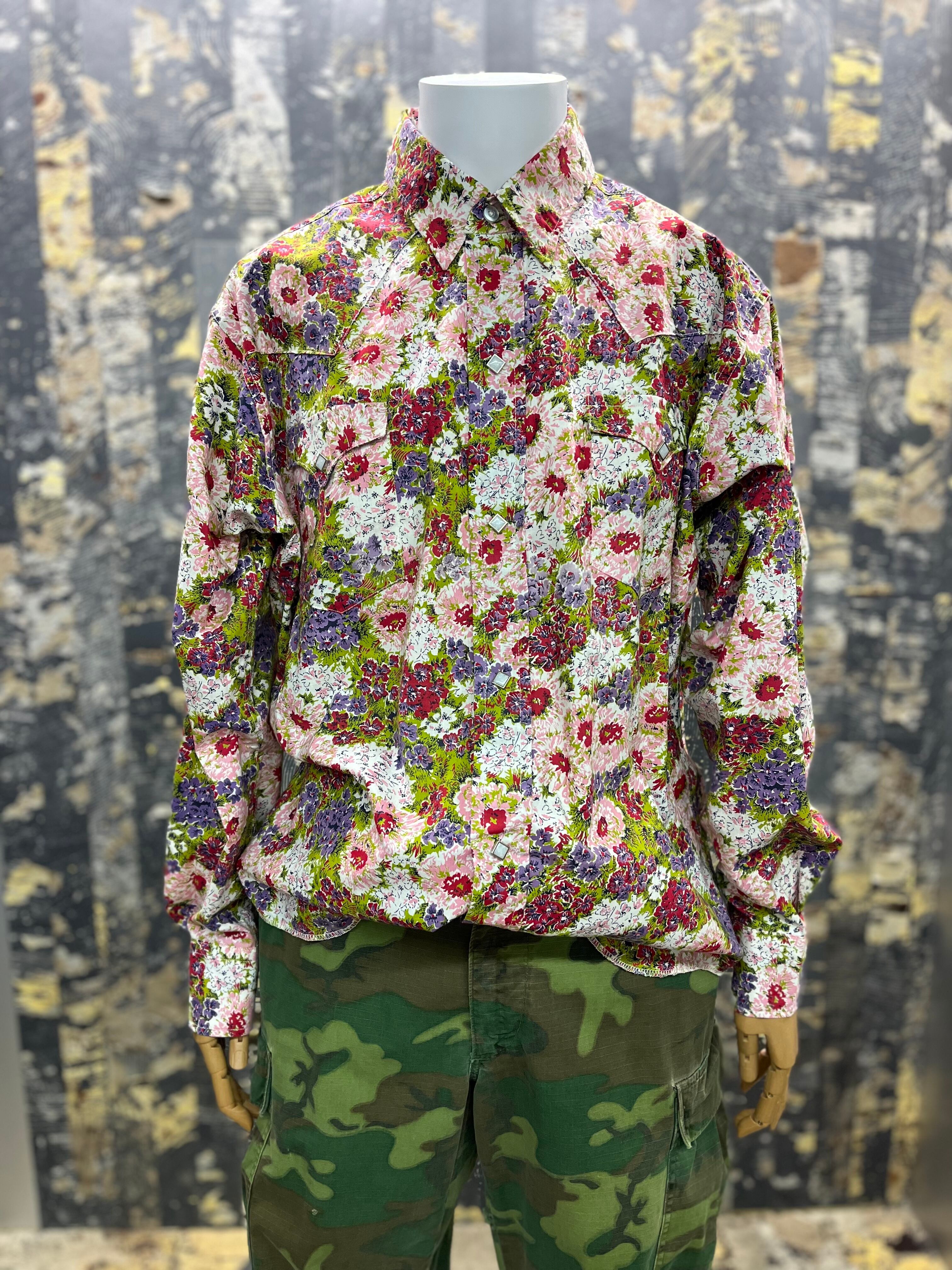 OLD 100%COTTON 花柄ウエスタンシャツ SIZE 17 L