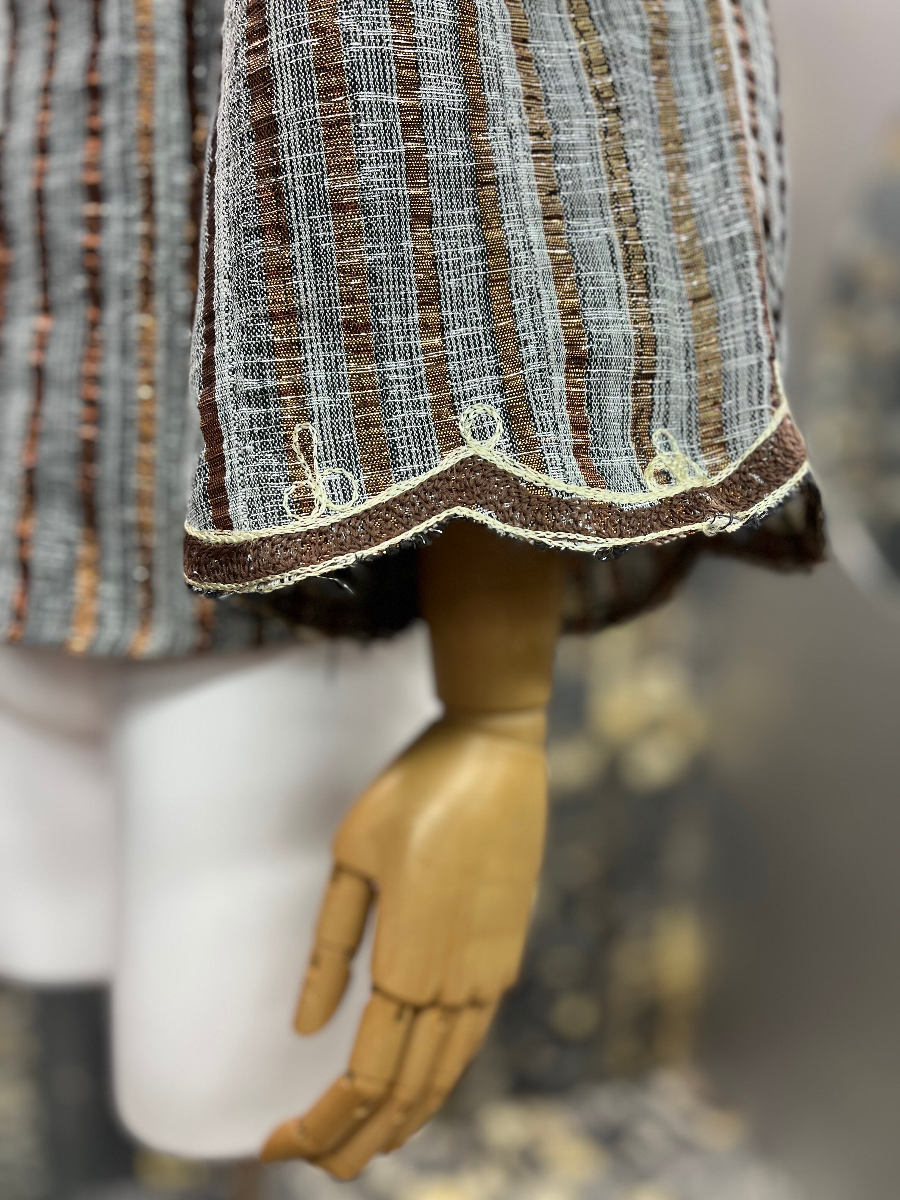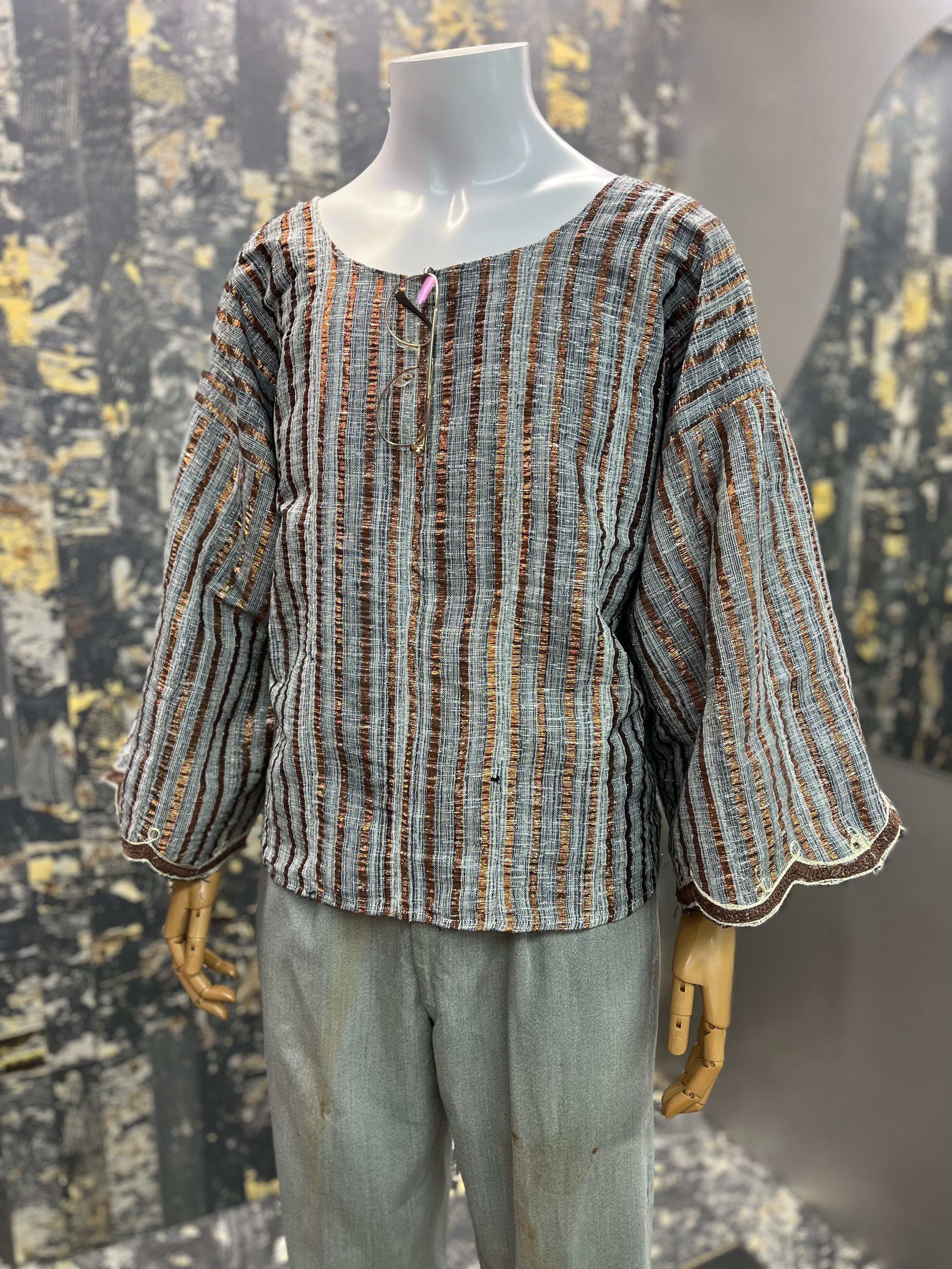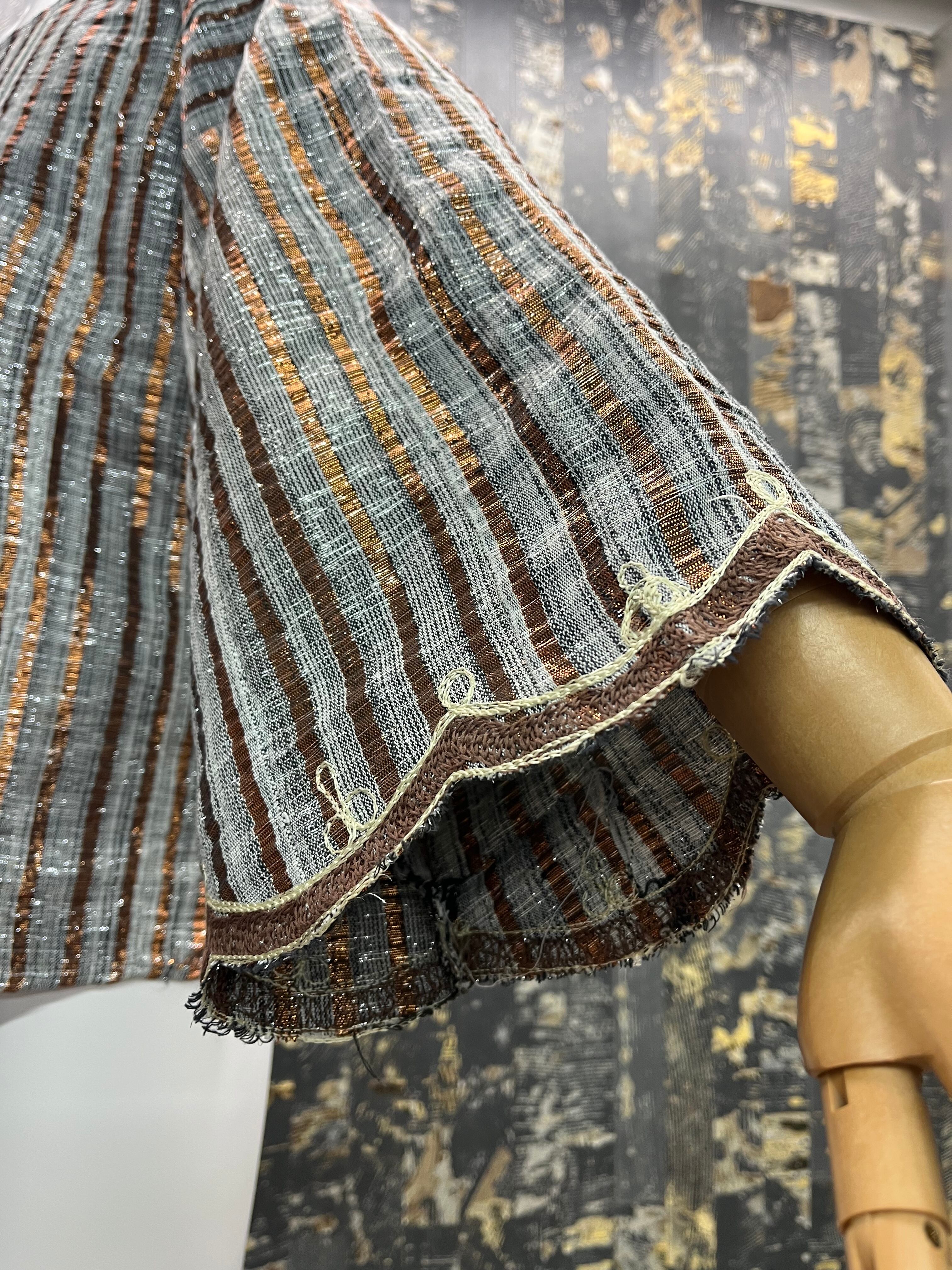 民族衣装チュニックぽい形にラメブロンズ。