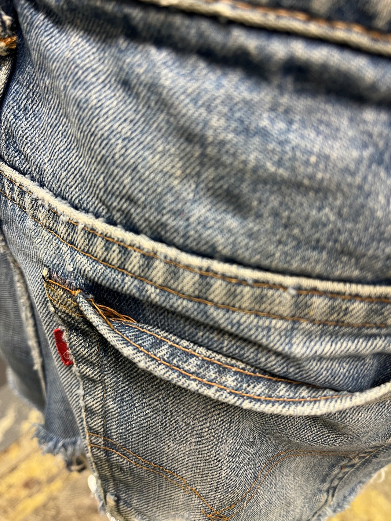 リーバイスのカットオフパンツ。を、股下をステッチ外しているいわゆるスカートの状態です。