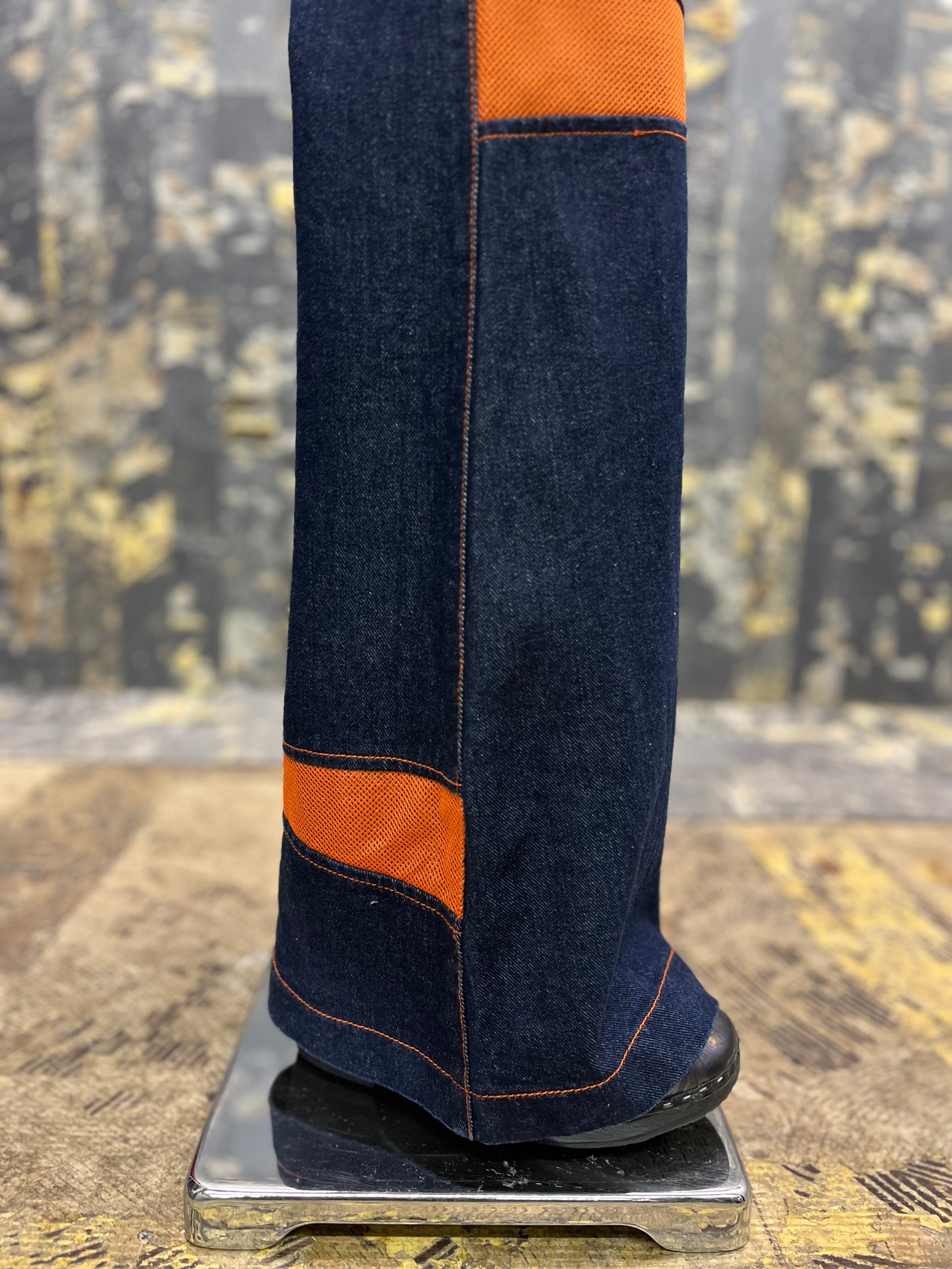 00s デニムRAVEパンツ メッシュランダム切替 S