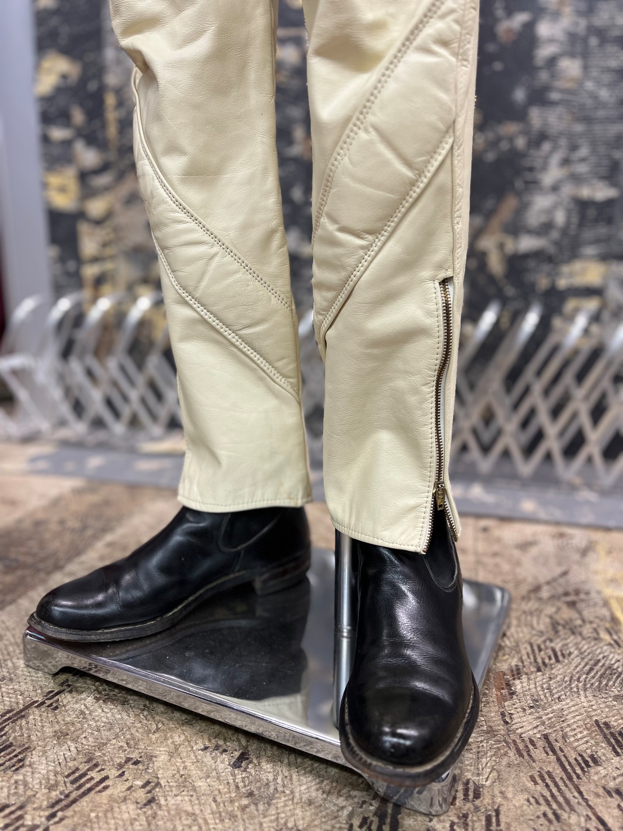 この手のレザーパンツでは良い意味でシンプルなんが嬉しい。派手なのが多いイメージなんで。