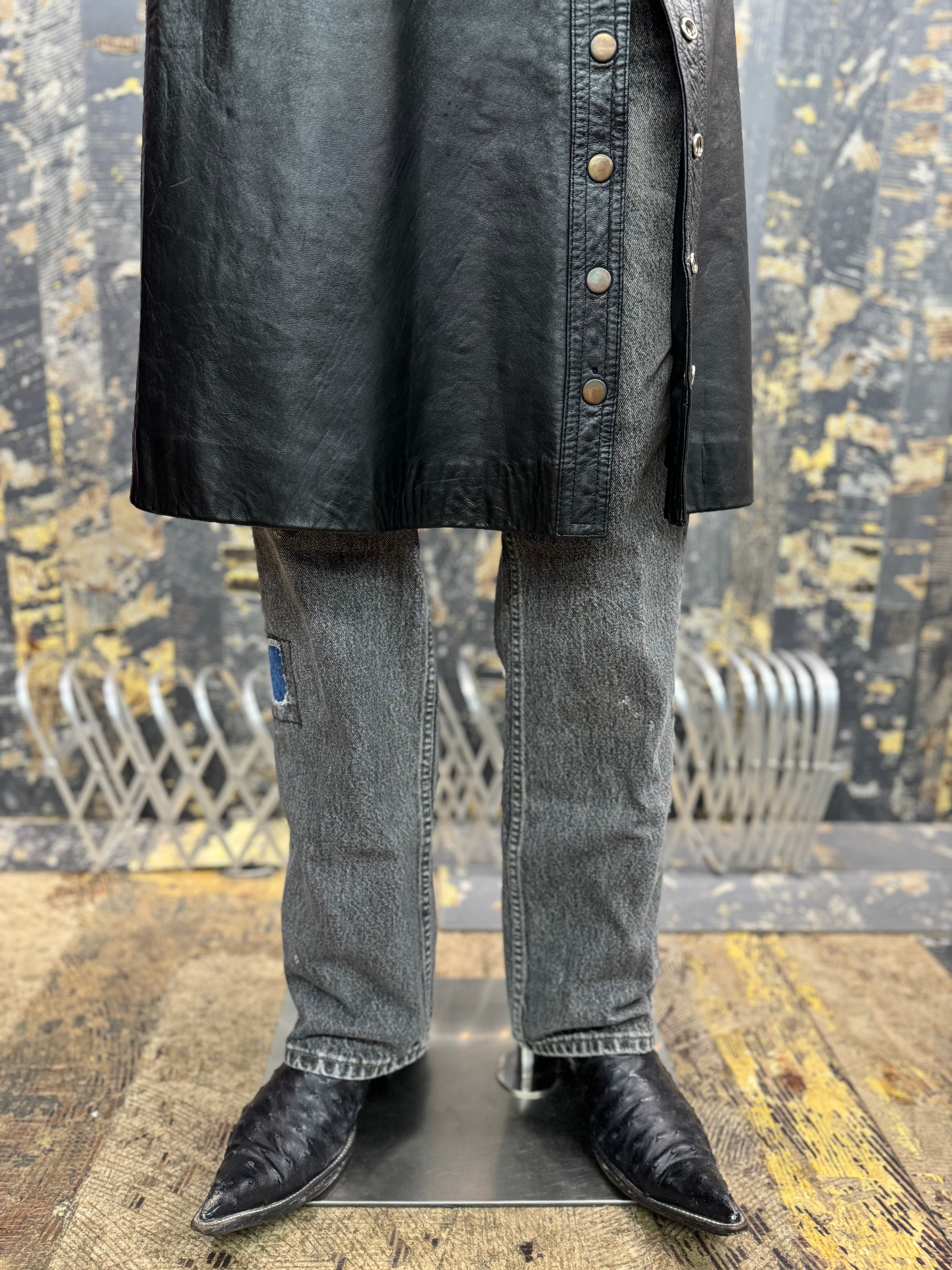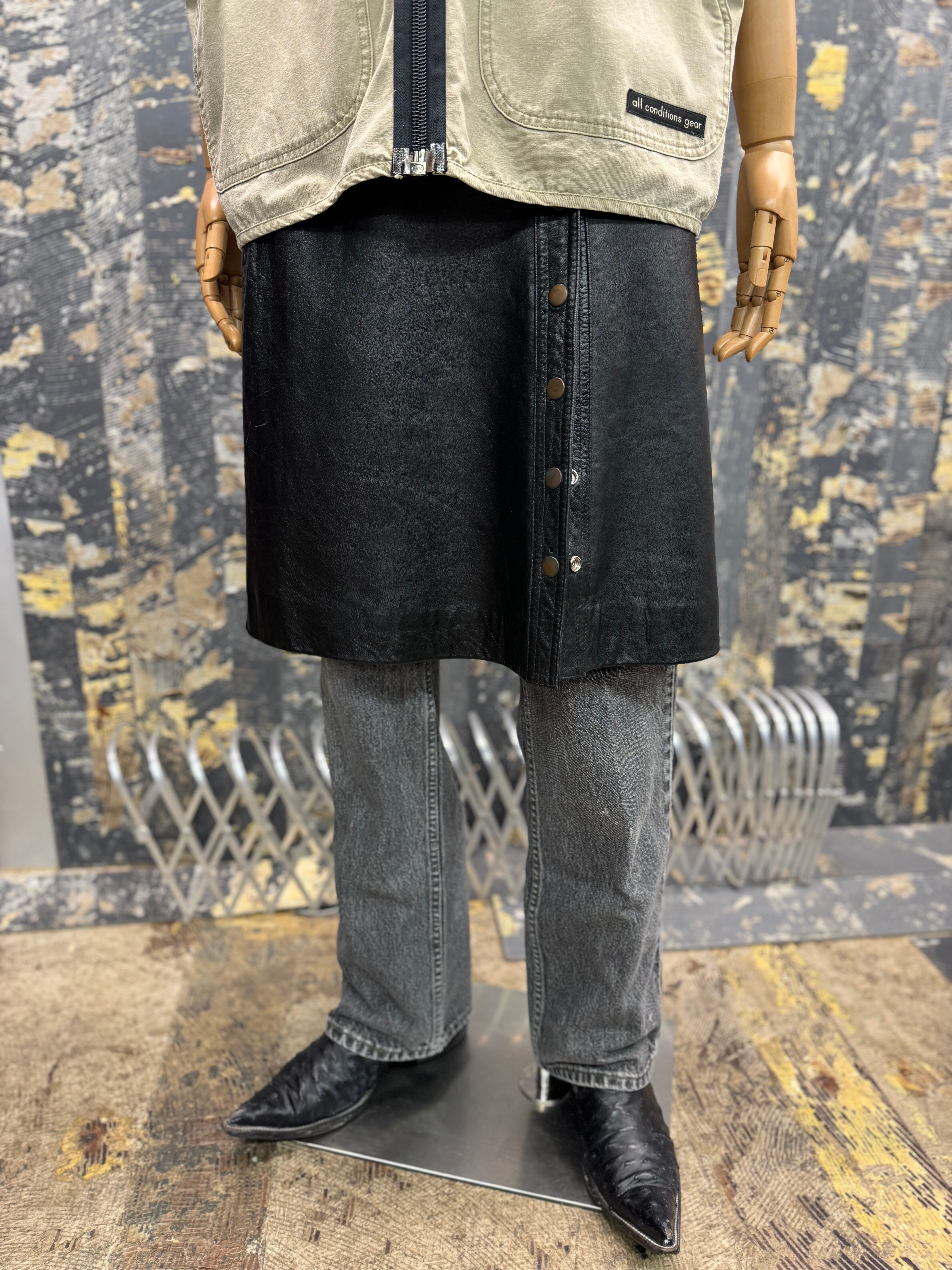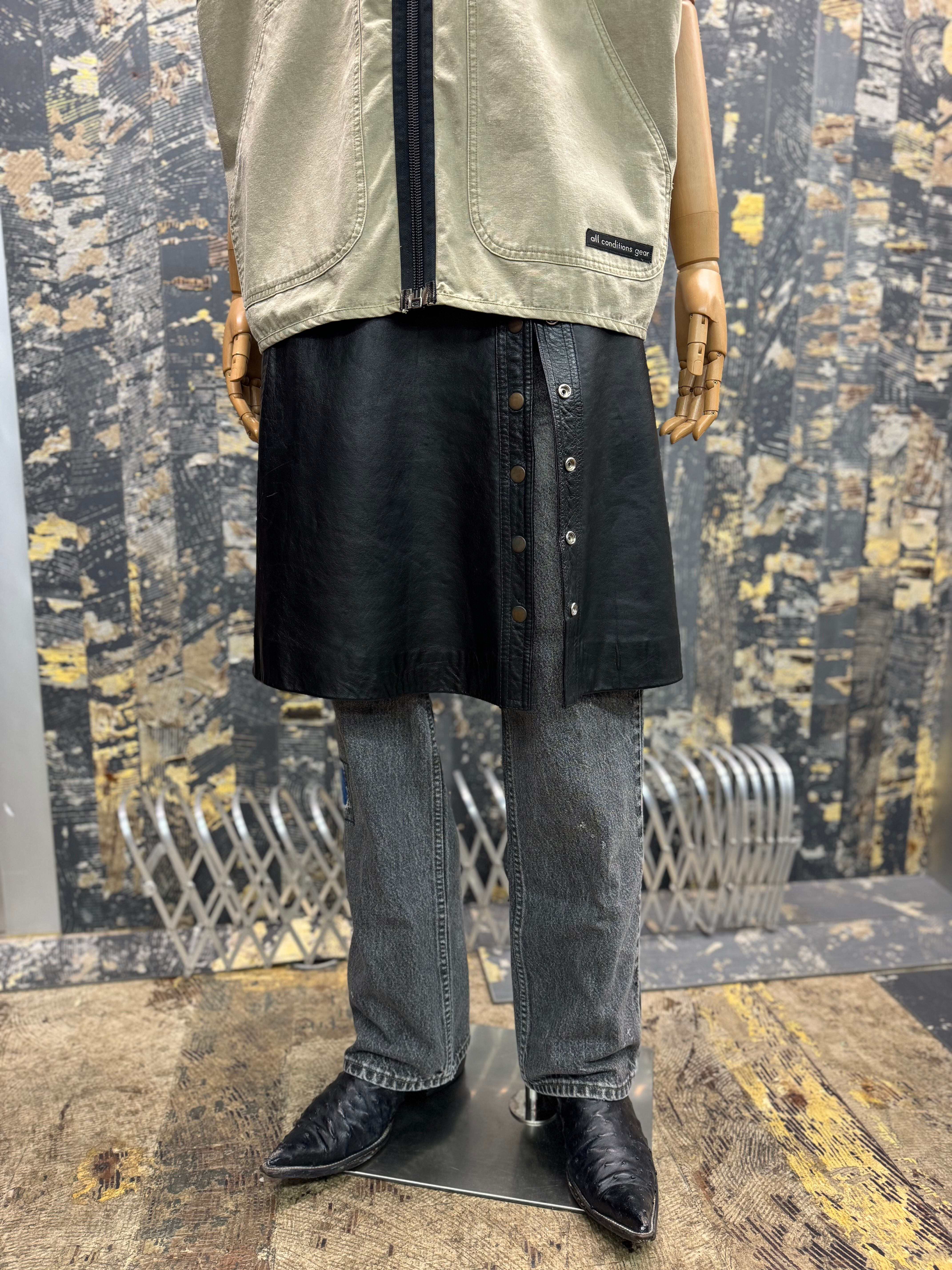 メンズには嬉しい仕様の無骨なレザースカートですね。タグやポケット等は一切ありません。